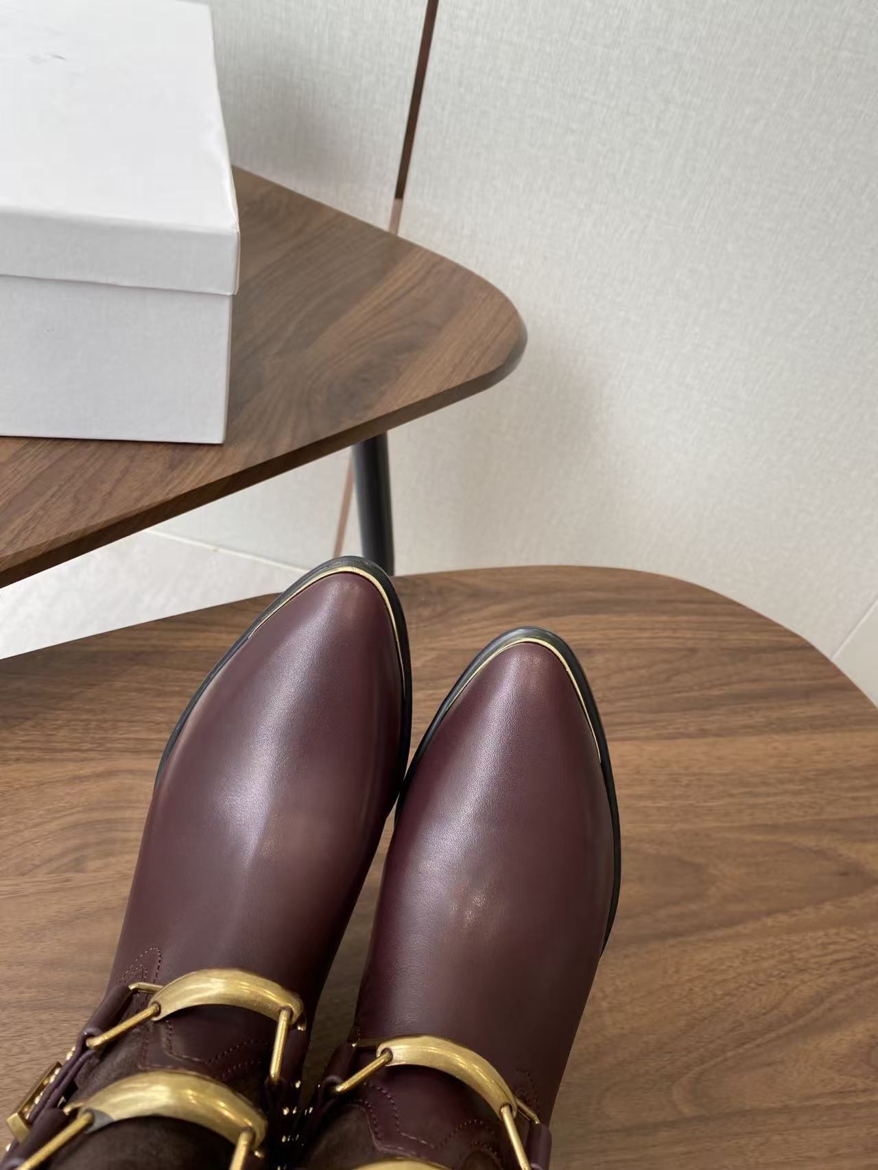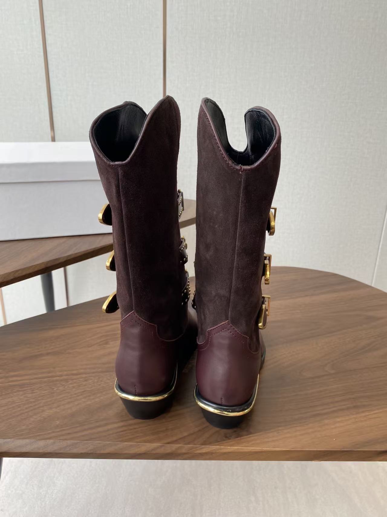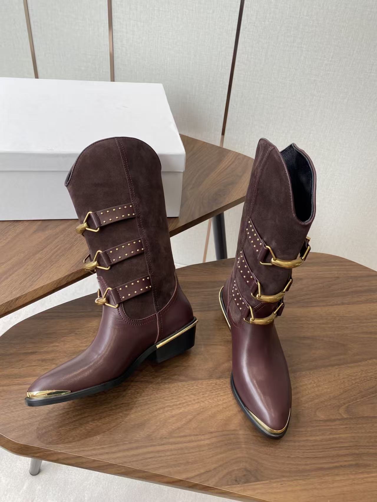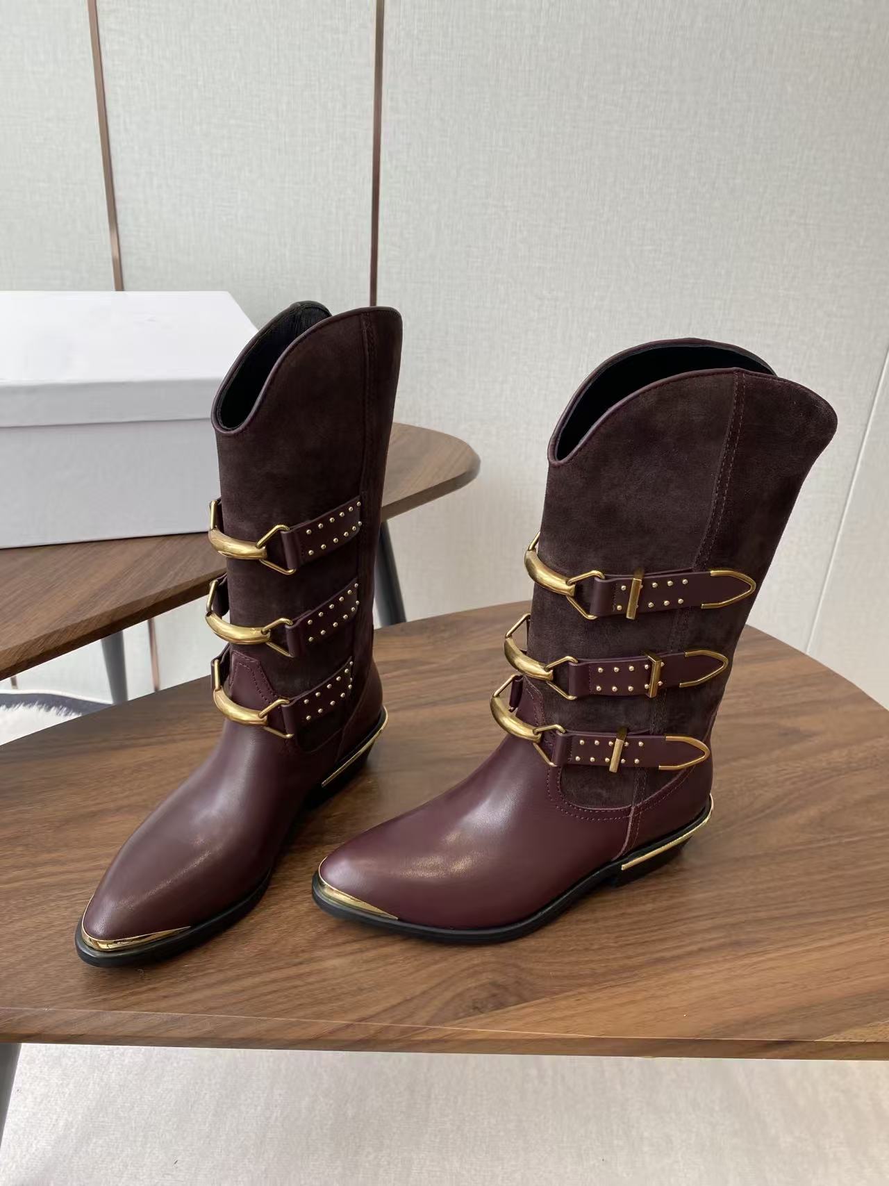 Isabel Marant Meixa Boots Santiag 30mm Burgundy Leather and Metal