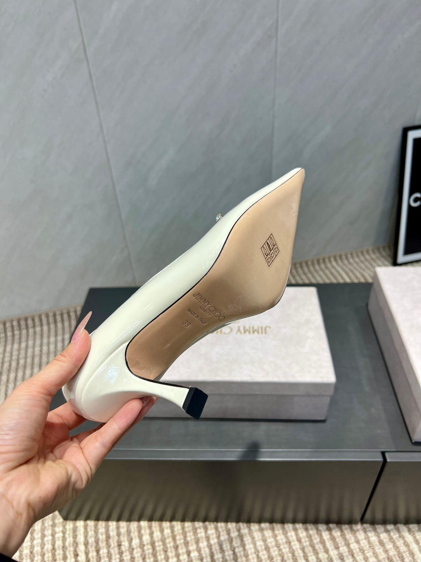 Jimmy Choo Belinda 85mm Heels Cream Patent Leather Crystal Studded Heels 540680