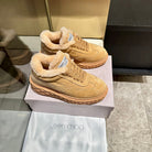 Jimmy Choo Diamond Maxi Sneakers Light Brown Suede Shearling Lining 538895