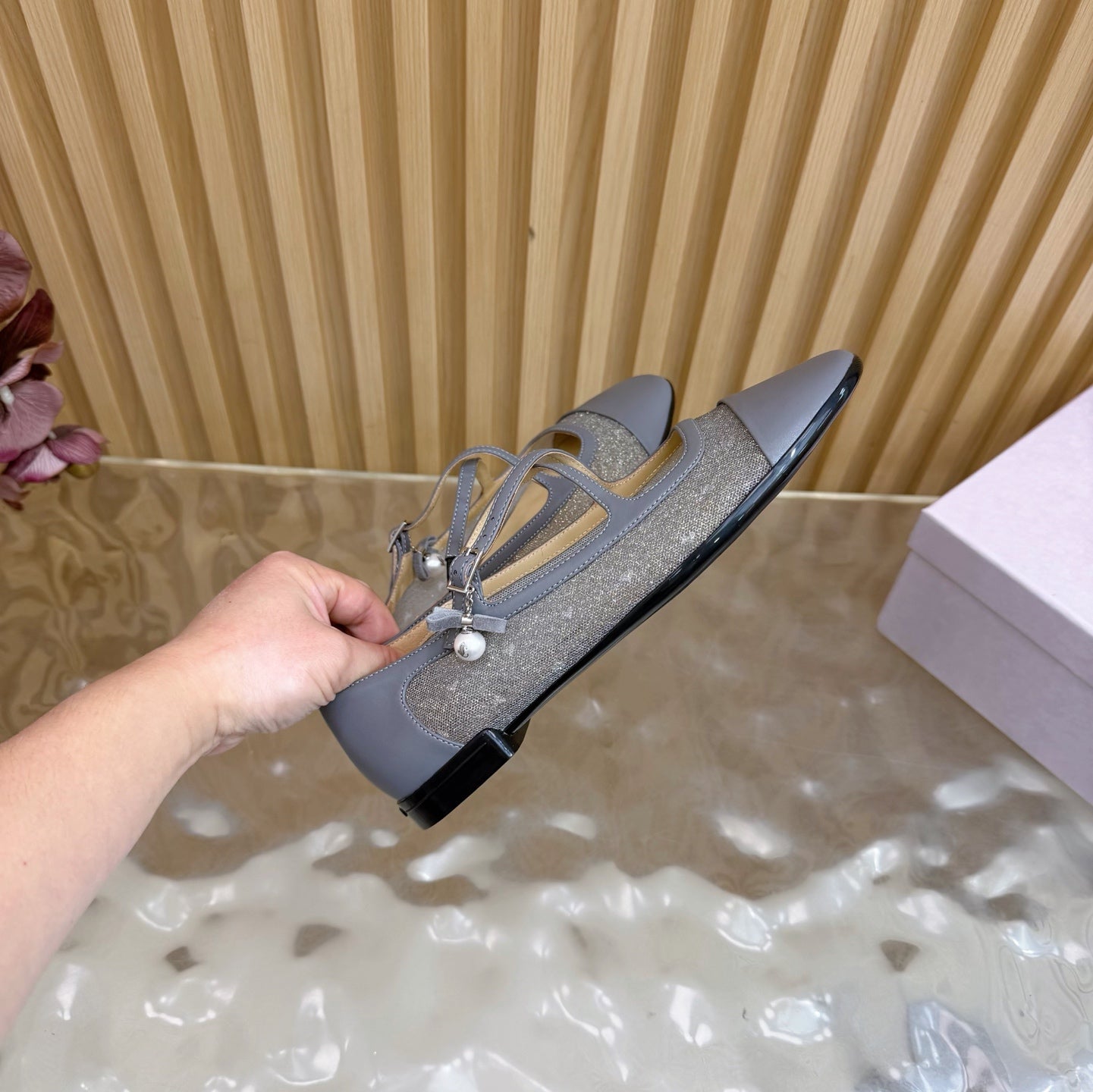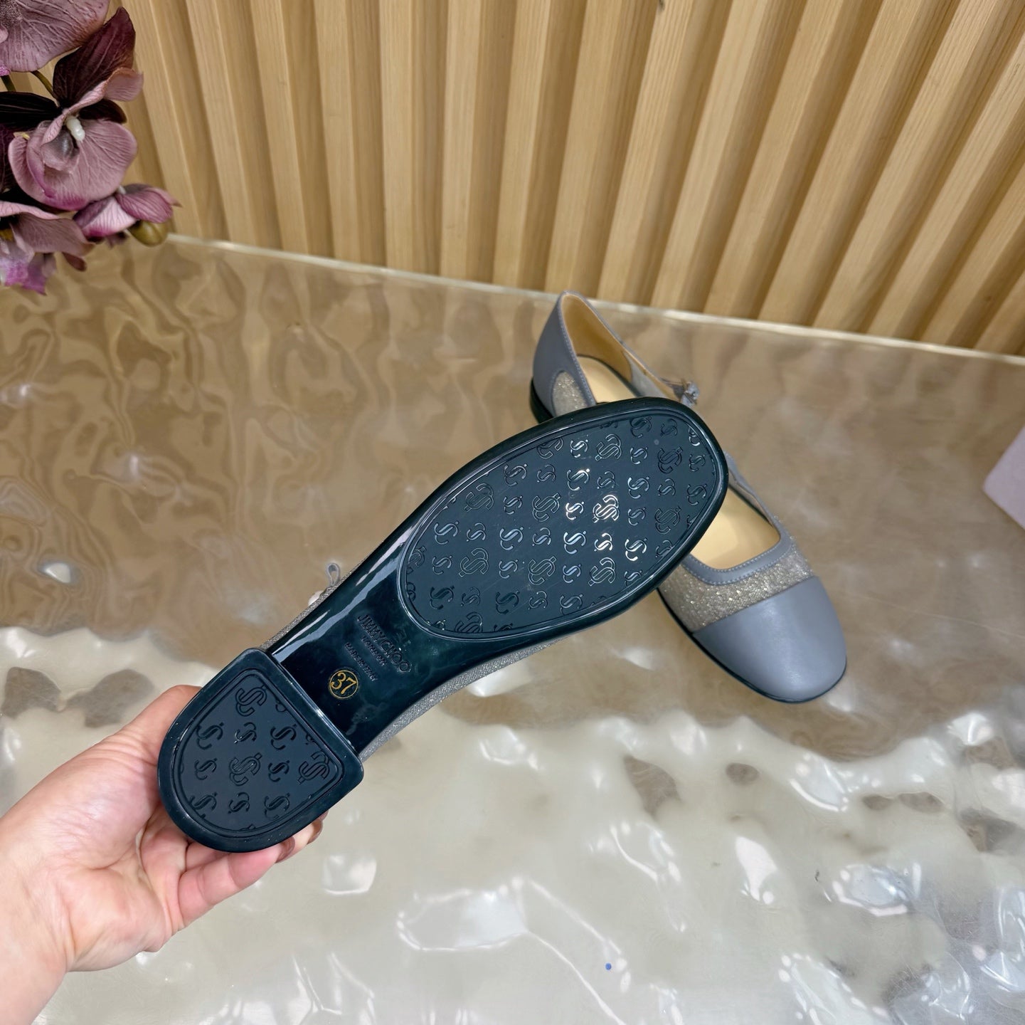 Jimmy Choo Mary Jane Flat Shoes Gray Mesh Leather 537765