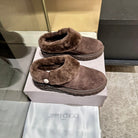 Jimmy Diamond Maxi Mules Coffee Suede Shearing 538897