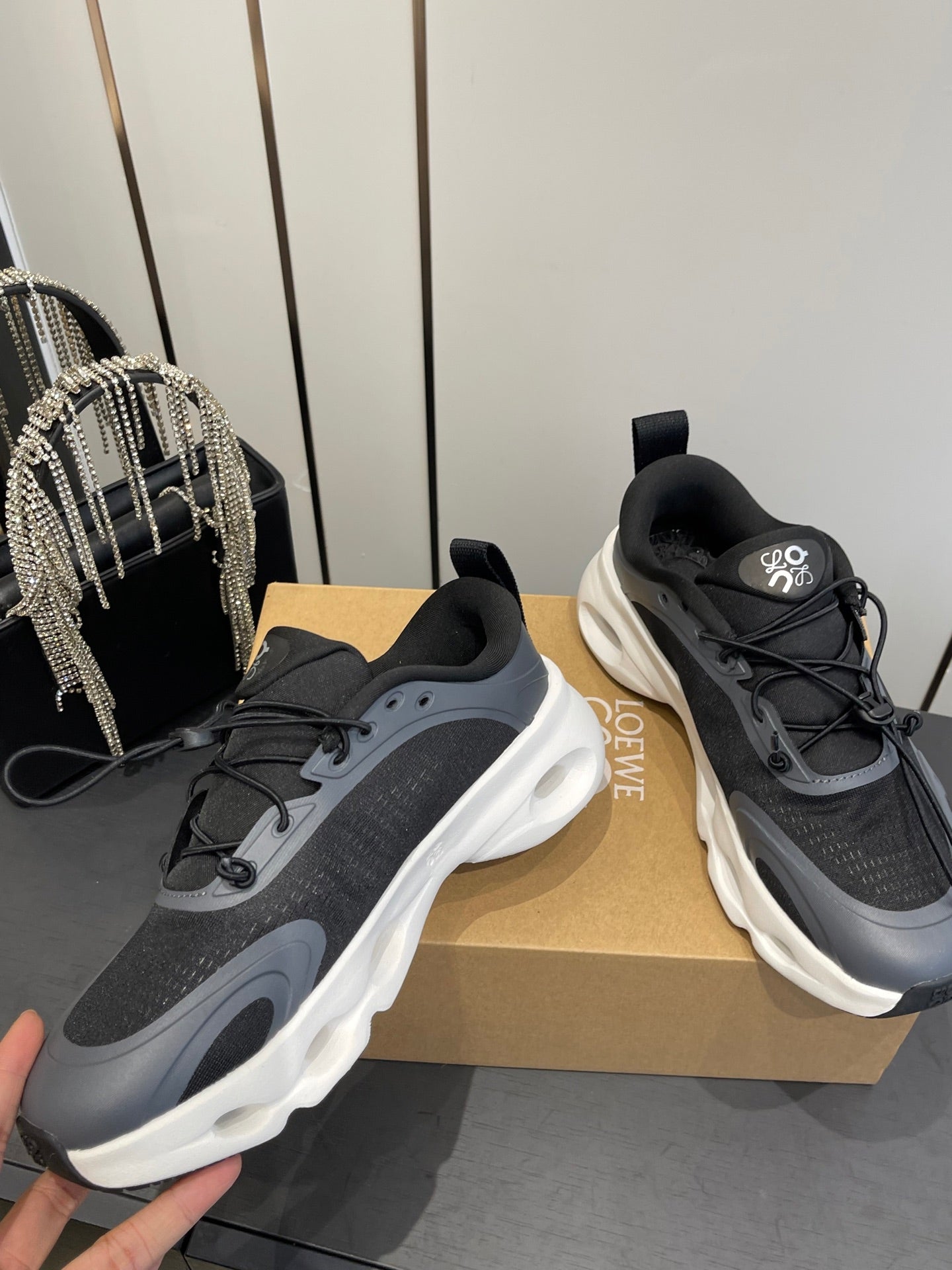 Loewe x On Cloudsolo Sneakers Black Grey and White Polyester and Mesh 533482