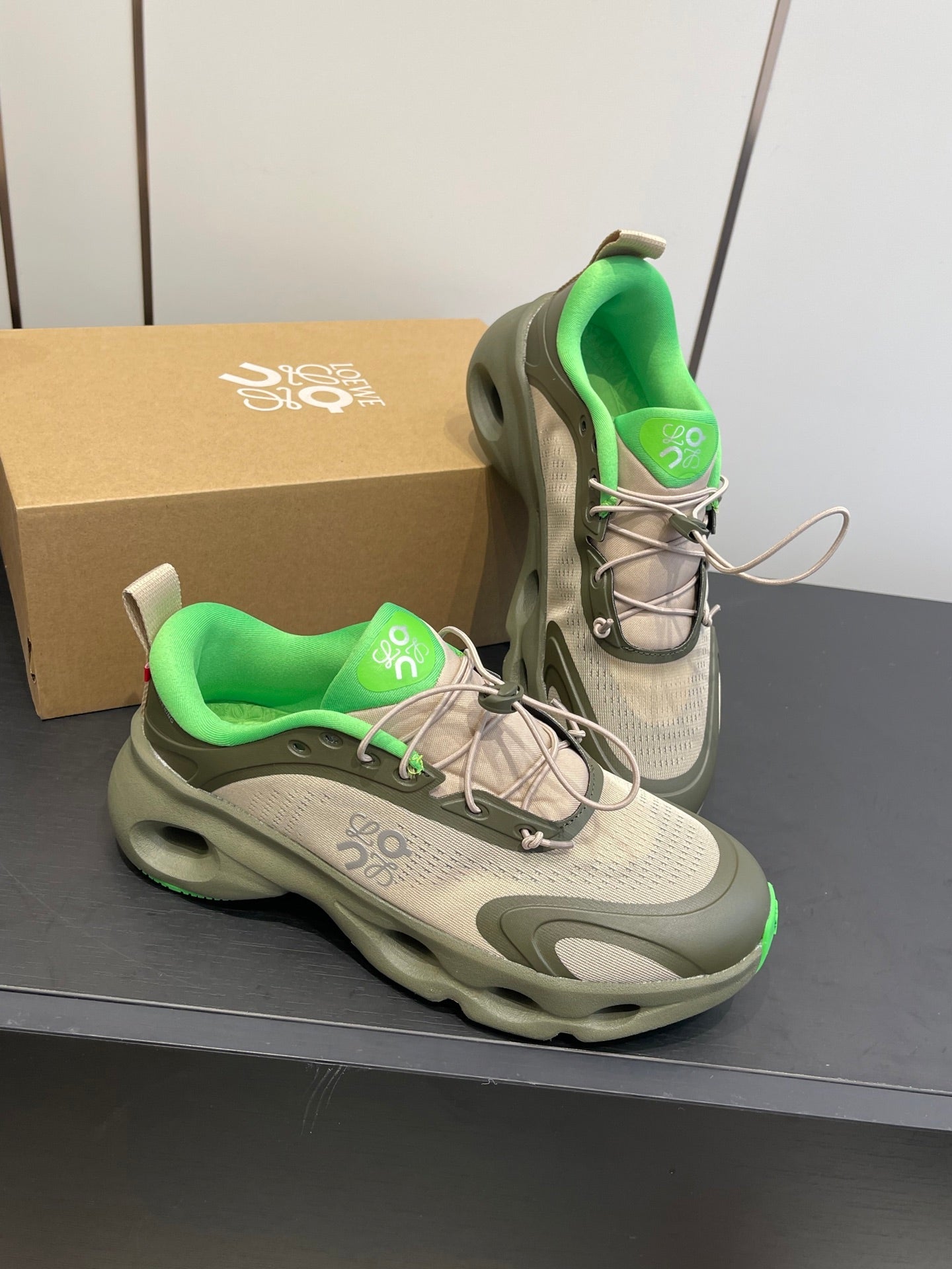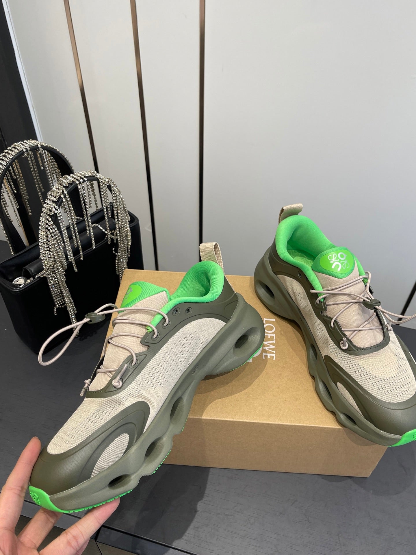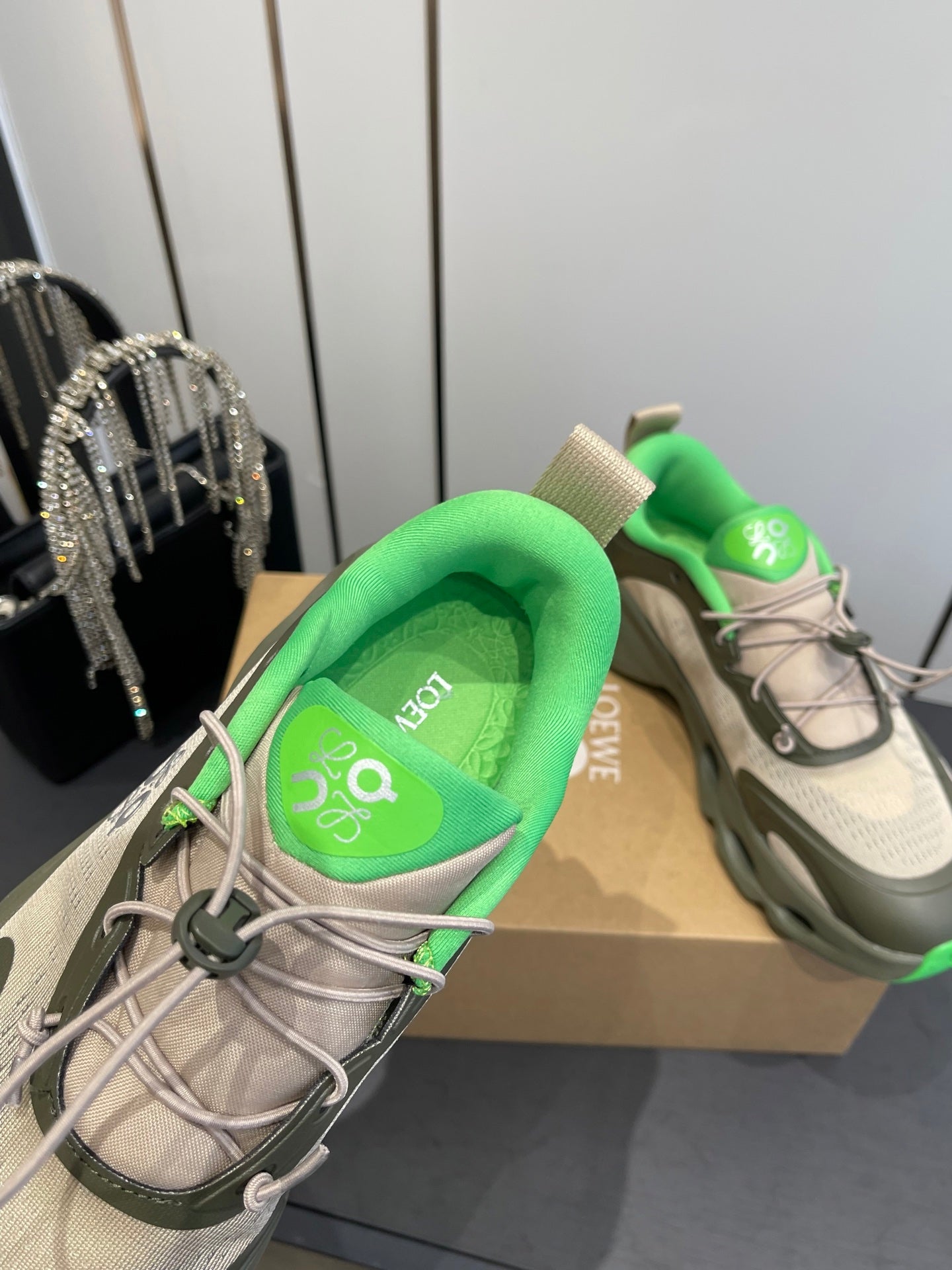 Loewe x On Cloudsolo Sneakers Khaki Green and Beige Polyester and Mesh 533484