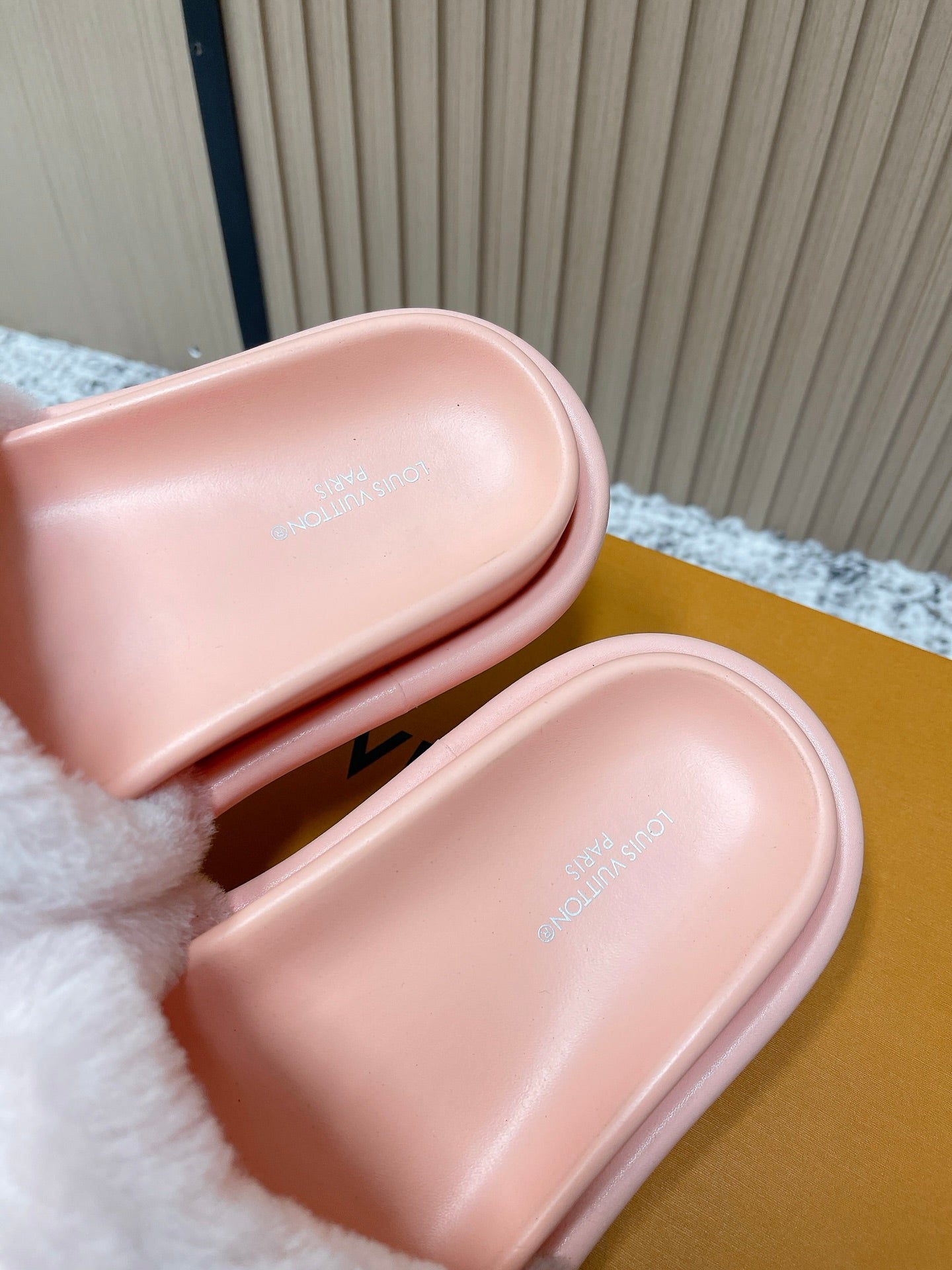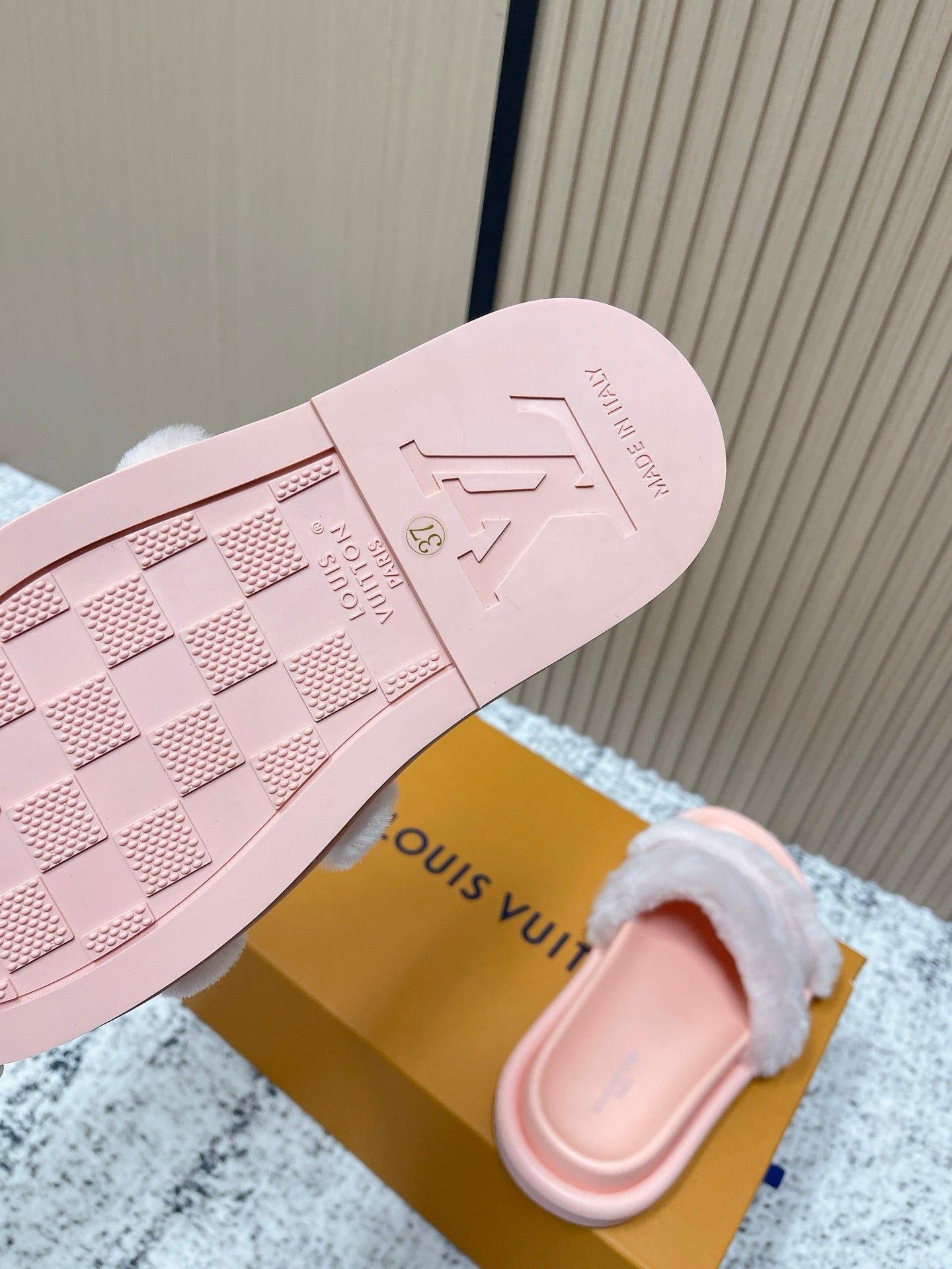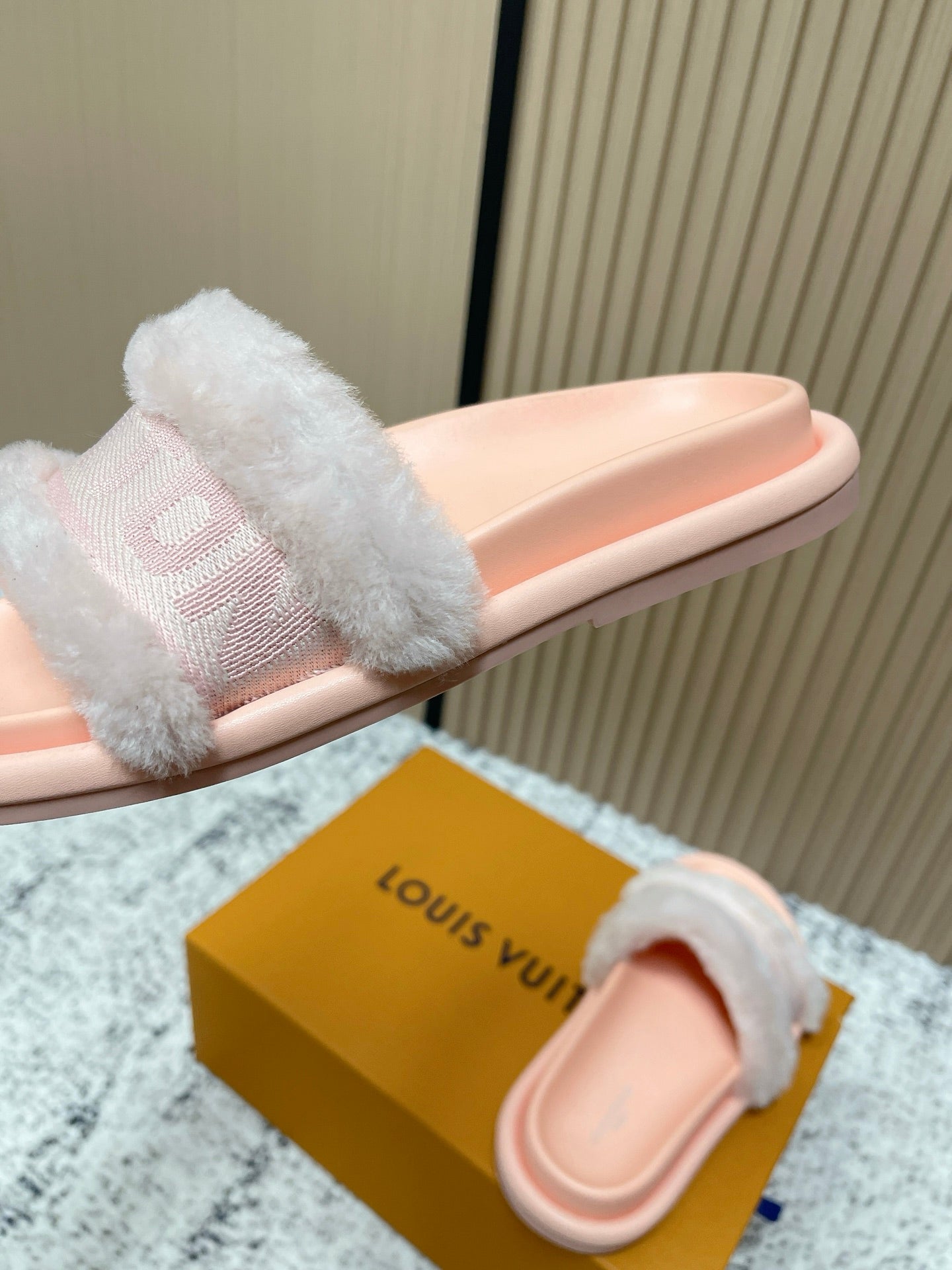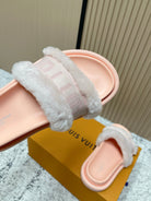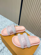 LV 25SS FW Platform Slippers Pink Canvas Wool 533772