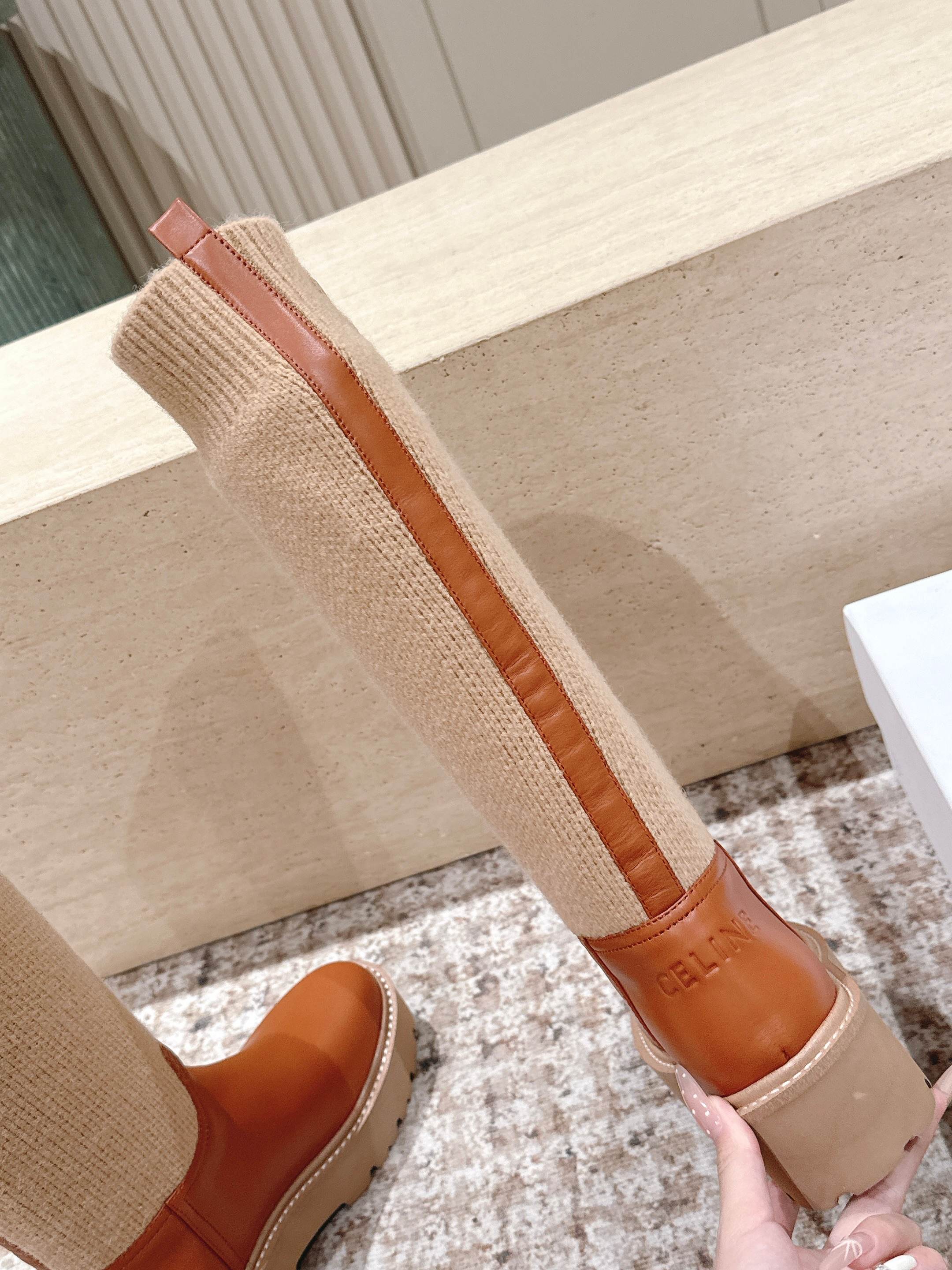 LV Celine Margaret Chelsea Boots Orange Beige Calfskin and Woolen Fabric 532985