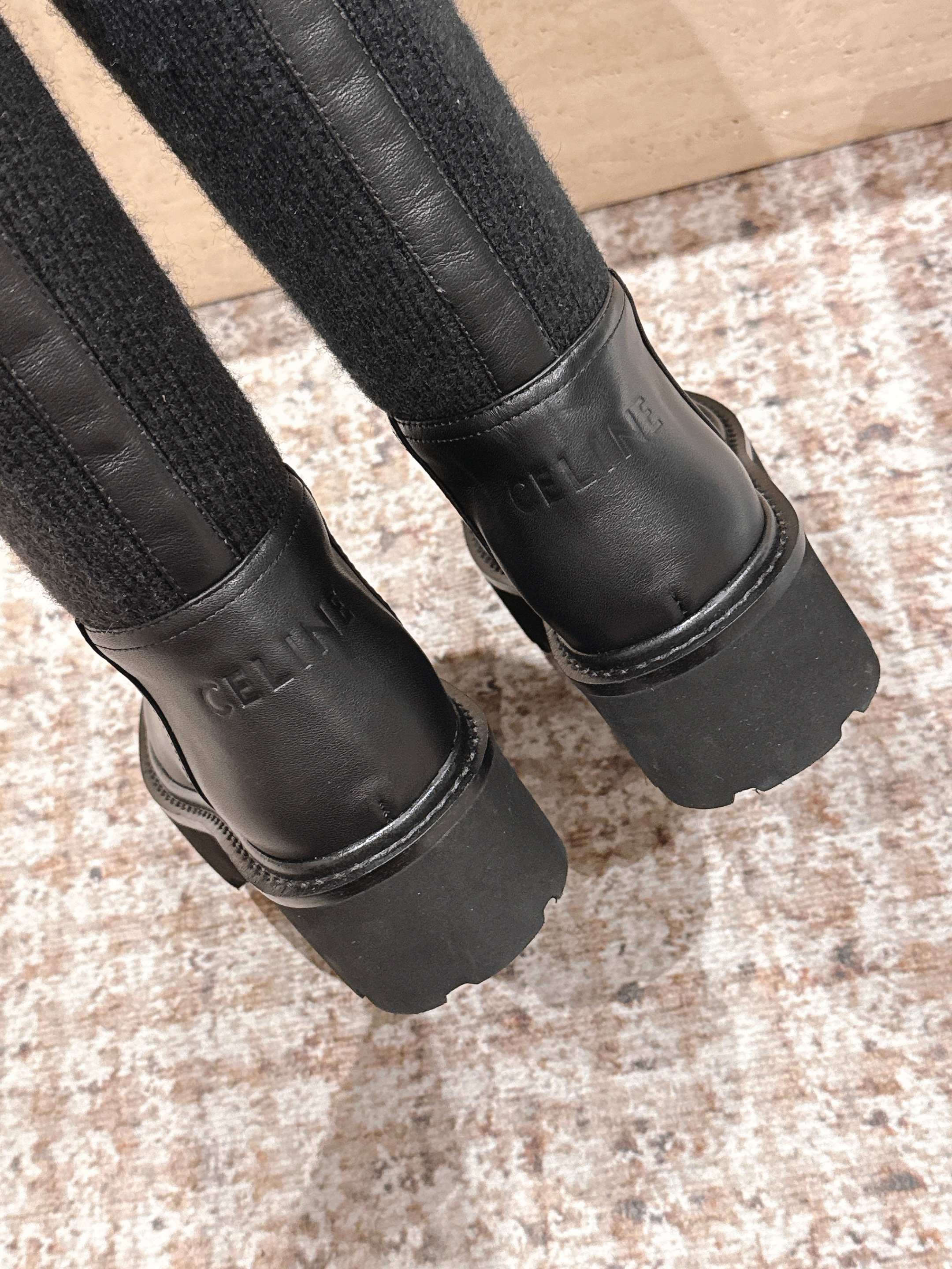 LV Celine Margaret Chelsea Boots Dark Brown Calfskin and Woolen Fabric 532986