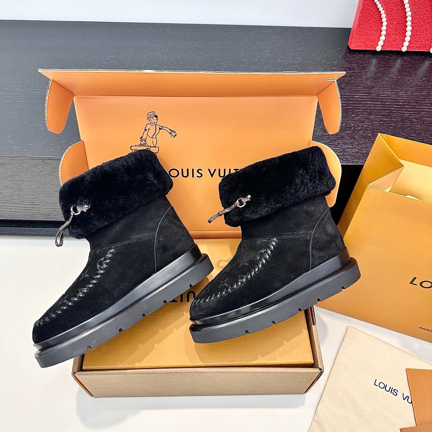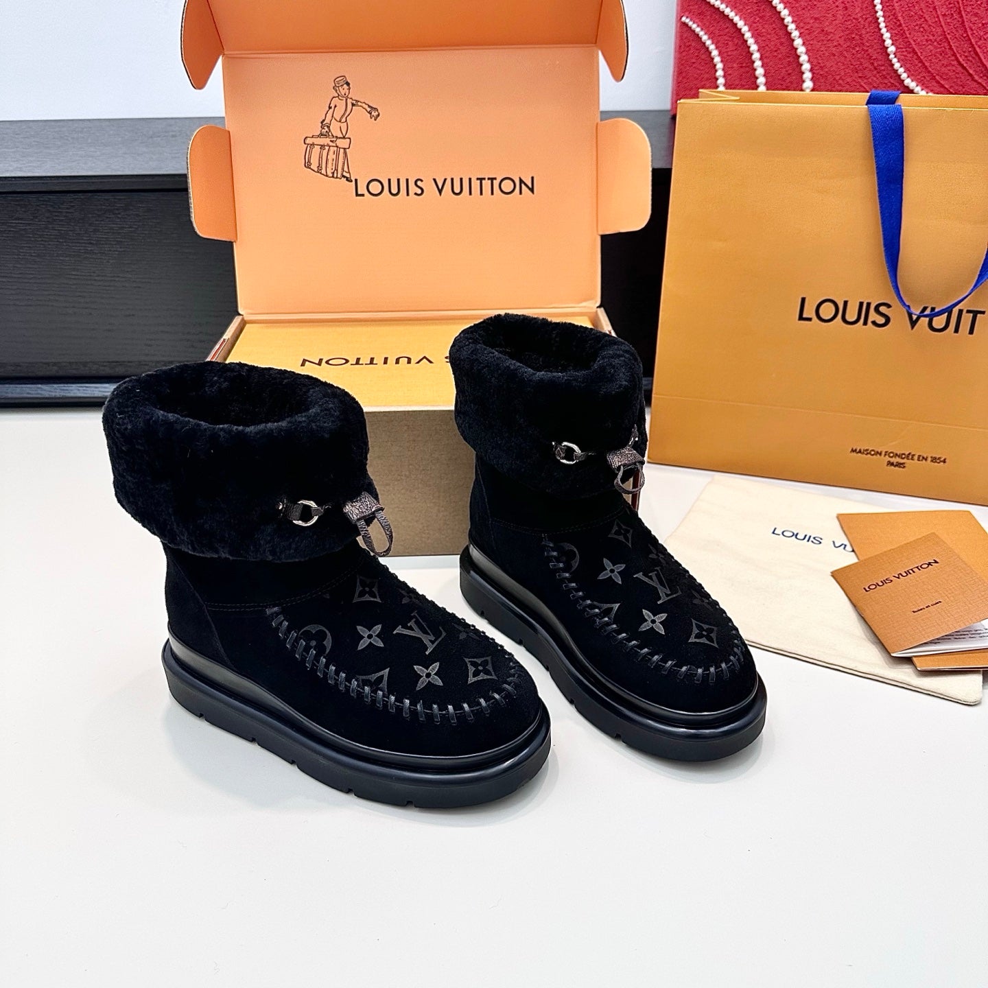 LV Cortina Low Boots Black Suede Wool 542234