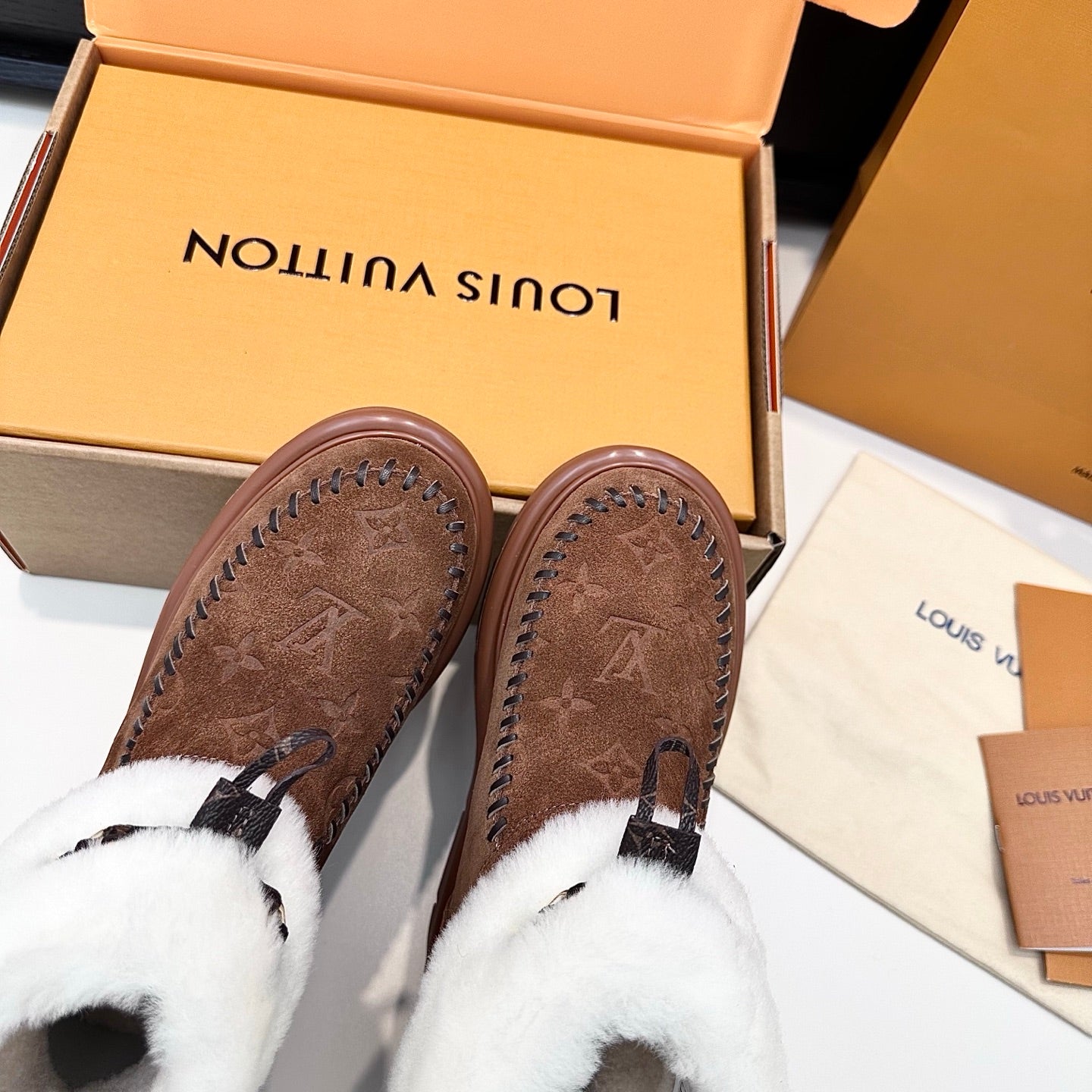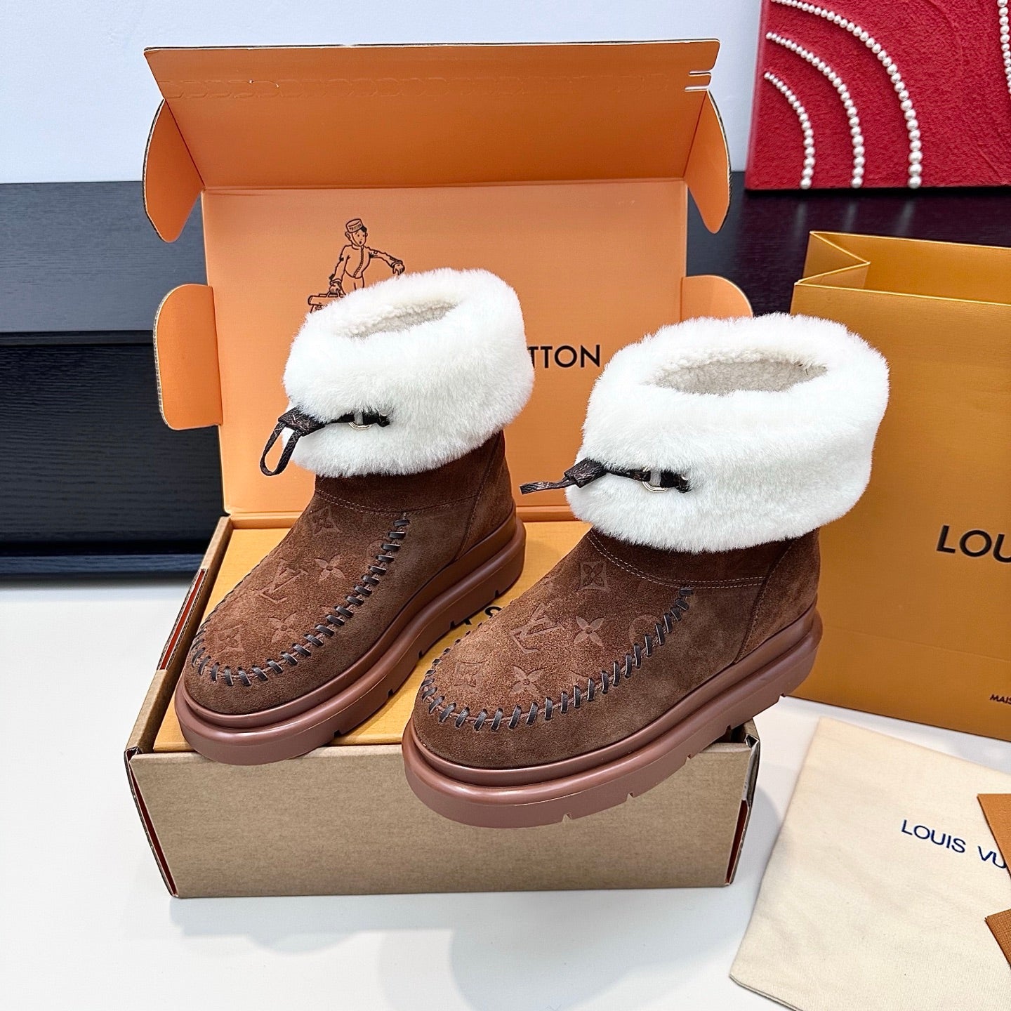 LV Cortina Low Boots Chocolate Suede Wool 542233