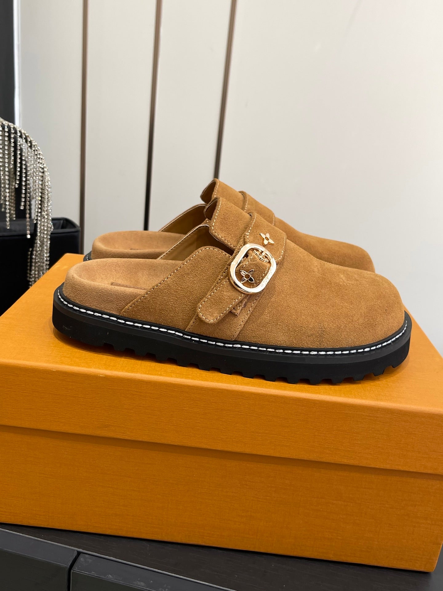 LV Cosy Comfort Mule Sandals Brown Gold Suede 533466