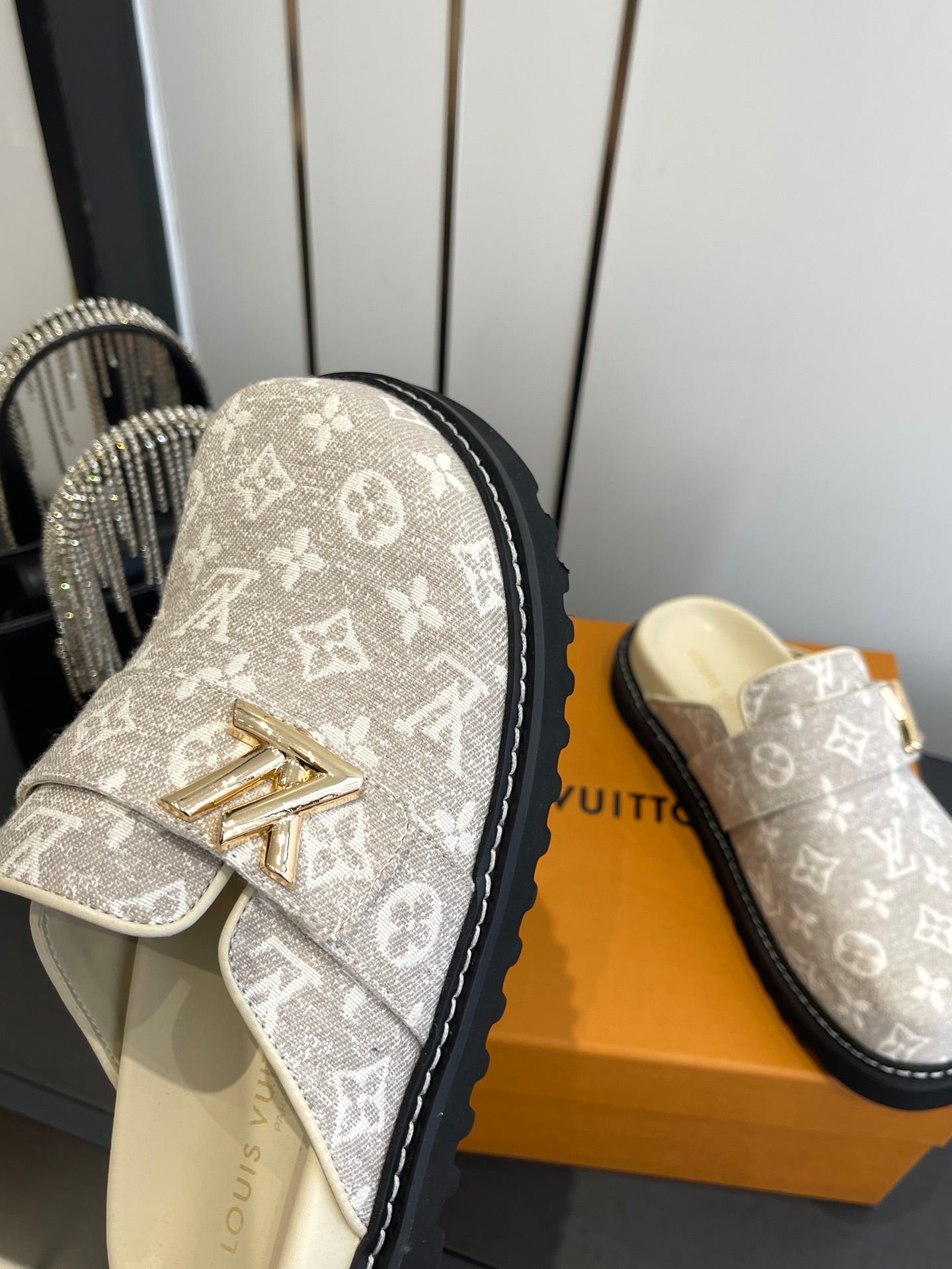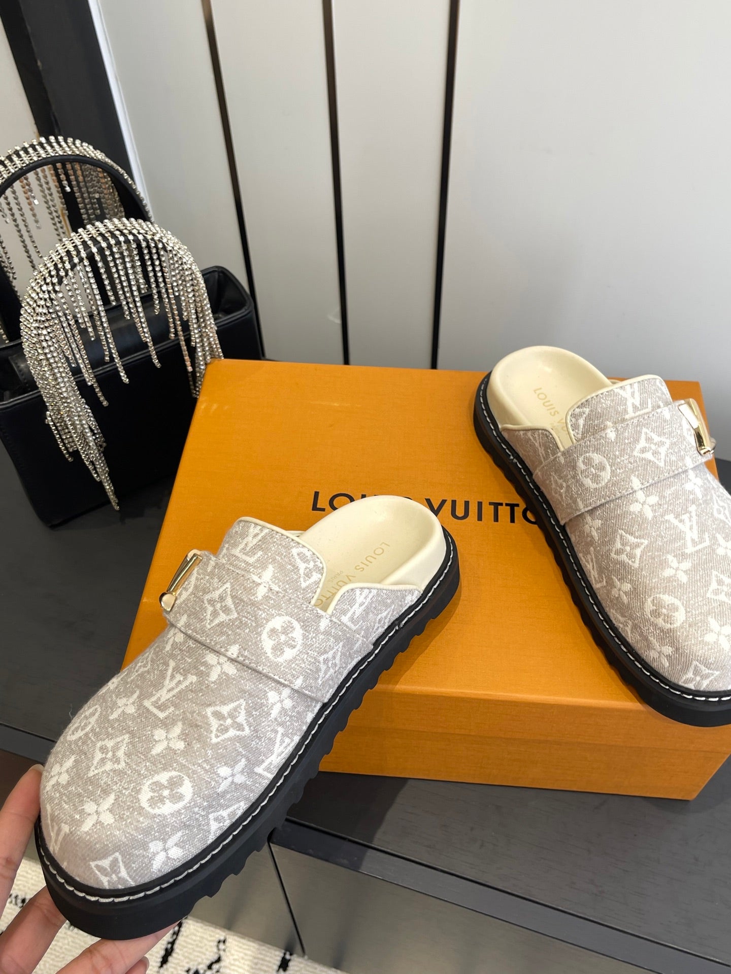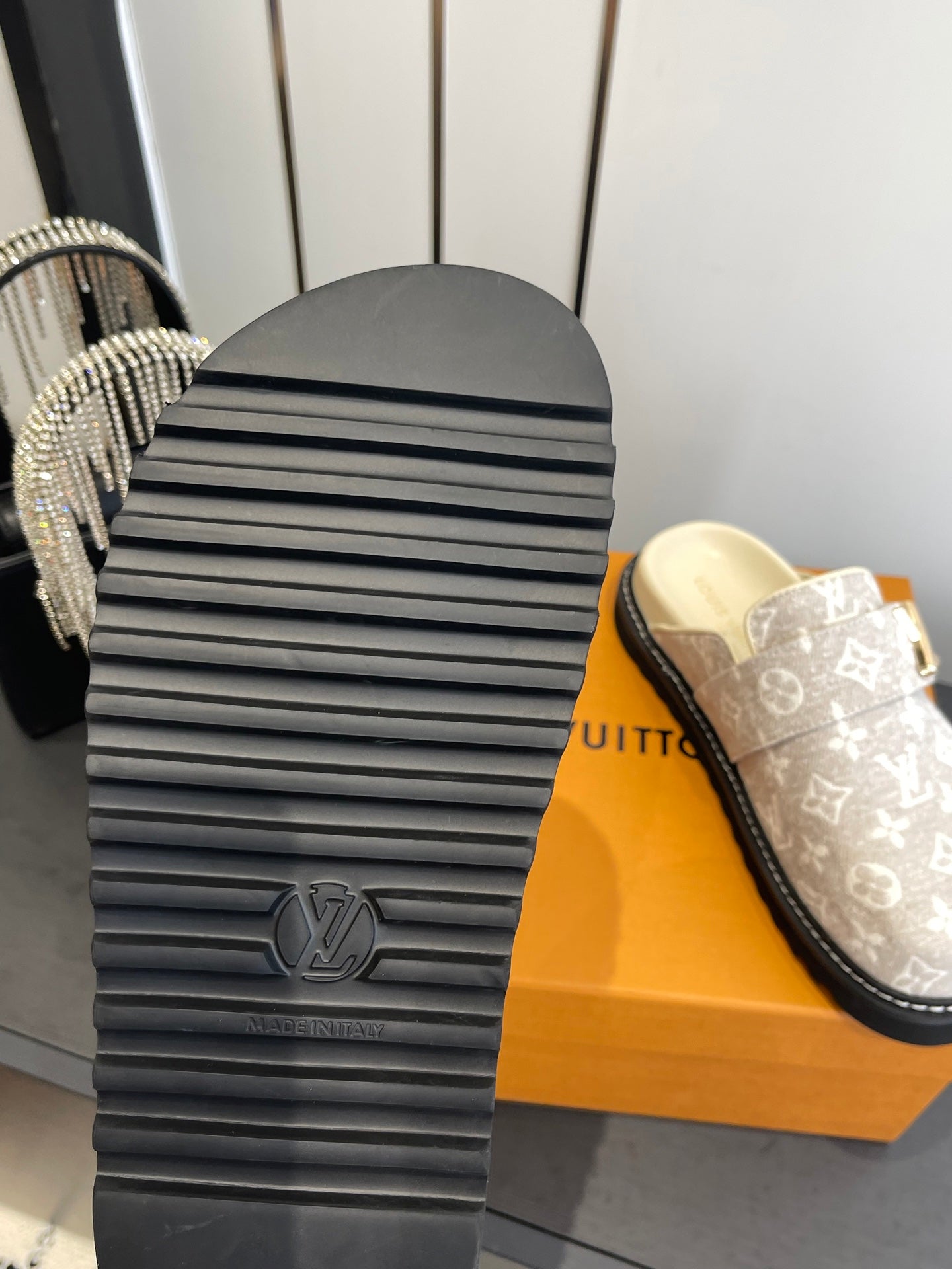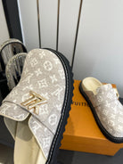 LV Cosy Comfort Mule Sandals Lighe Beige Gold Denim Monogrammed 533462