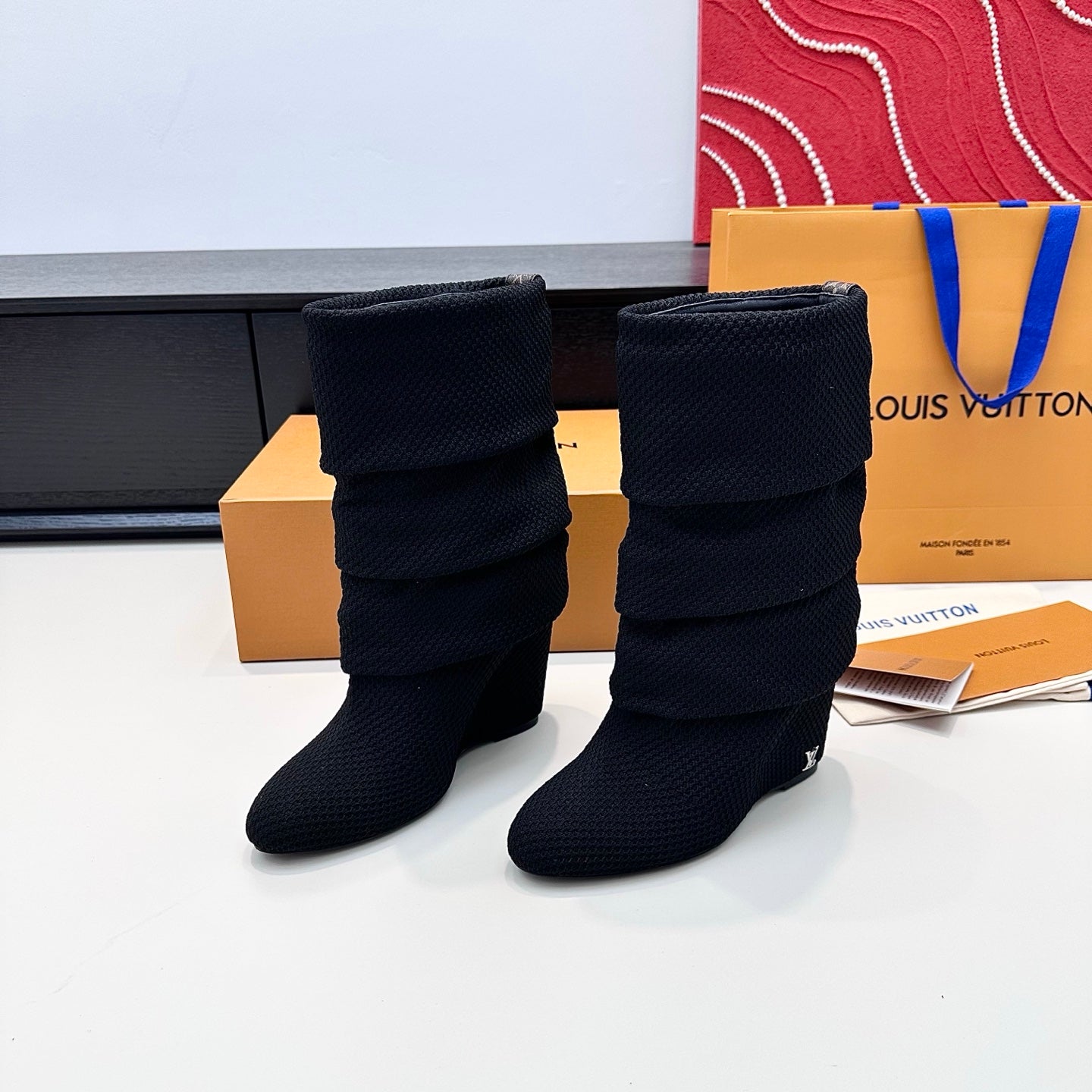 LV CSummer Mid Wedge Boot Black Knit 542224