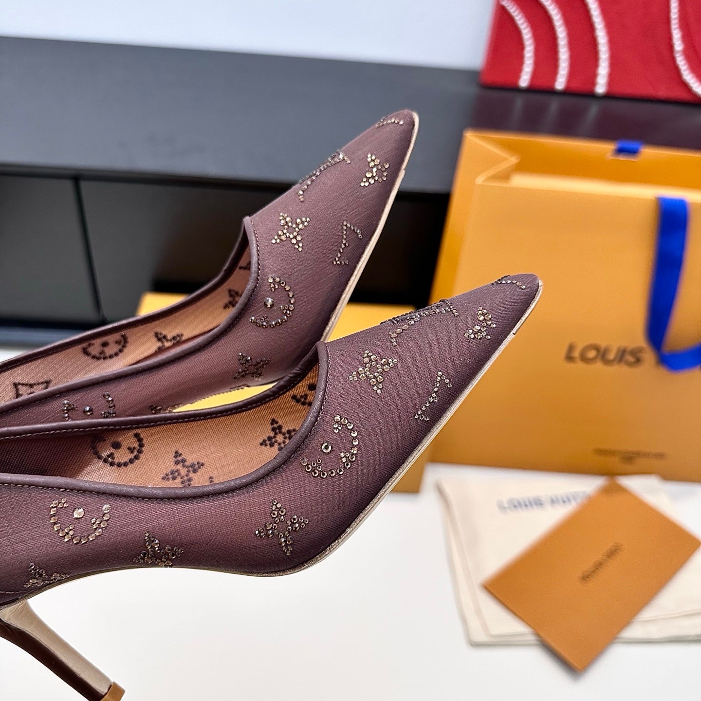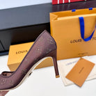 LV GALA High Heels Series Shoes 75mm Dark Rose Taupe Mesh 542215
