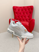 LV Skate Sneakers Silver Metallic and Perforated Calf Leather 528548