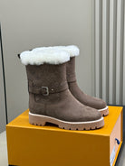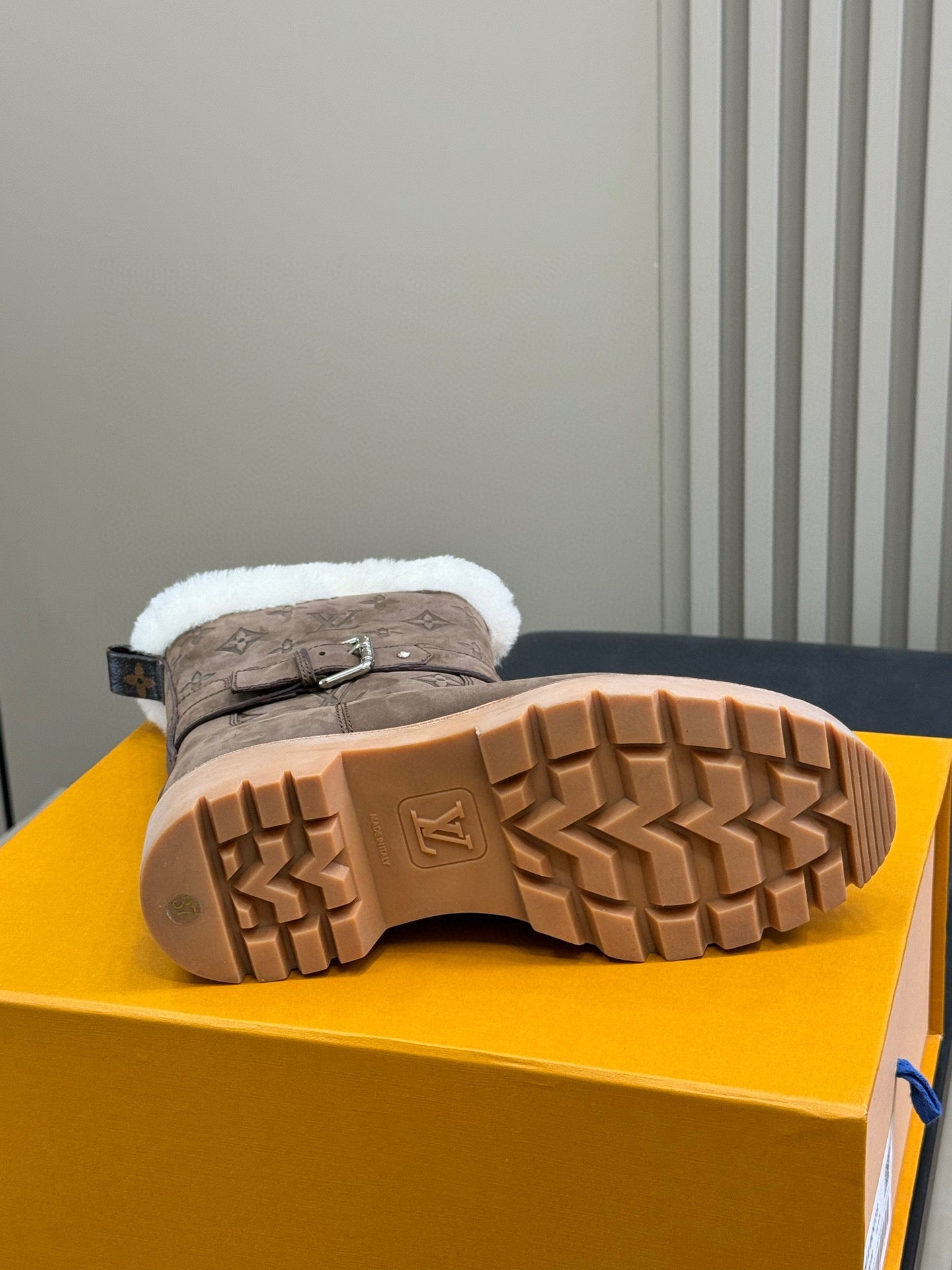 LV Territory Flat Ankle Boots Coffee Suede Wool 542259