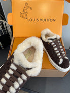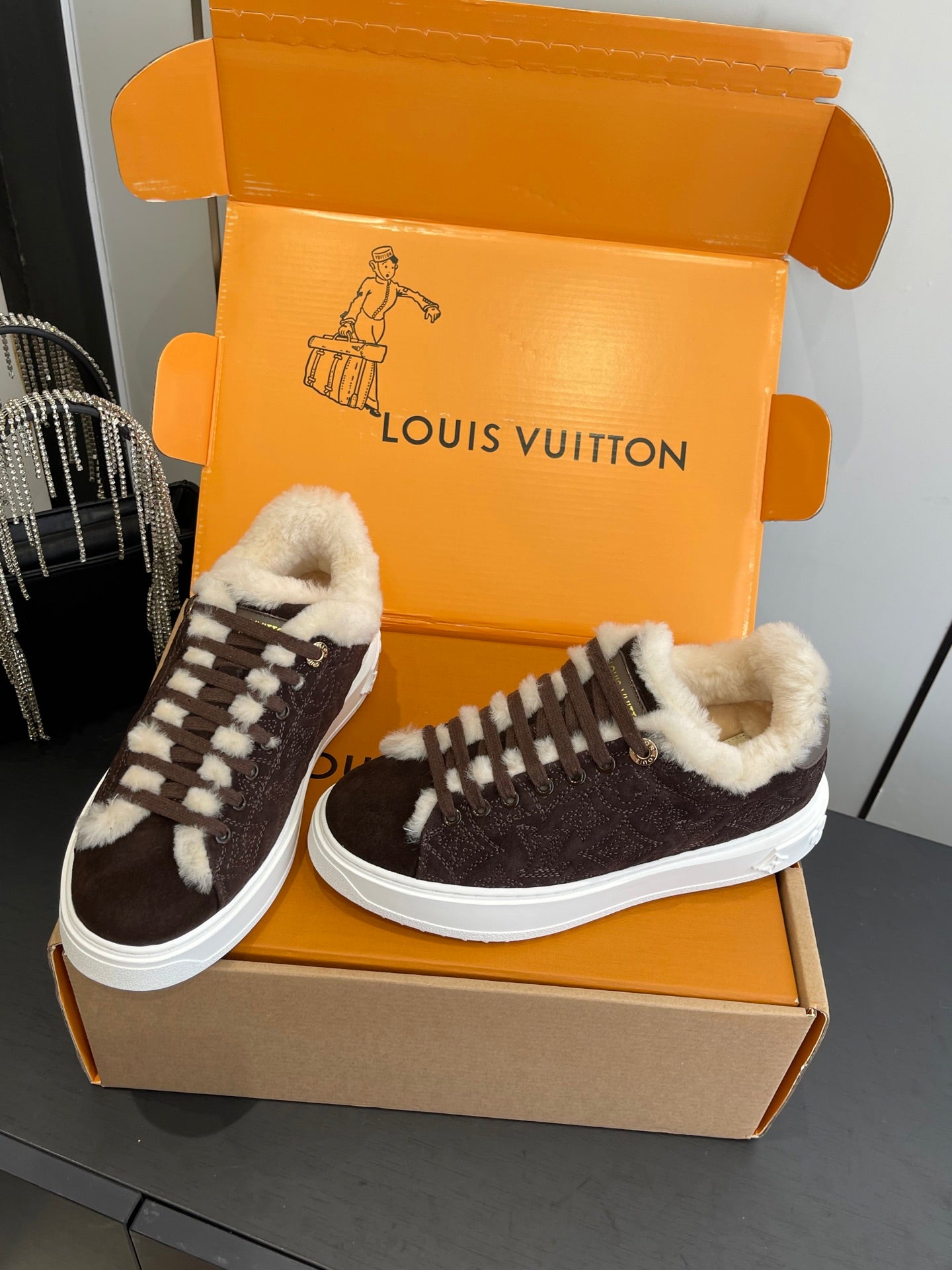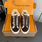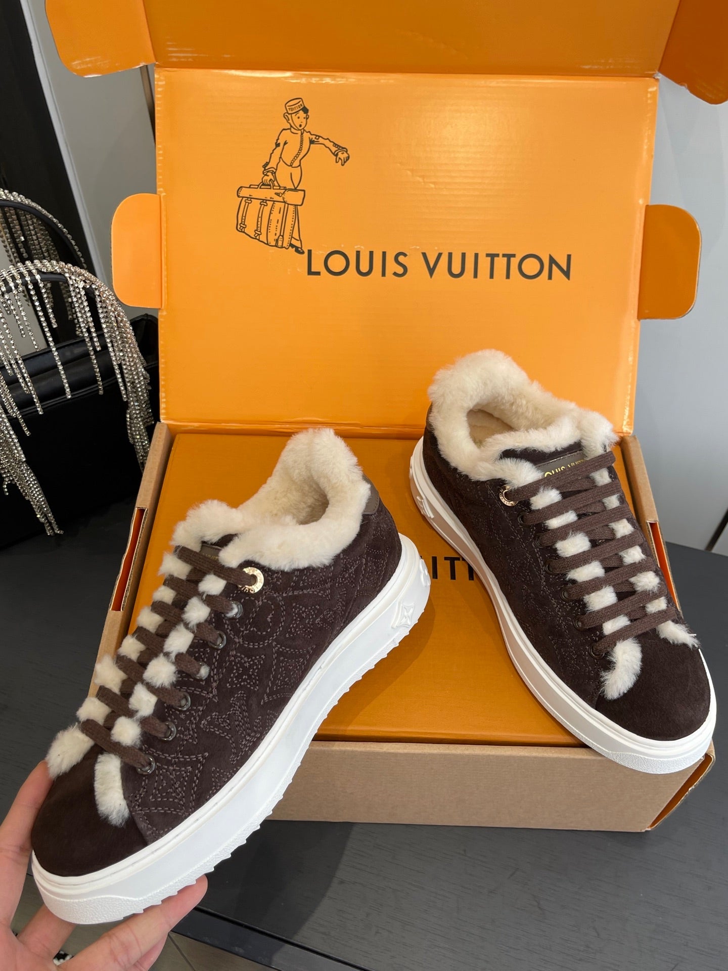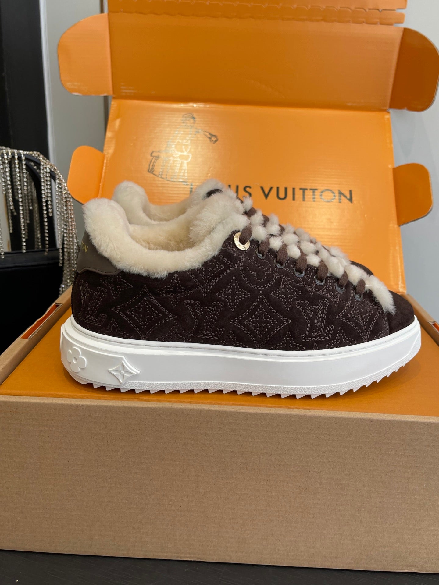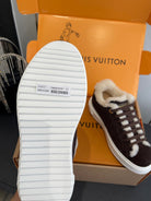 LV Time Out Sneaker 40mm Marron White Monogram Denim Suede Fleece Lined 533475