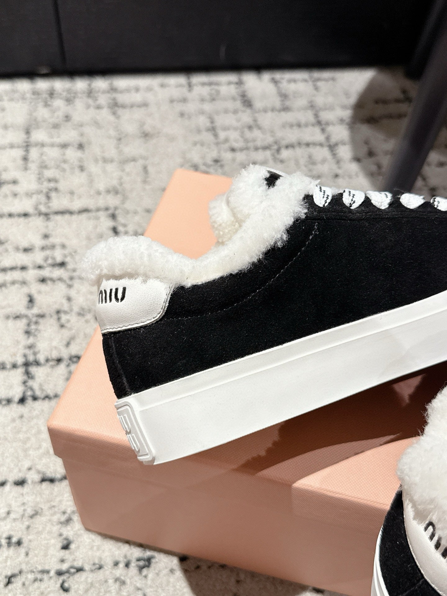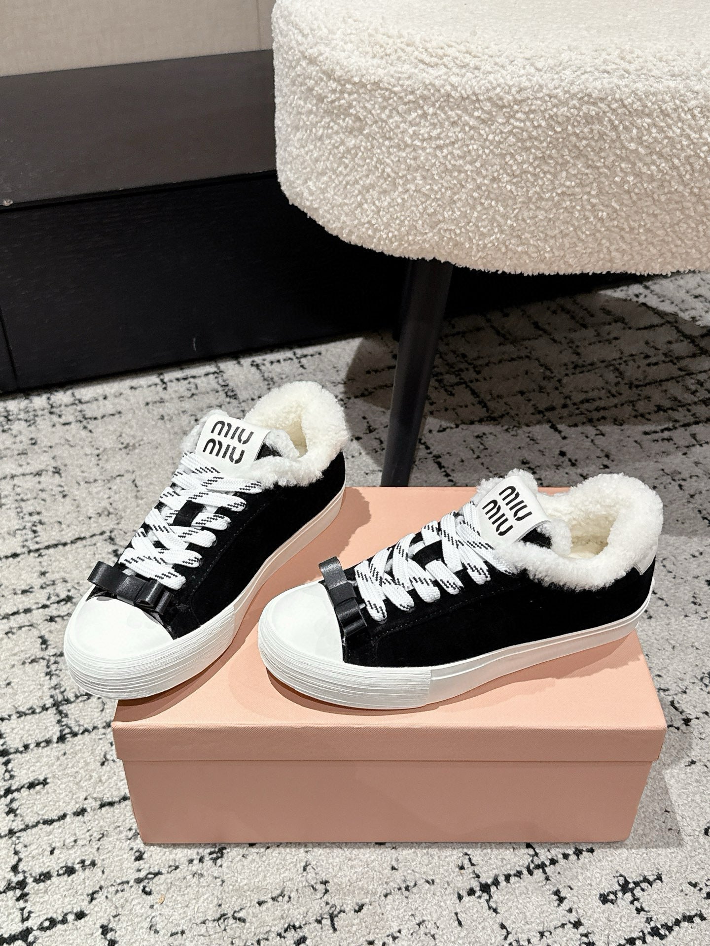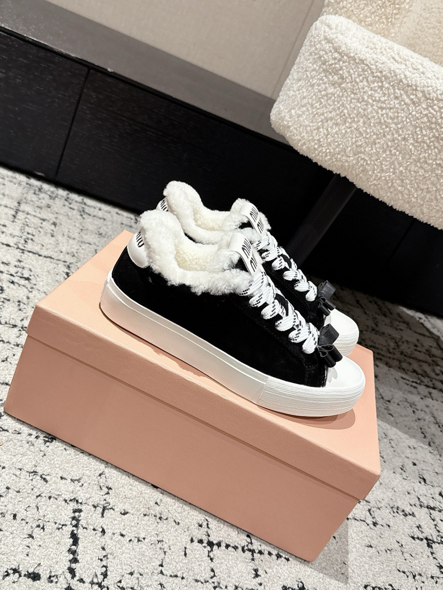Miu 25 Small Bow Sneaker Black White Suede Wool 541919