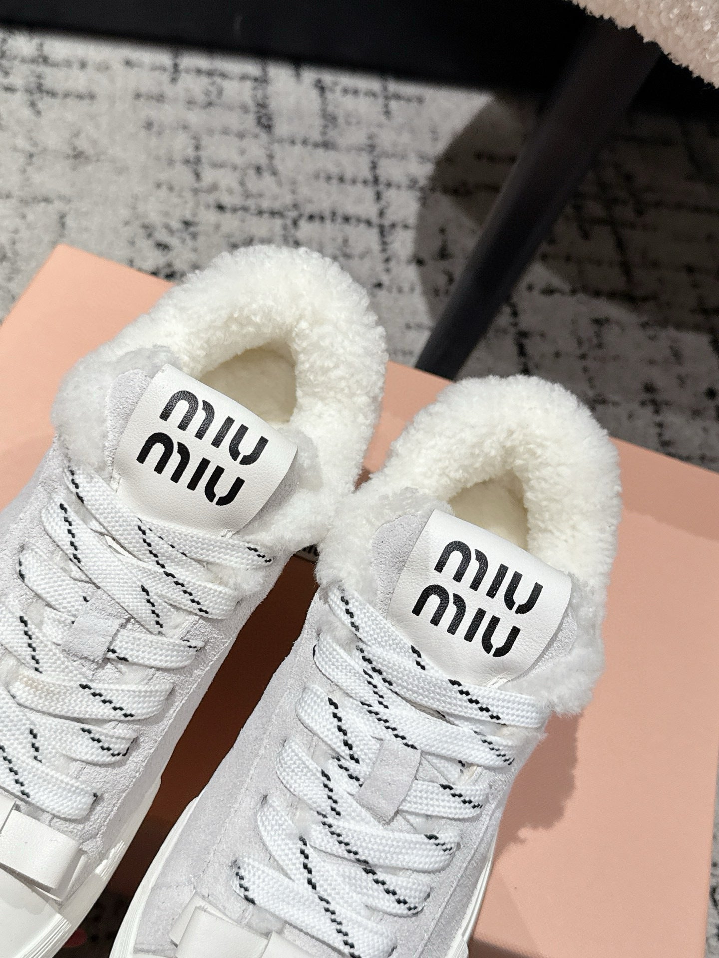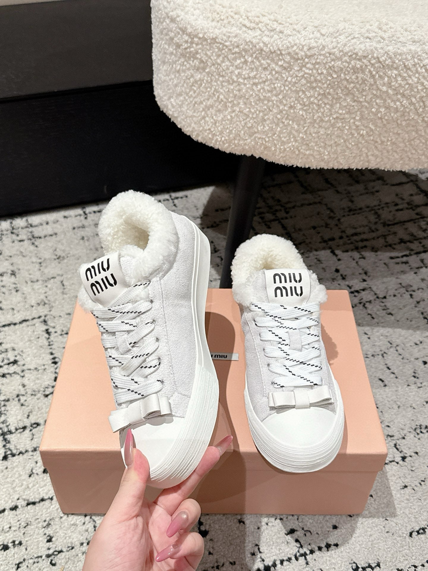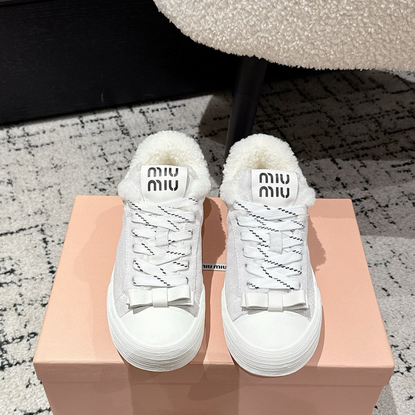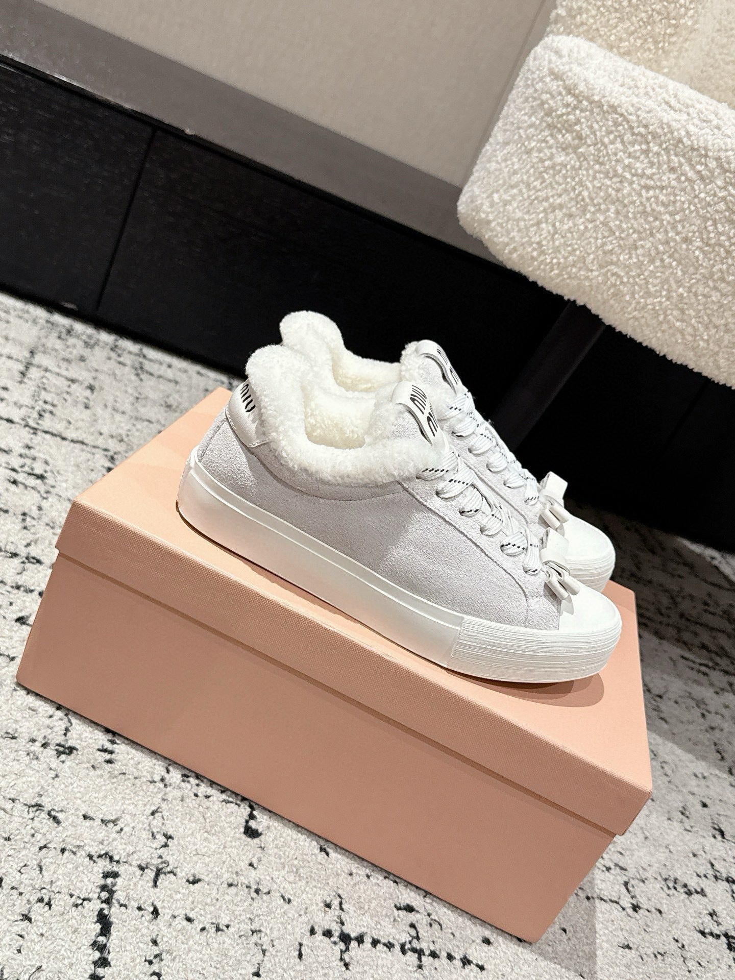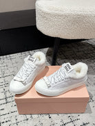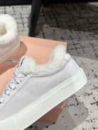 Miu 25 Small Bow Sneaker Gray White Suede Wool 541920