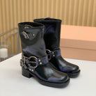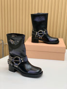 Miu Miu Biker Mid-Length Boots Black Leather 535199