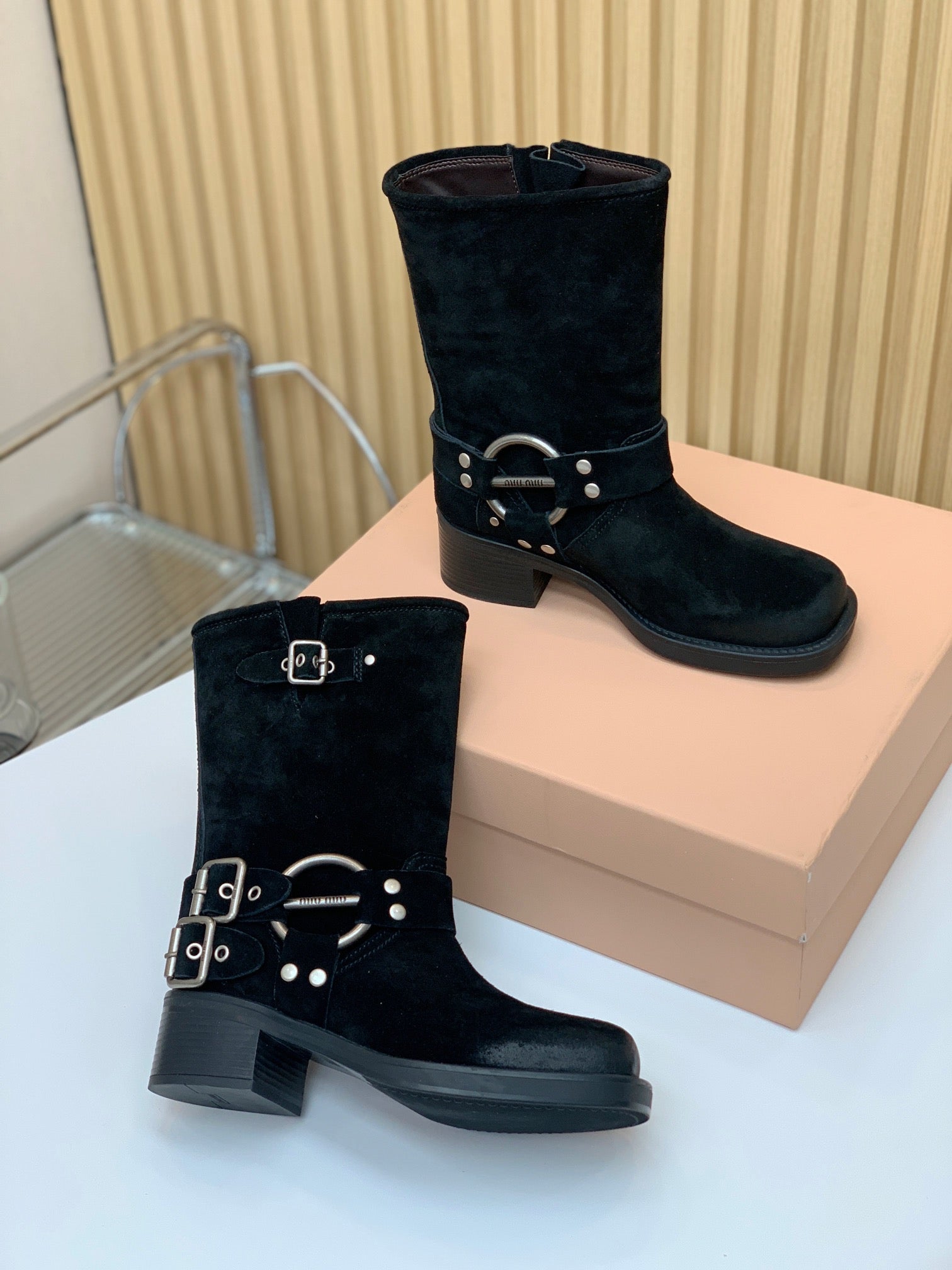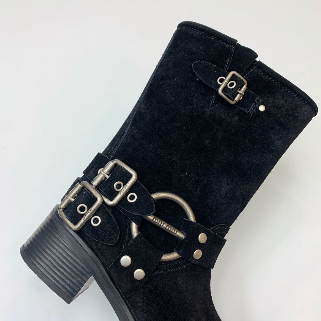 Miu Miu Biker Mid-Length Boots Black Suede 535196