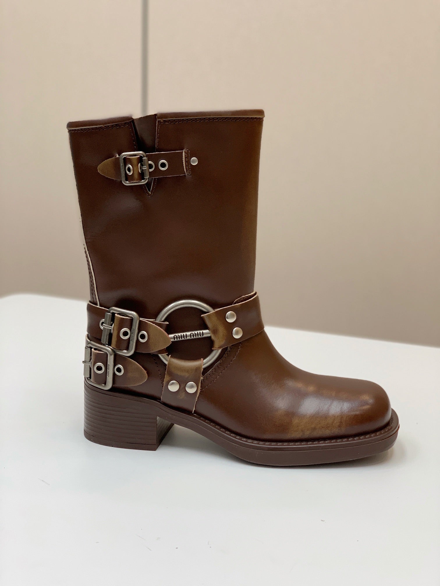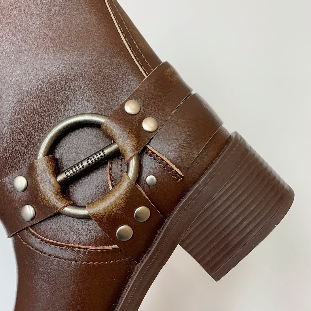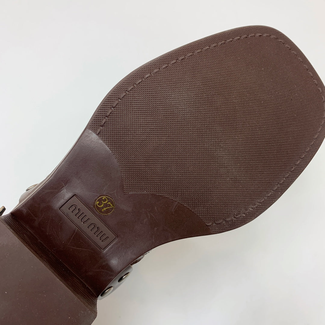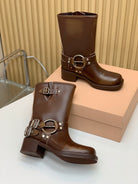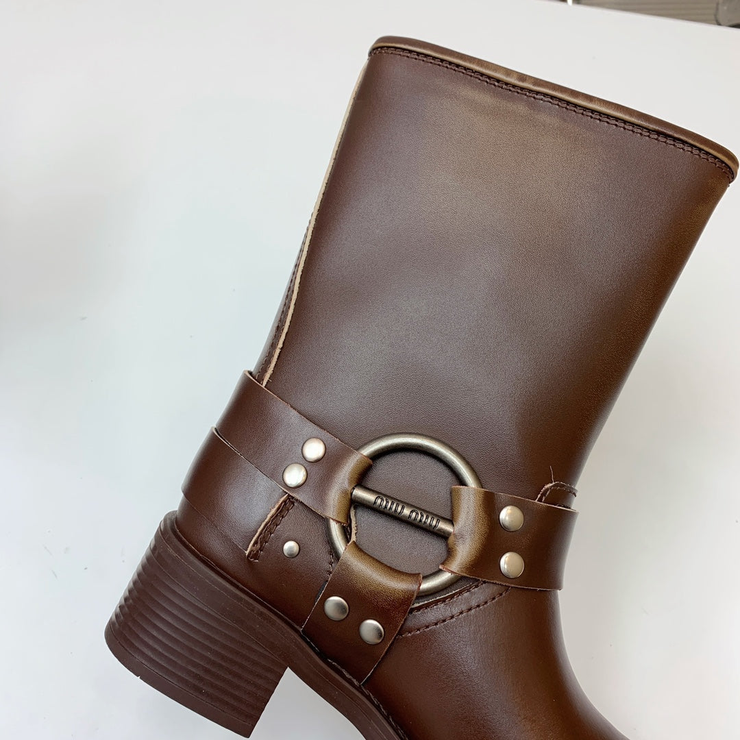 Miu Miu Biker Mid-Length Boots Brown Leather 535198