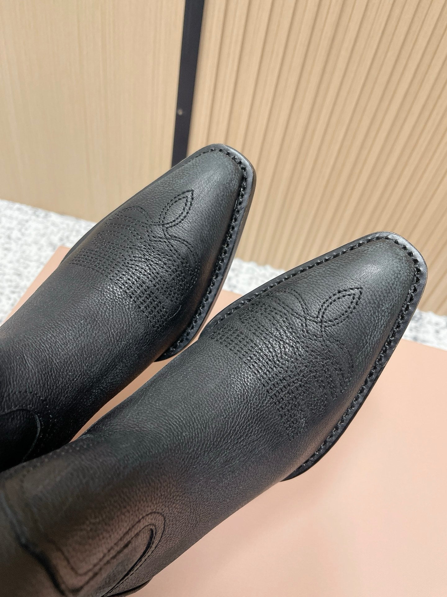 Miumiu Latest FW Western Cowboy Boots Black Genuine Leather 533964