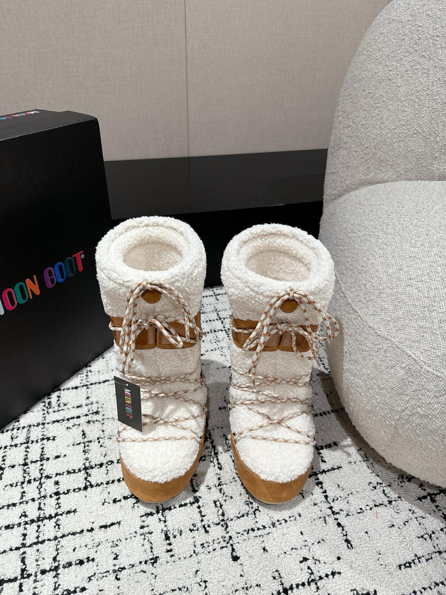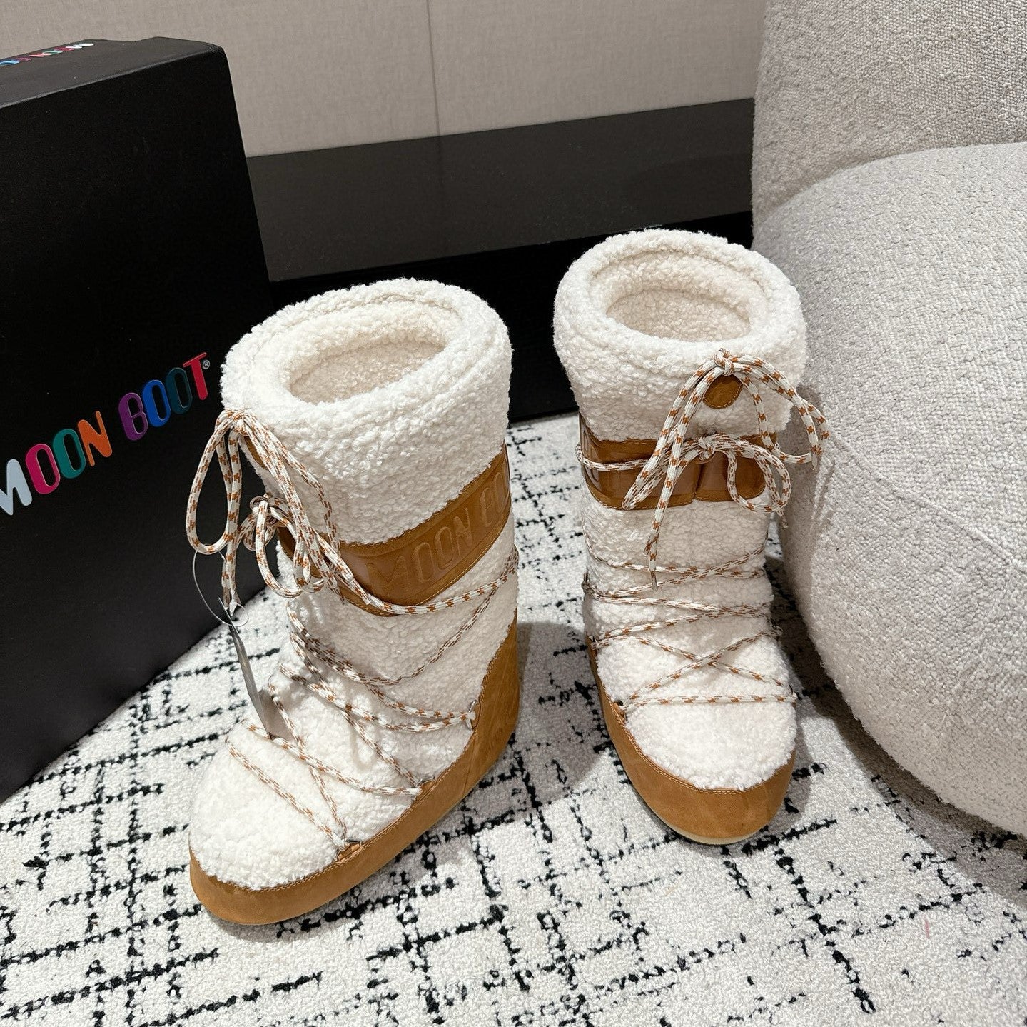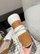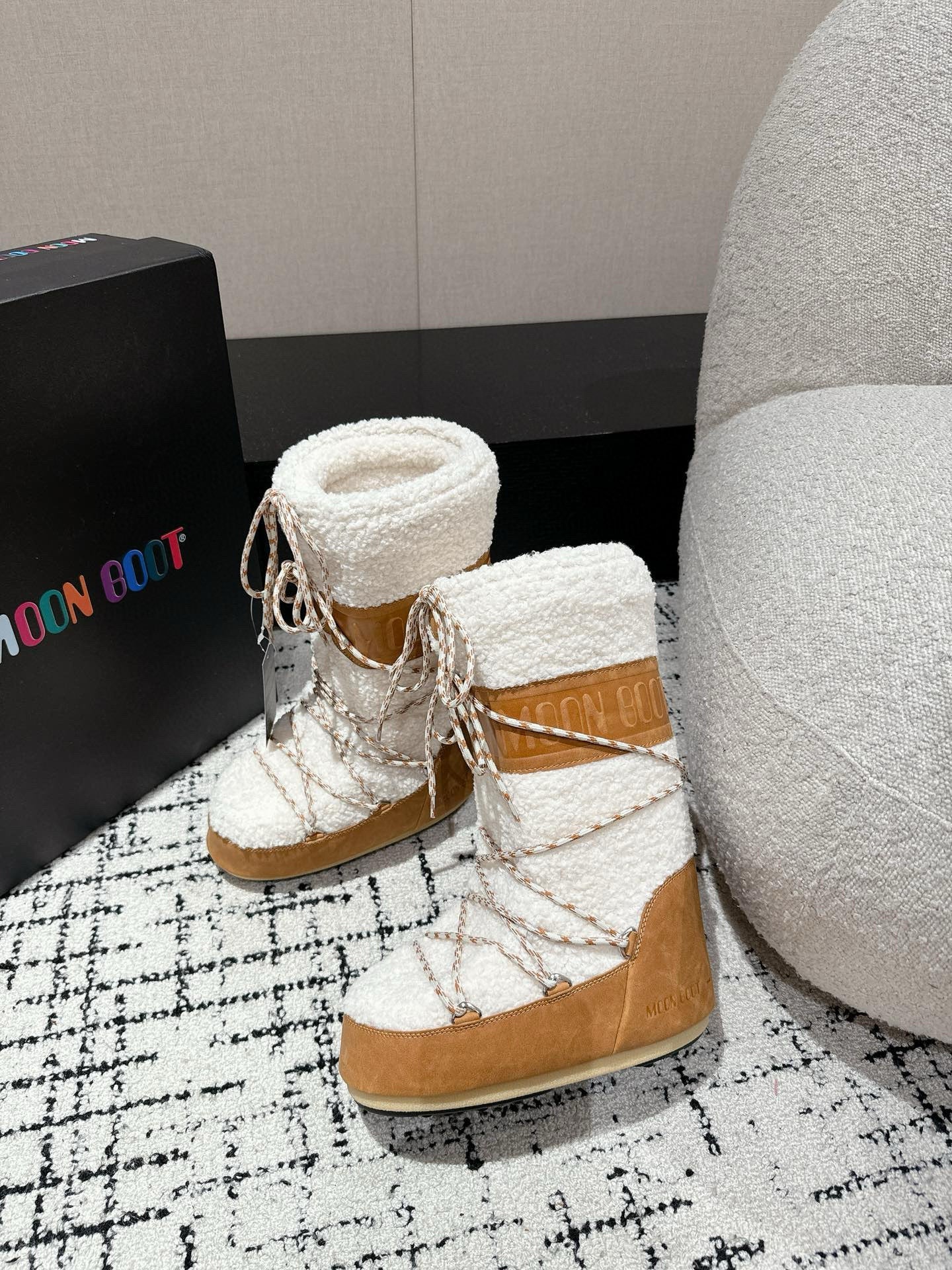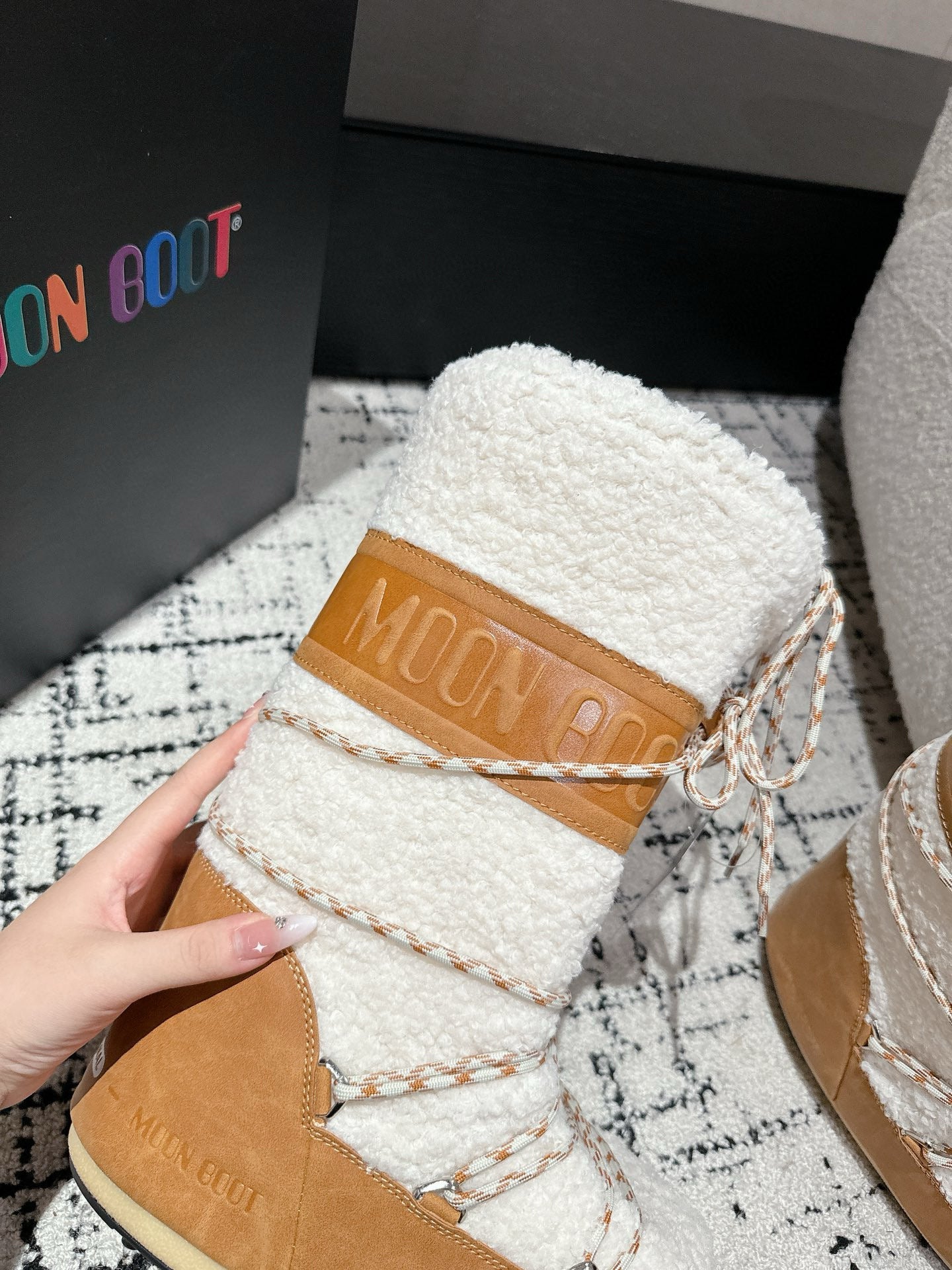 Moon Boot Icon Faux Fur Boots White Brown Suede Shearing 541978