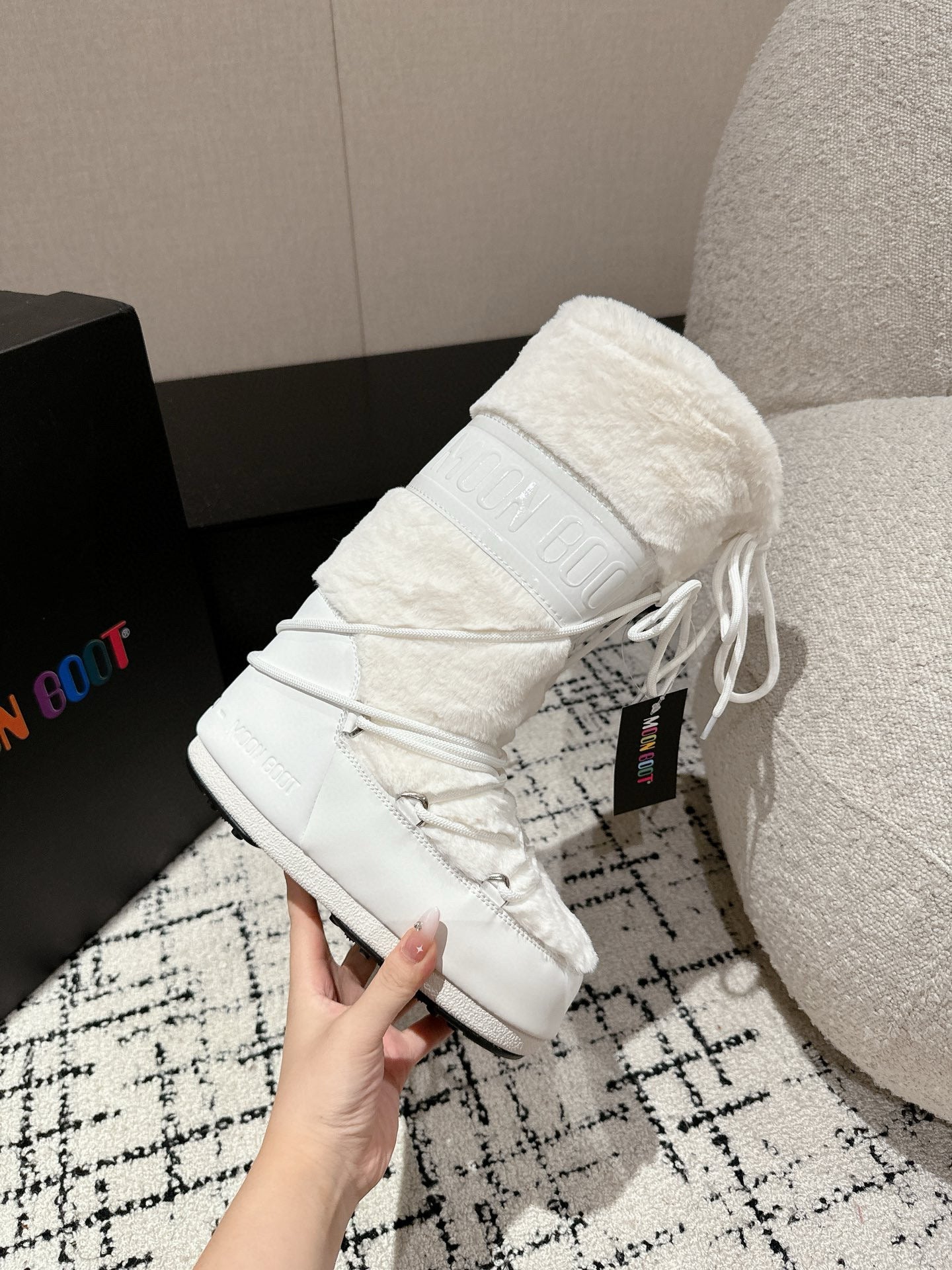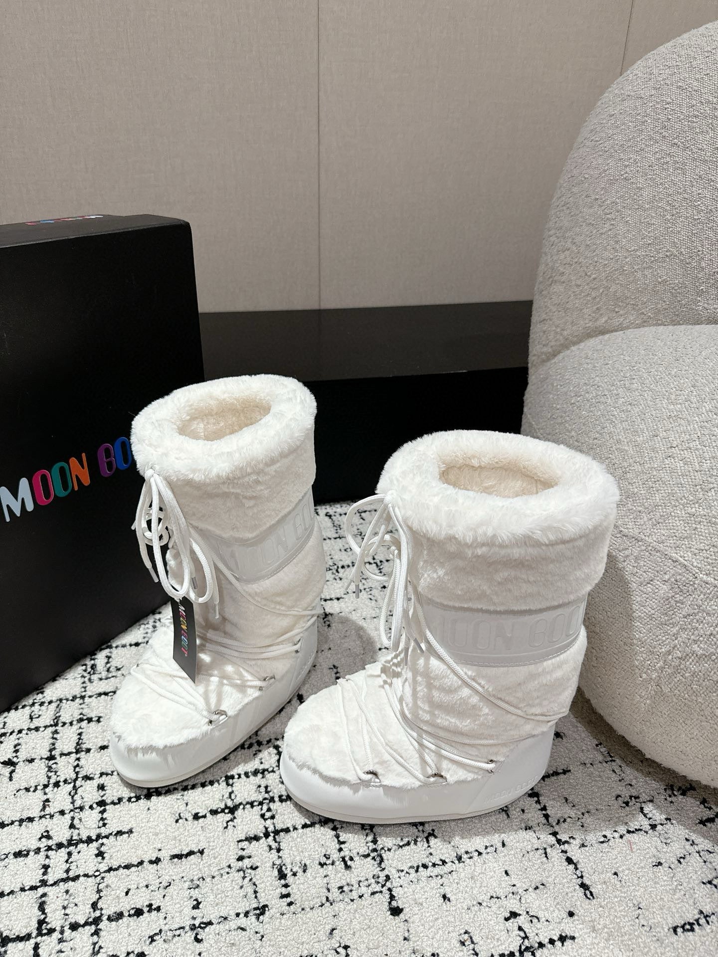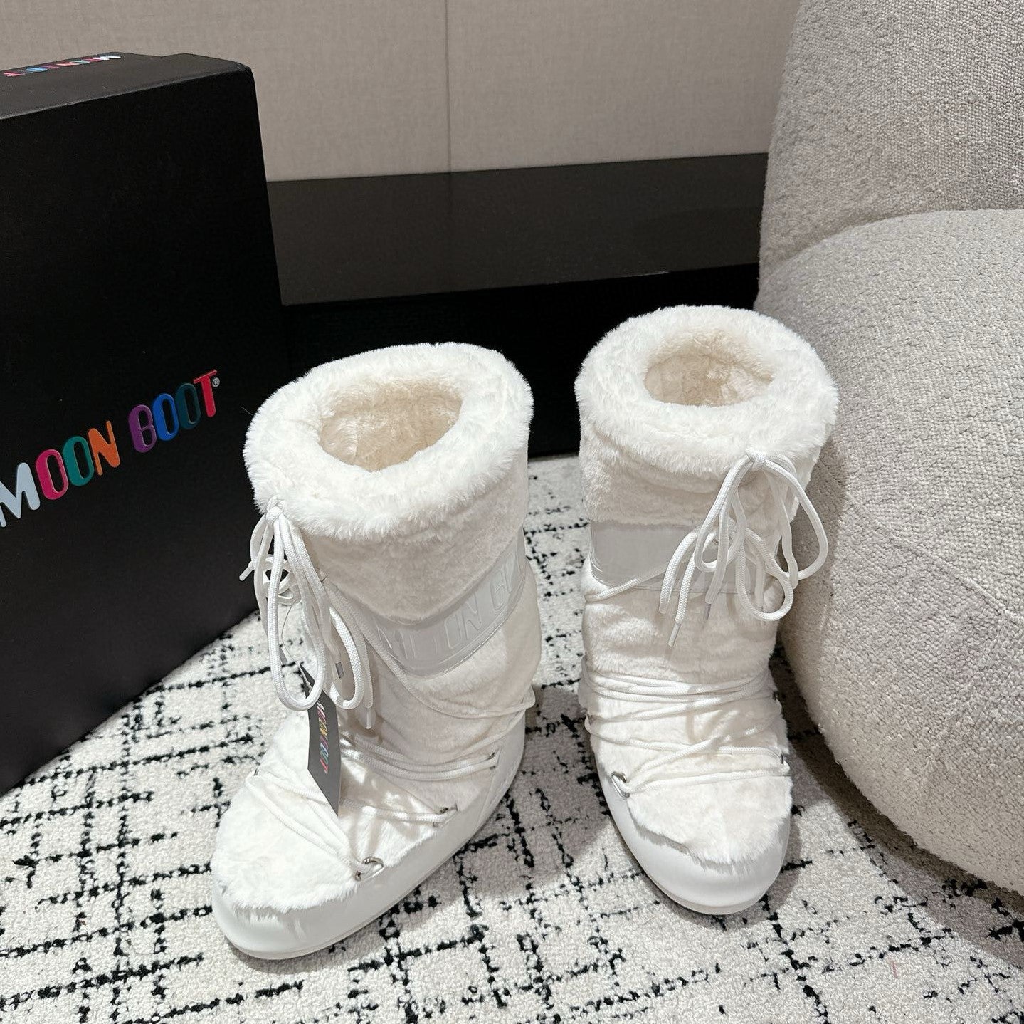 Moon Boot Icon Faux Fur Boots White Shearing 541979
