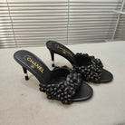 mule sandal 80 black calfskin flower