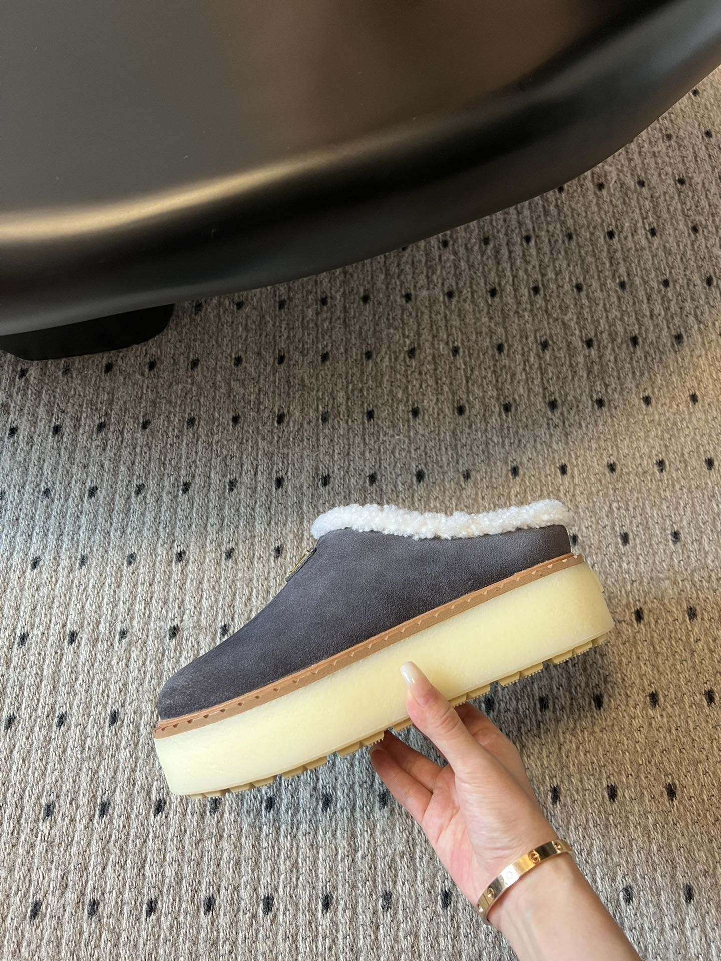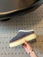 Prada 25s Furry Half-Cover Slippers Black Suede And Wool 538430