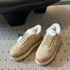 Prada 25s Mid-Top Sneaker Beige Suede And Wool 538436