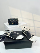 SL Cassandra Croc-Embossed Thong Sandals Black White Leather