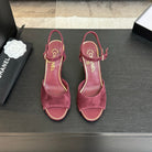 T-STRAP PEARL HEEL 85 MM SANDALS IN SANGRIA RED SUEDE