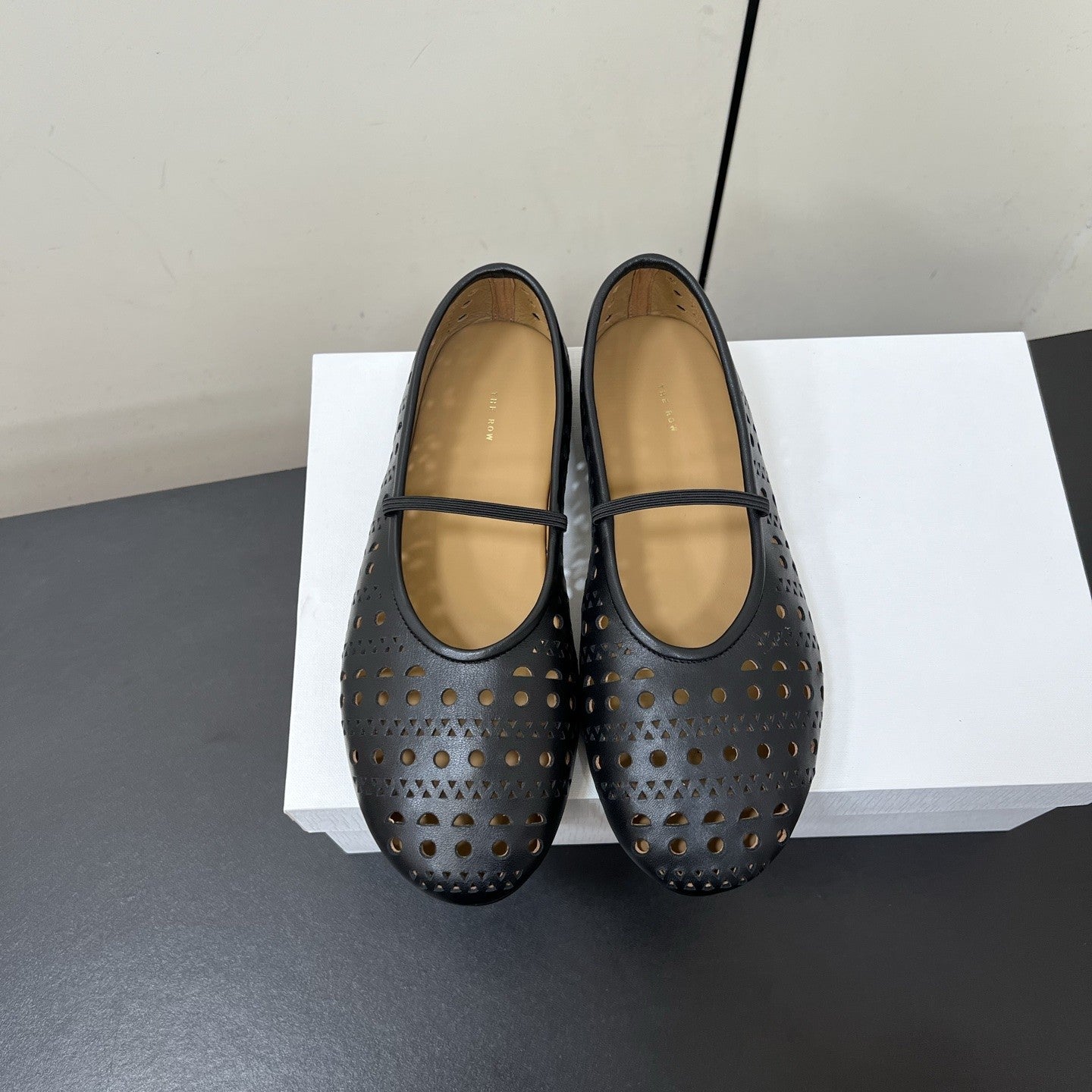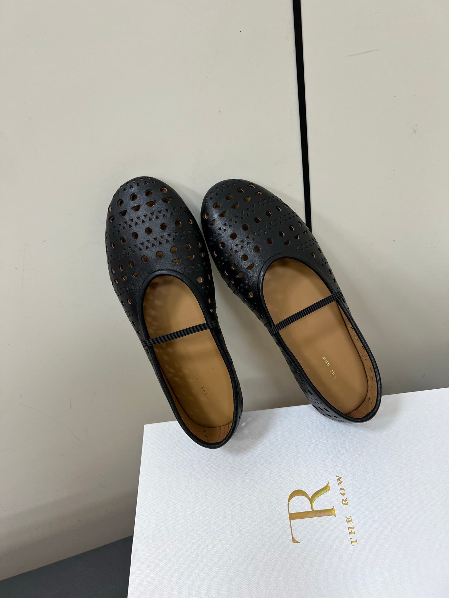 The Row Garden Mary Janes Flats Black Calfskin 340034