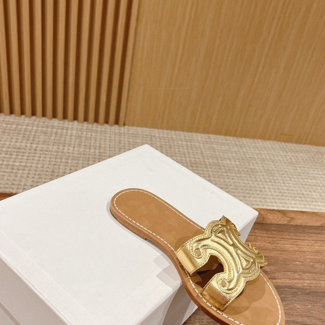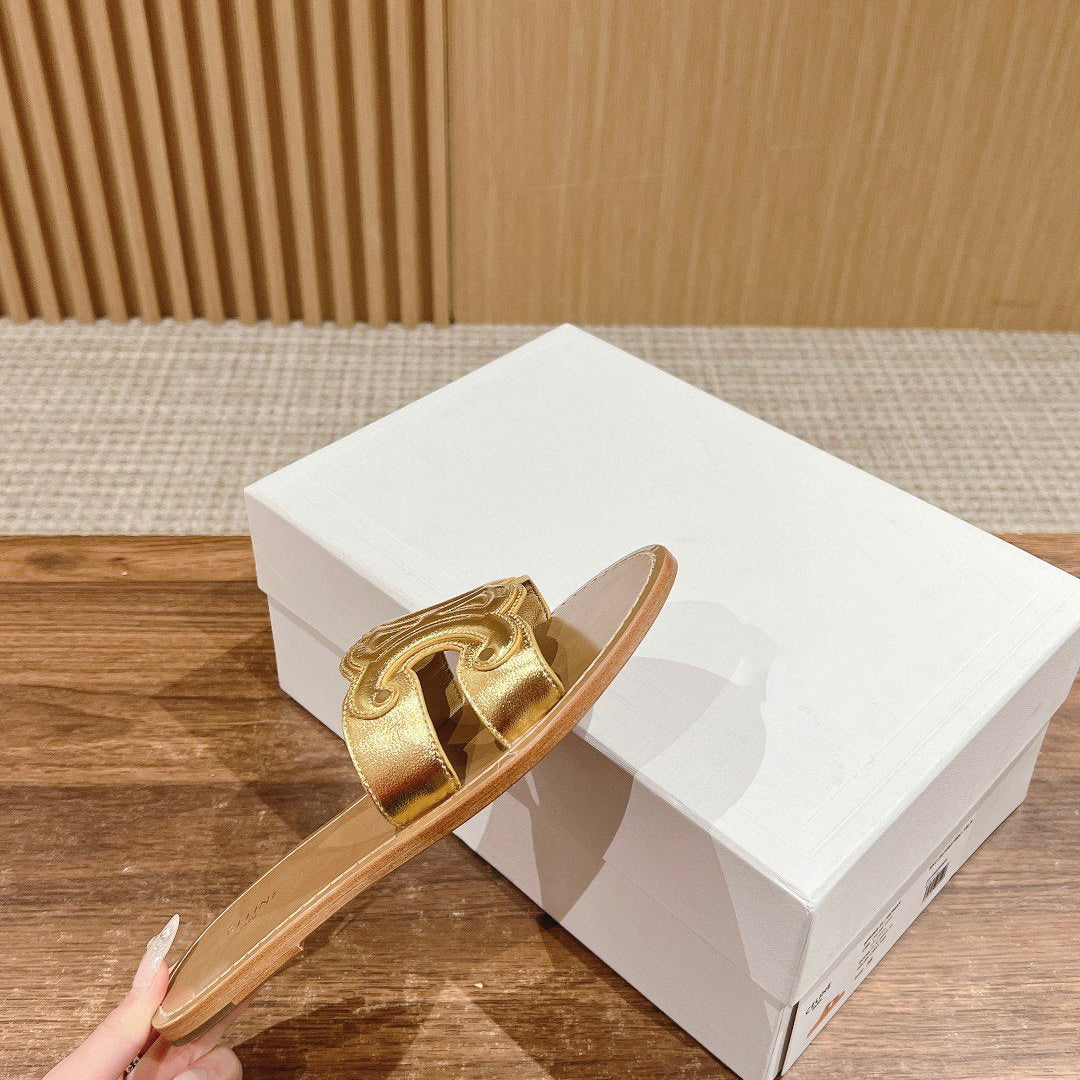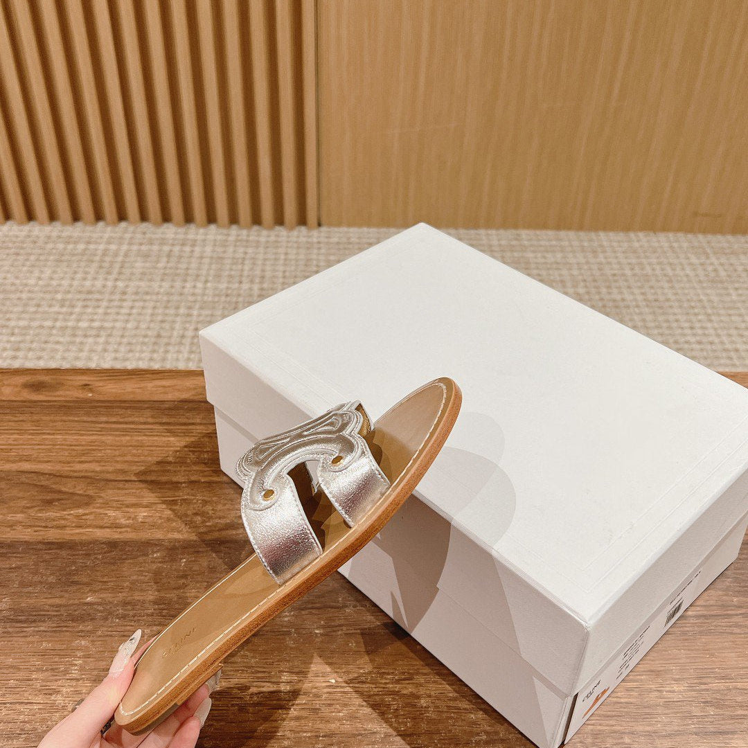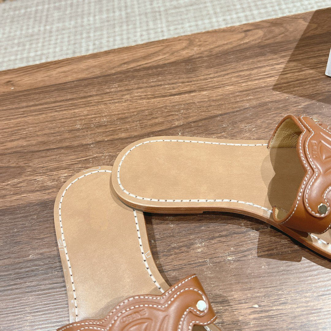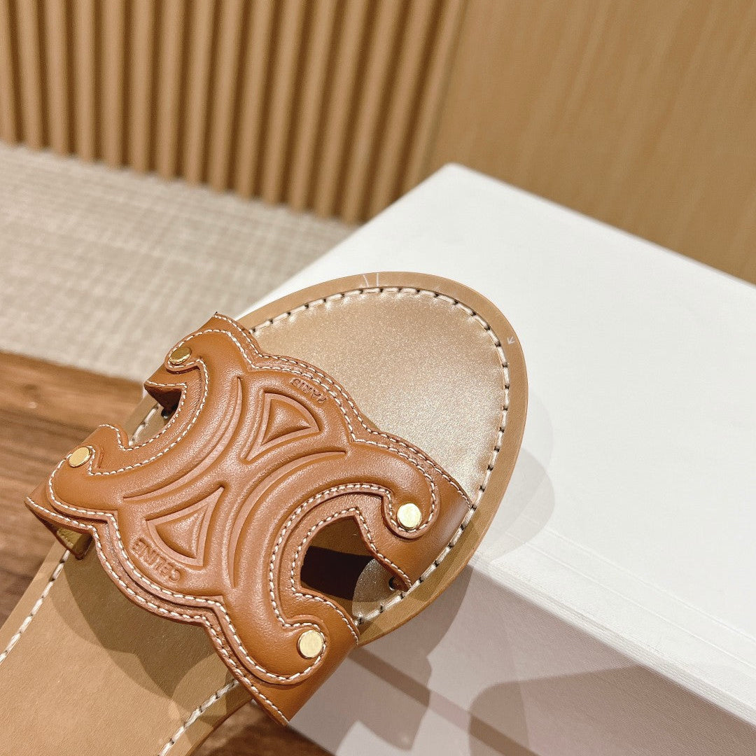 TRIOMPHE SLIDE IN BRONZE BROWN CALFSKIN