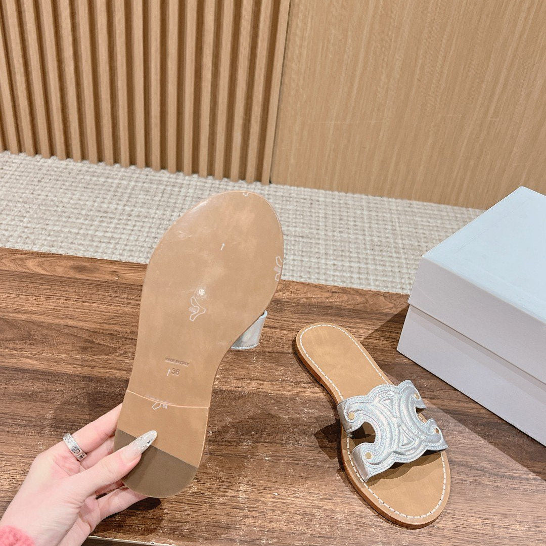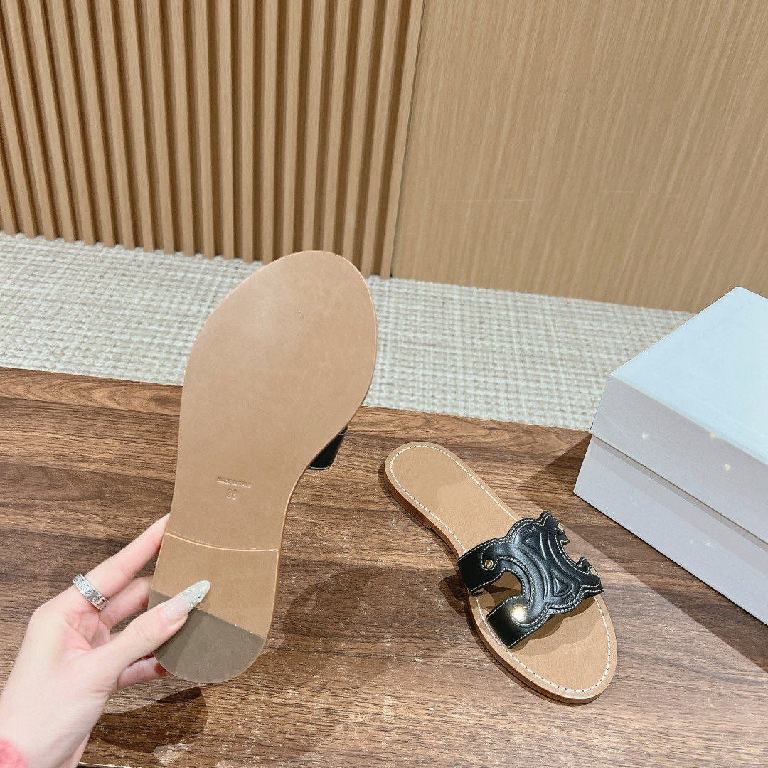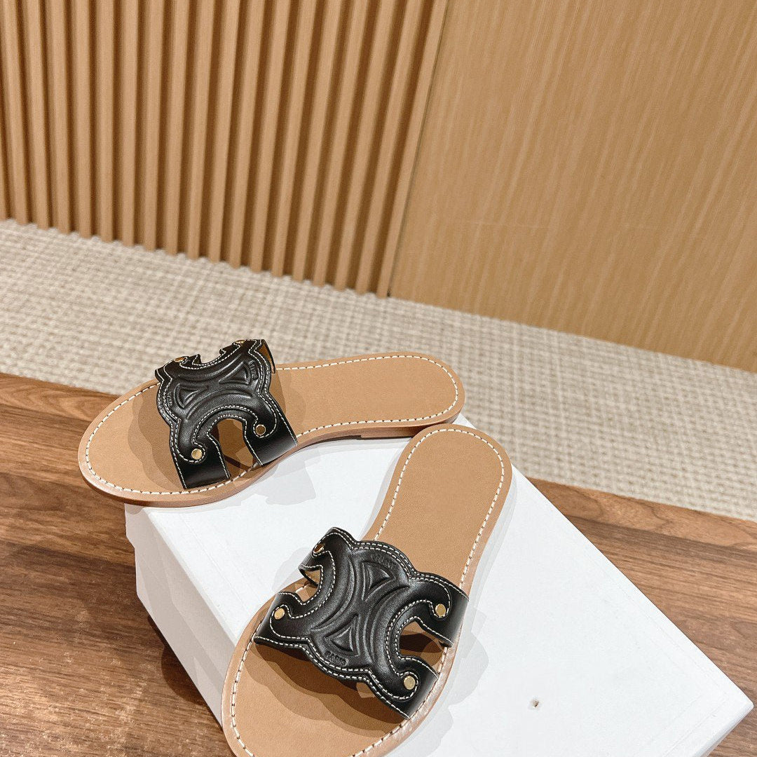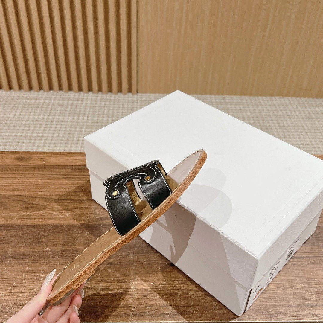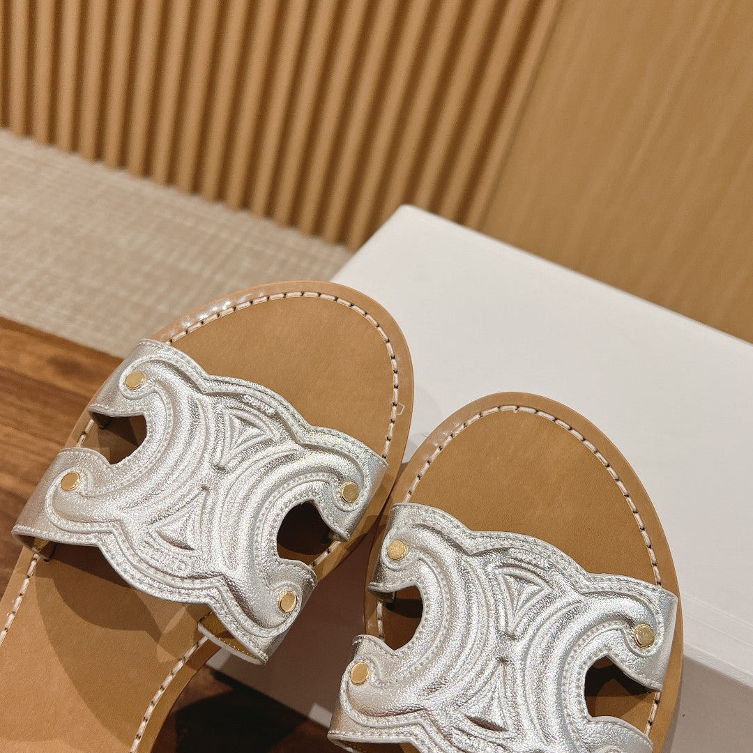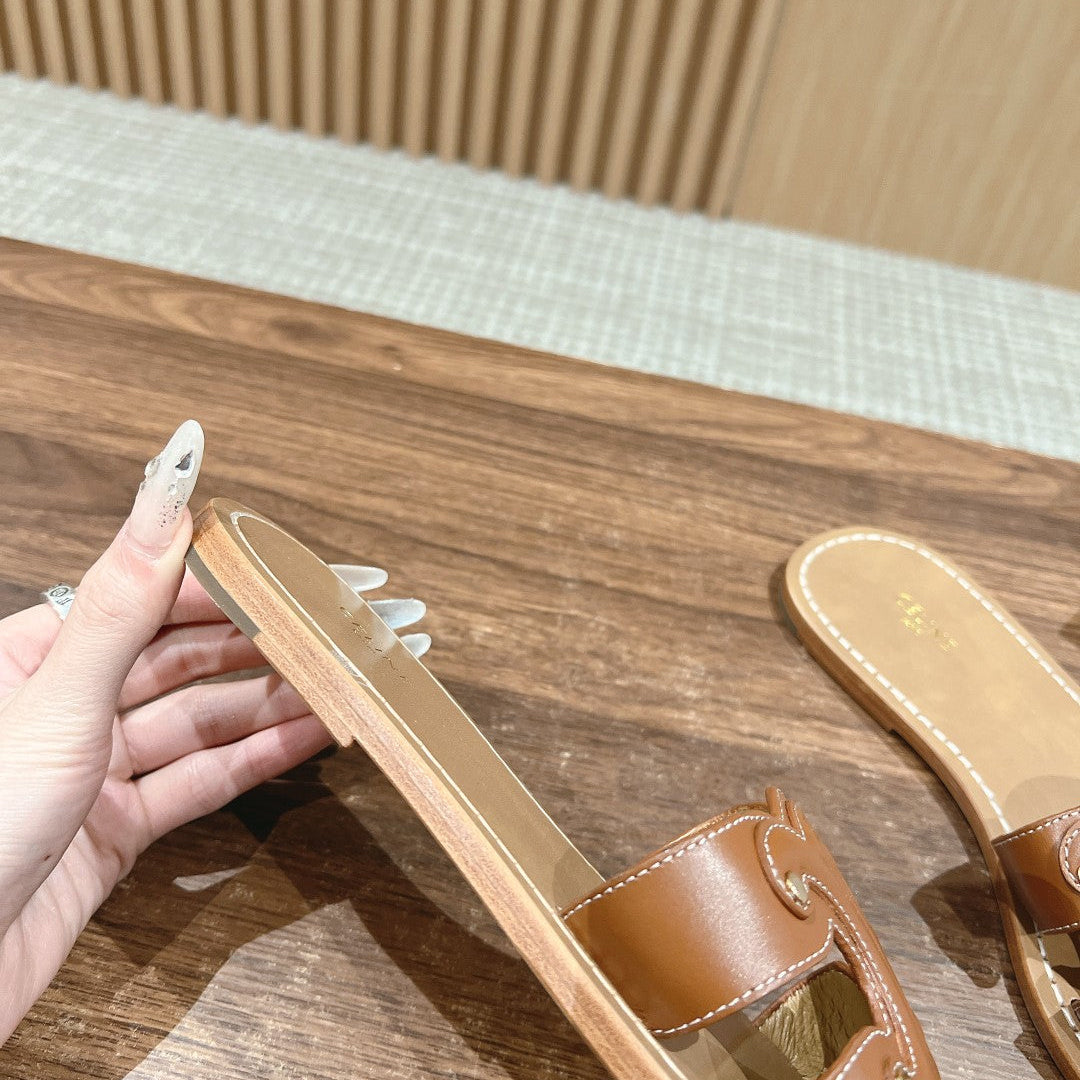 TRIOMPHE SLIDE IN BRONZE BROWN CALFSKIN