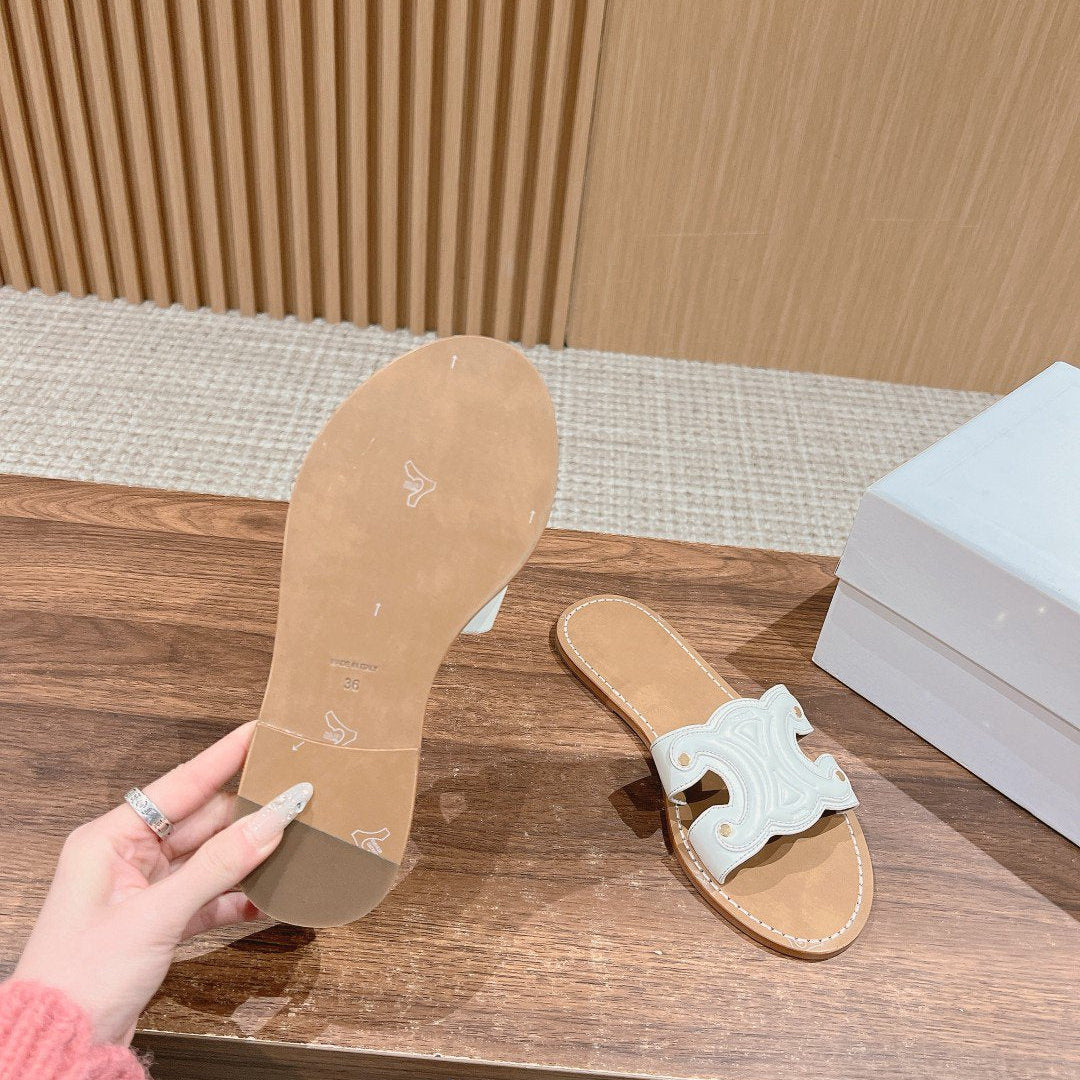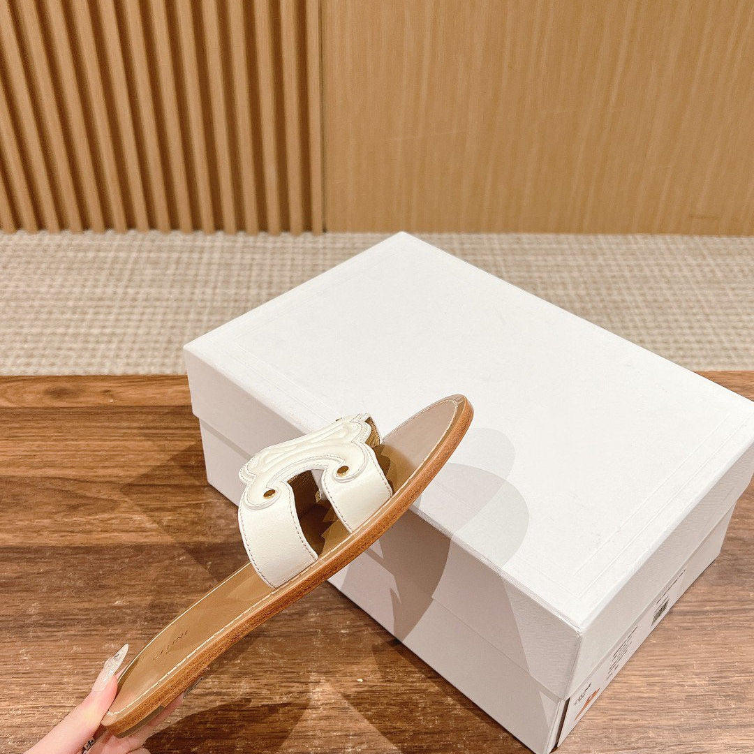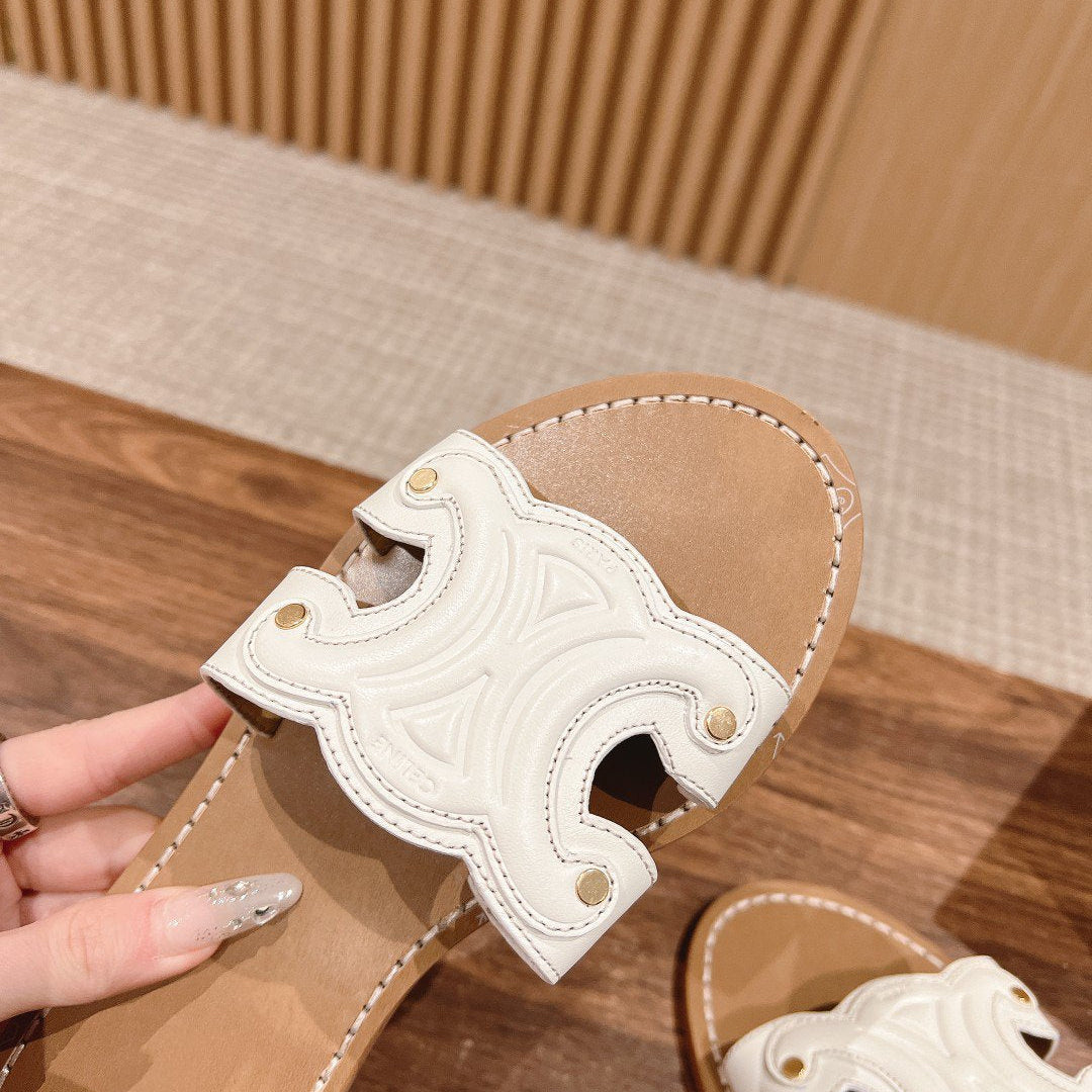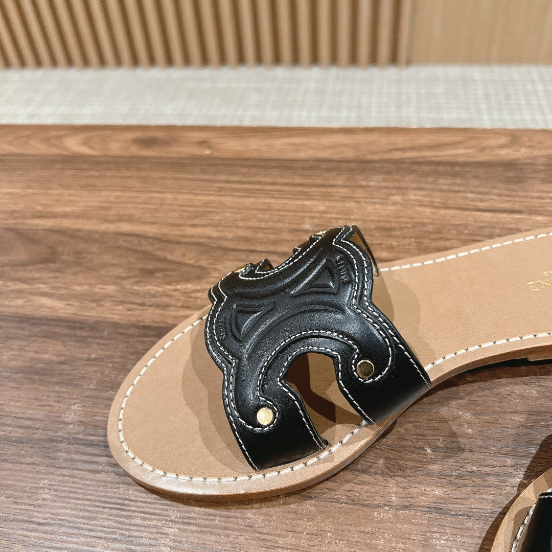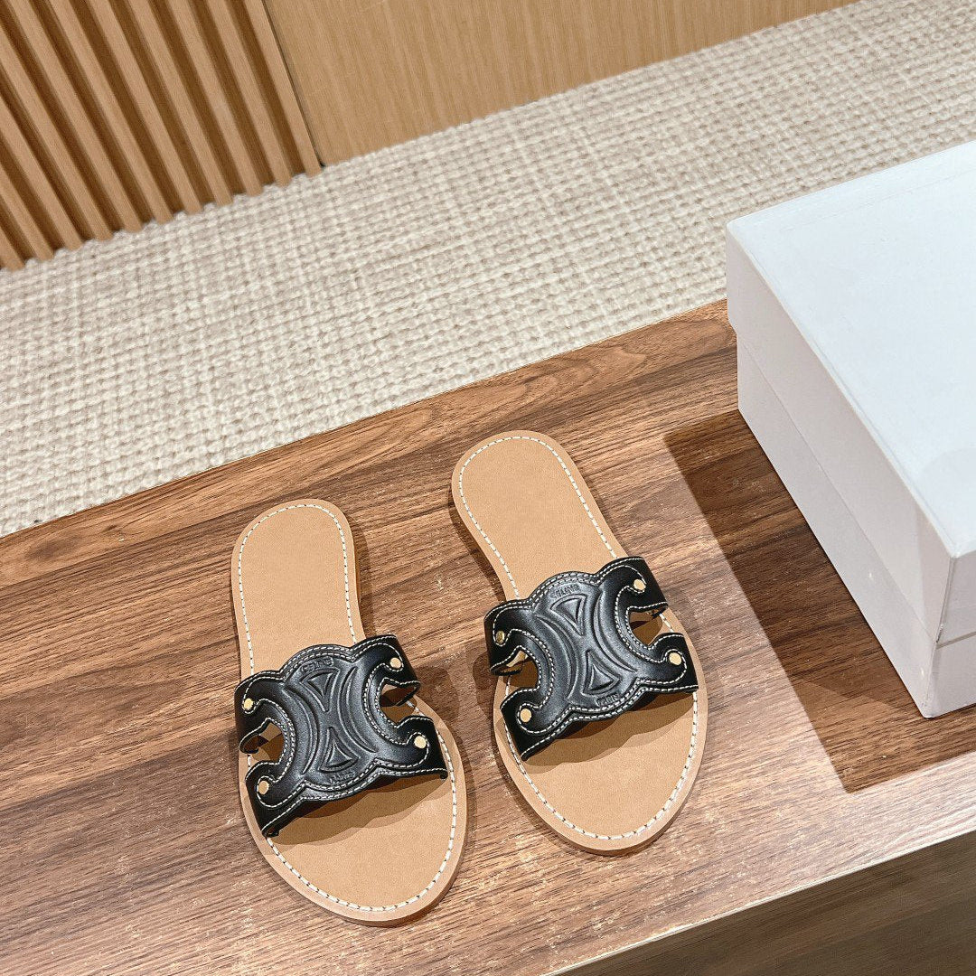 TRIOMPHE SLIDE IN BRONZE BROWN CALFSKIN