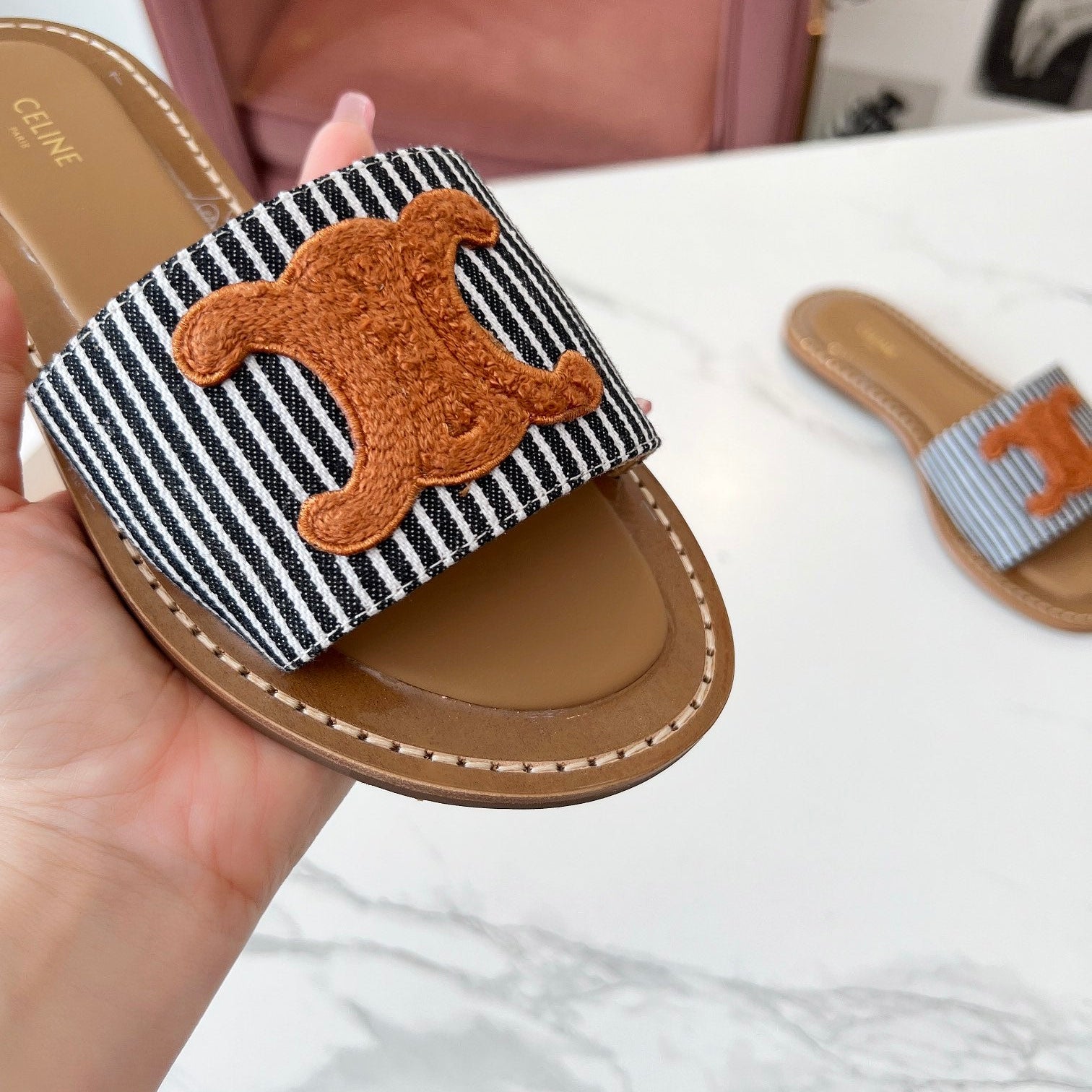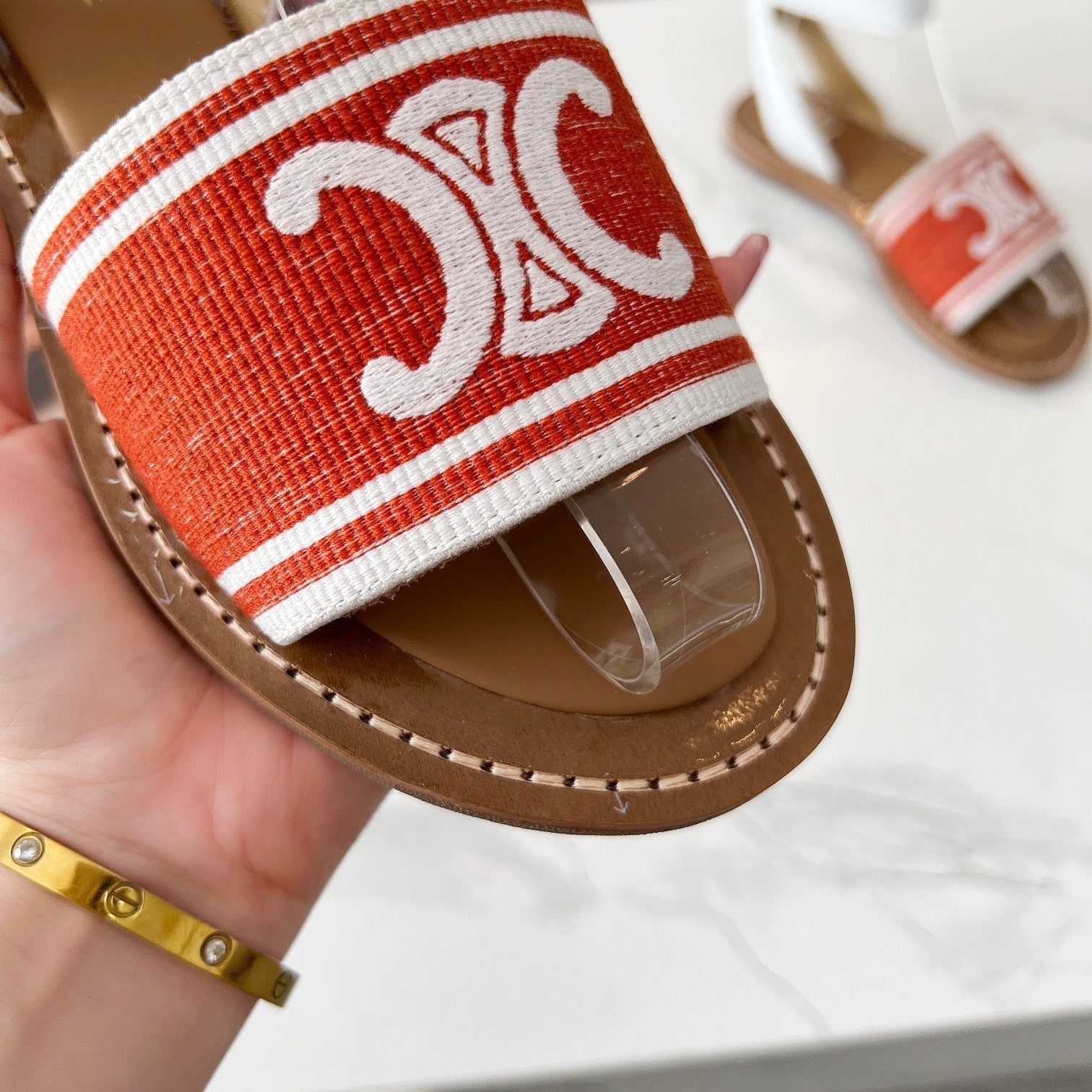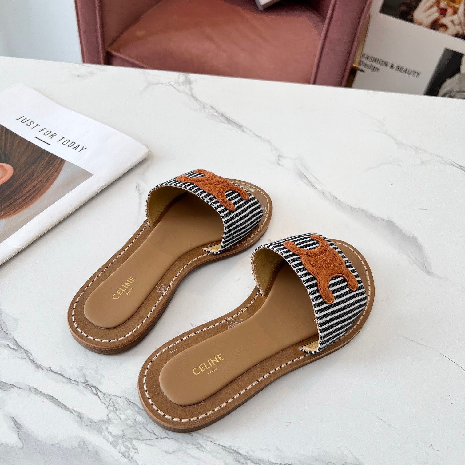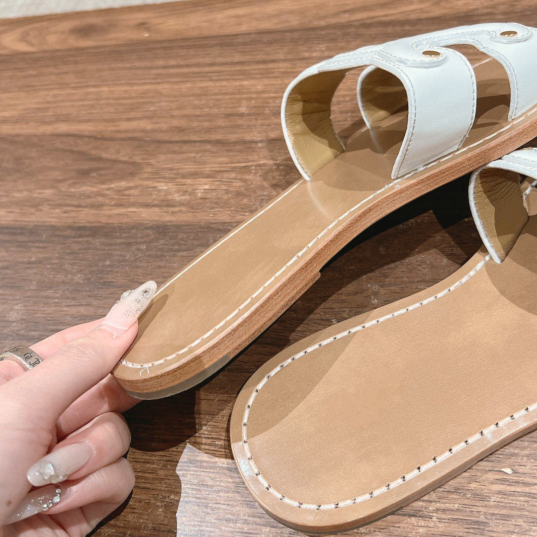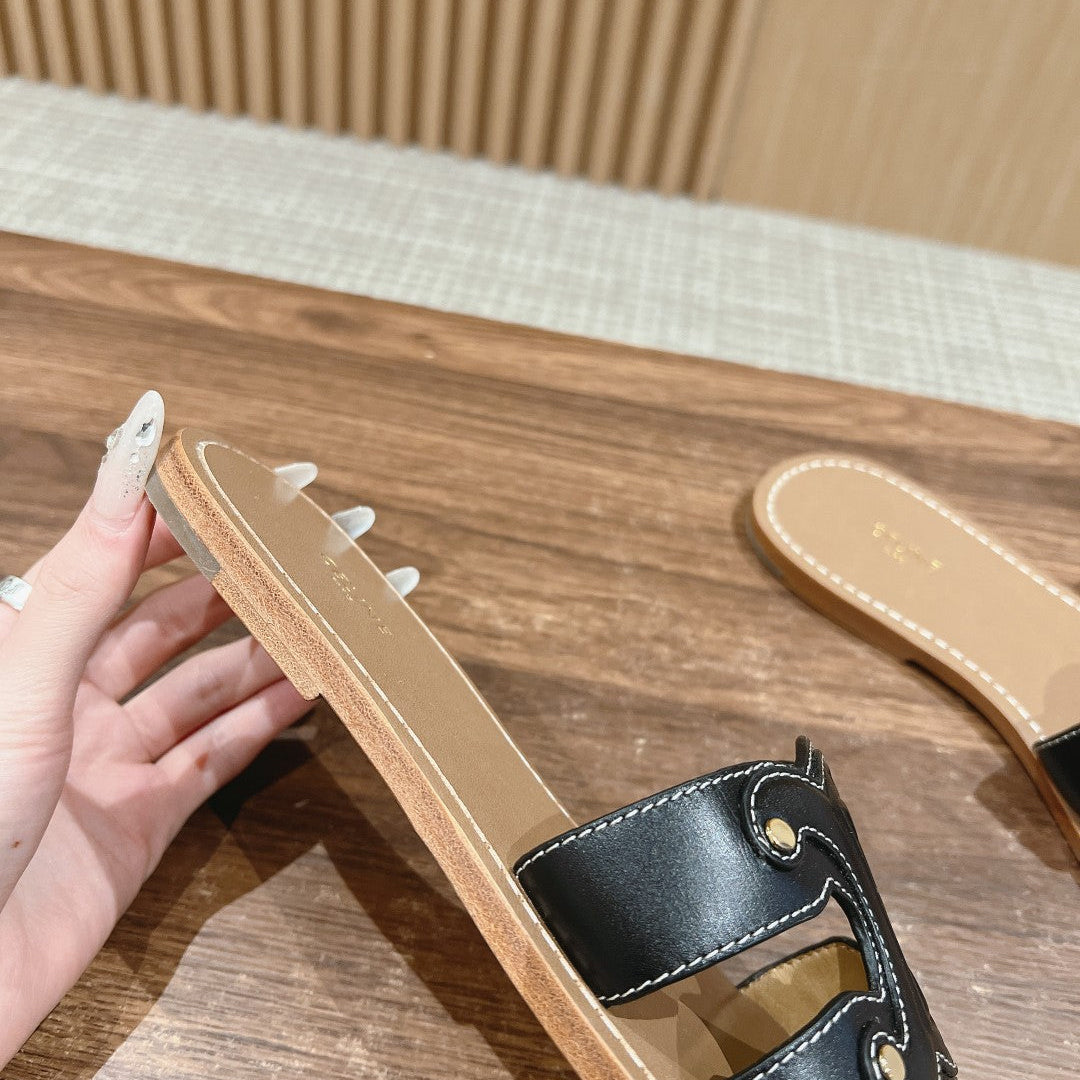 TRIOMPHE SLIDE IN BRONZE BROWN CALFSKIN