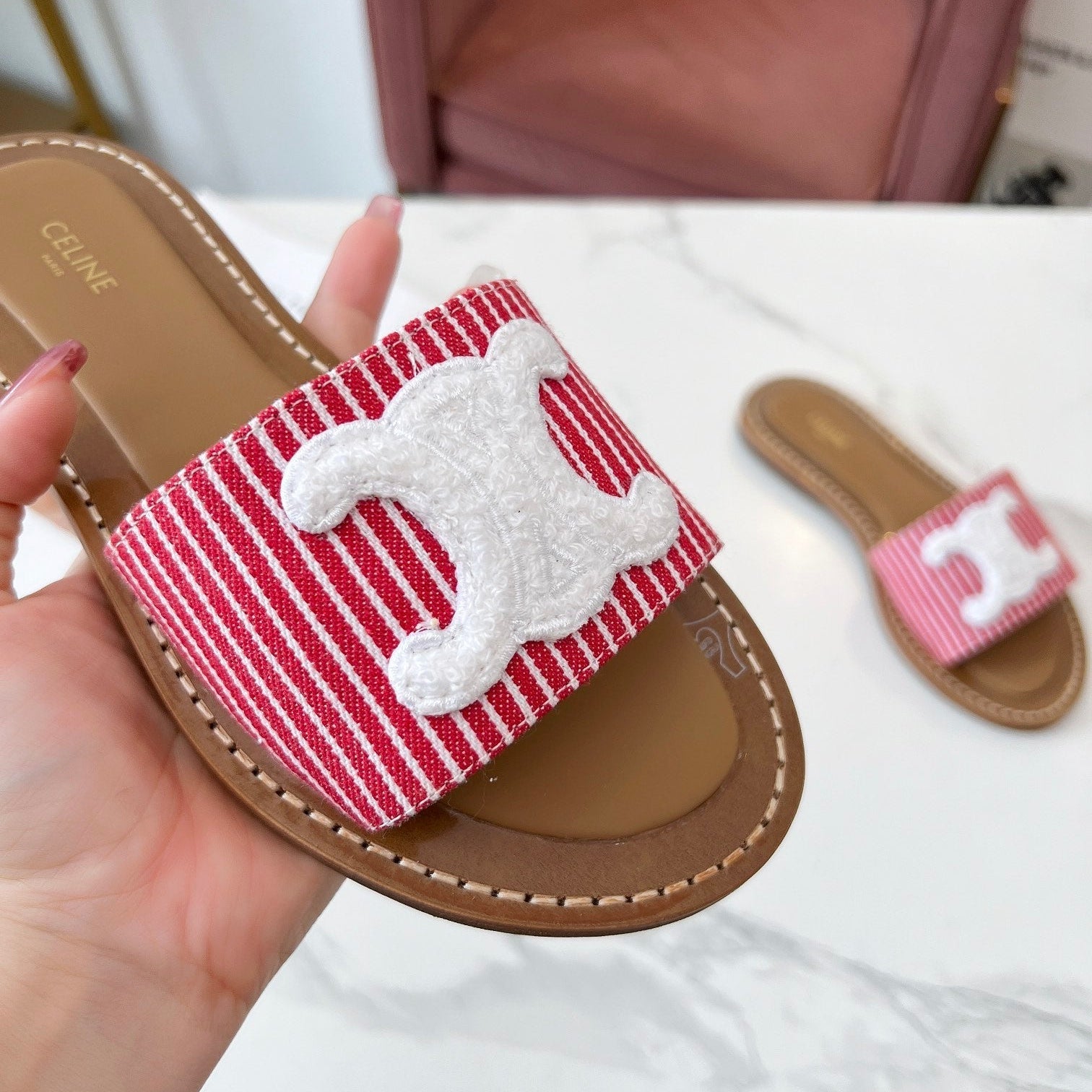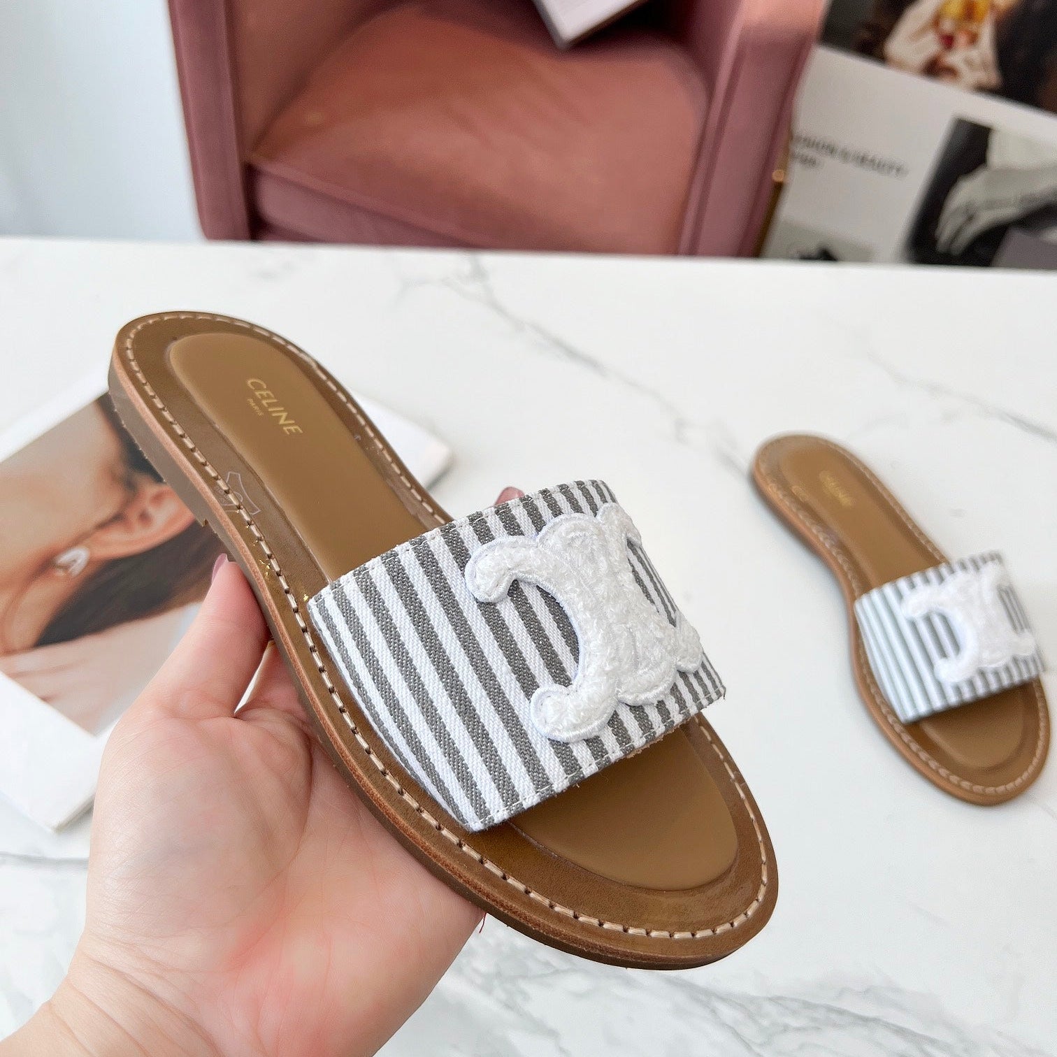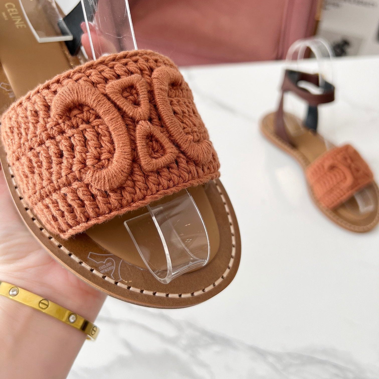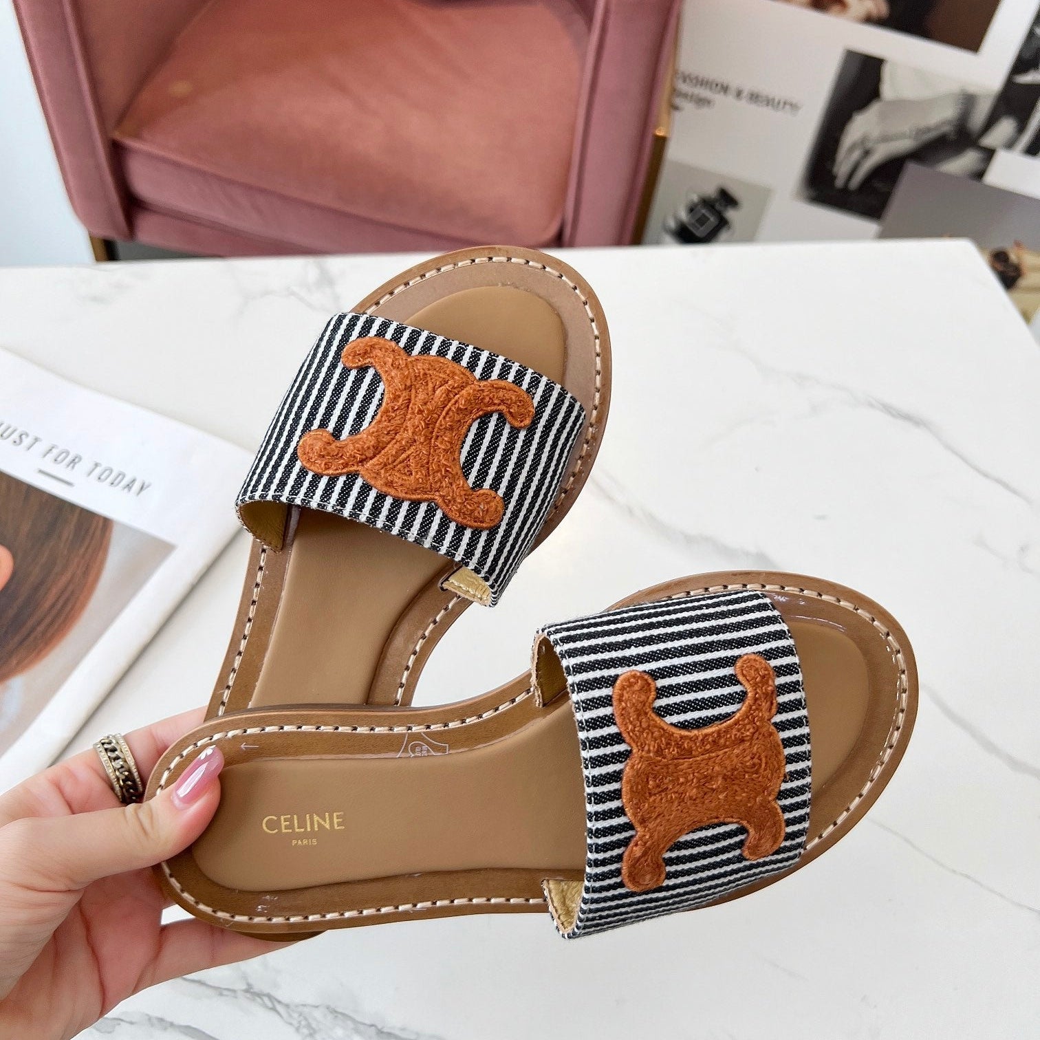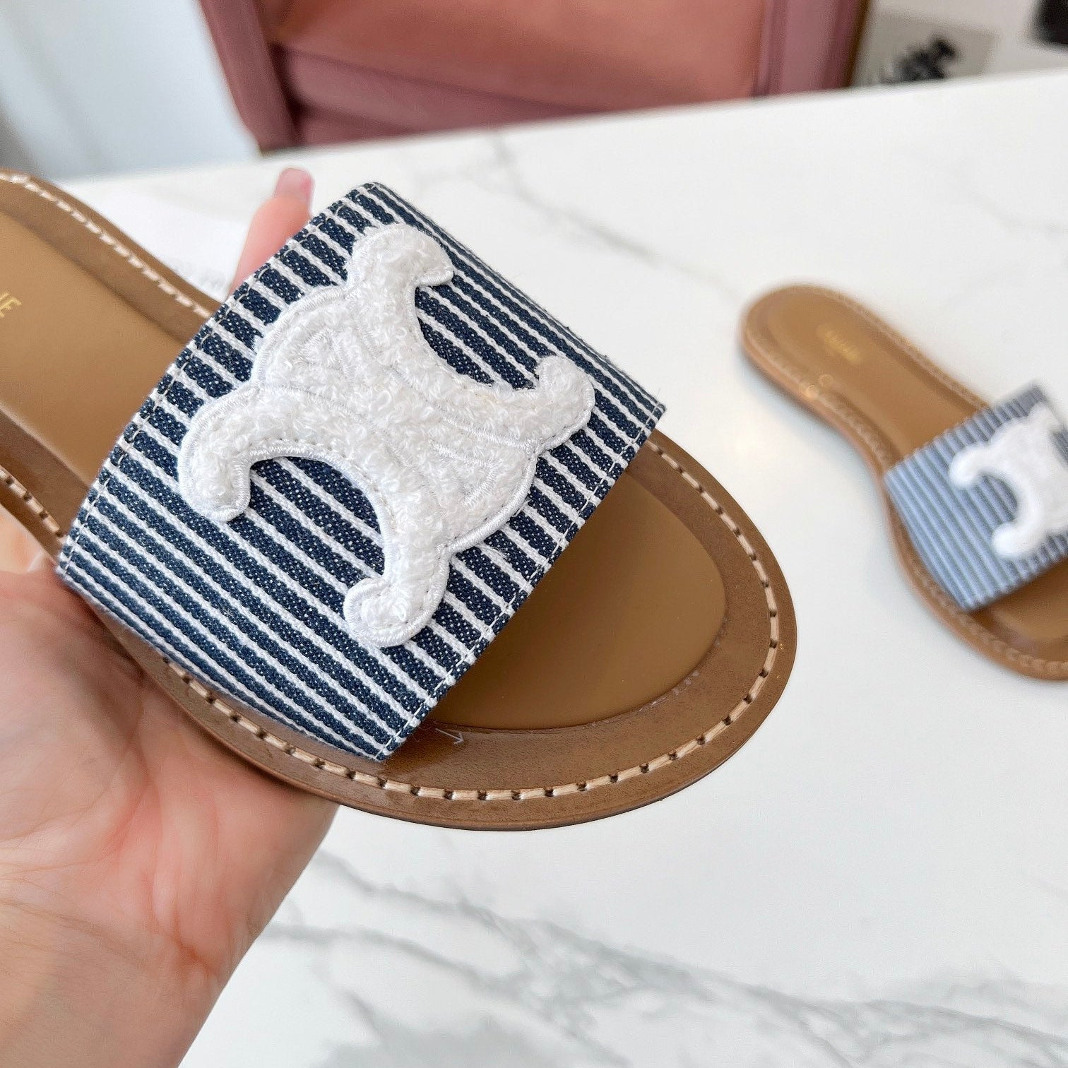 TRIOMPHE SLIDE IN BRONZE BROWN CALFSKIN