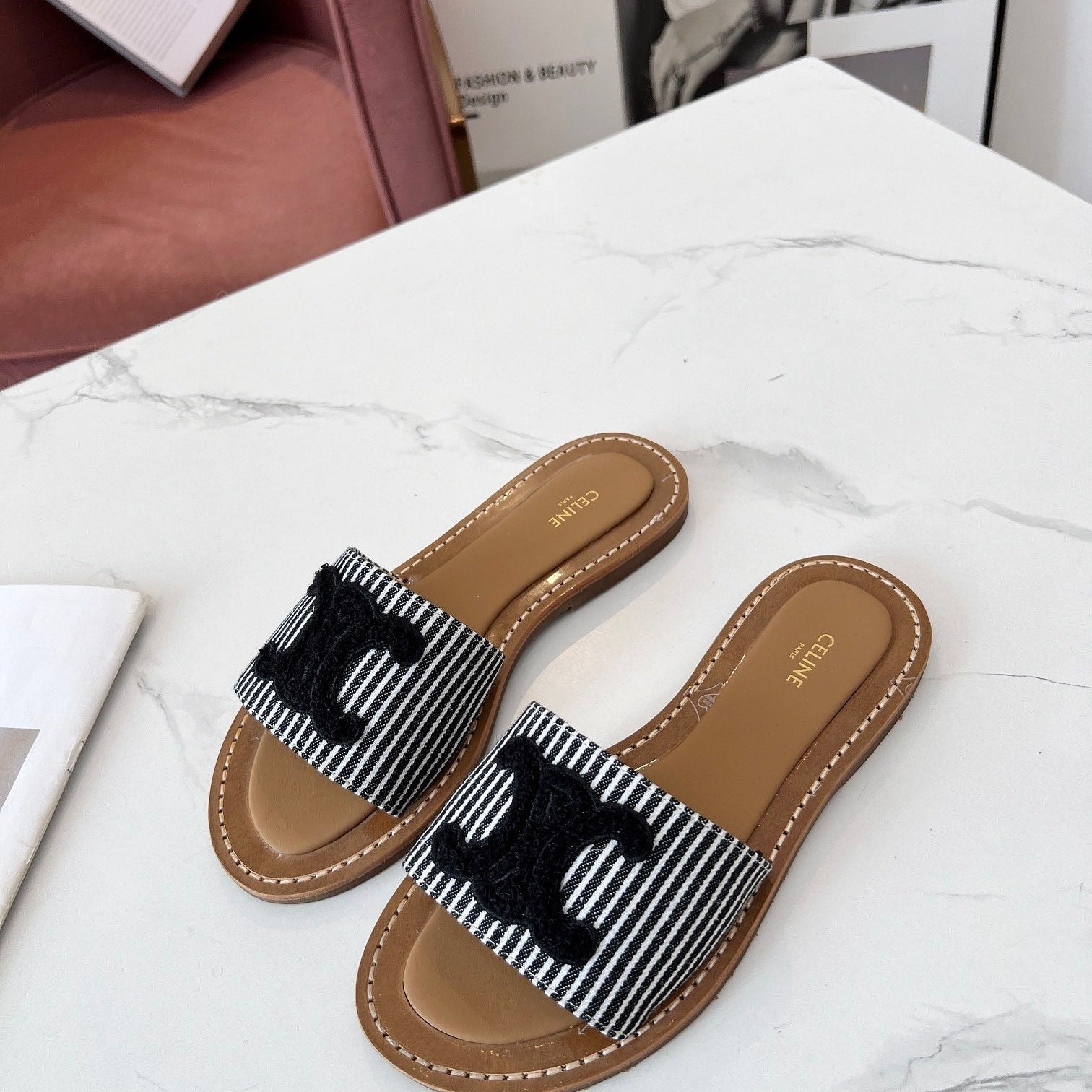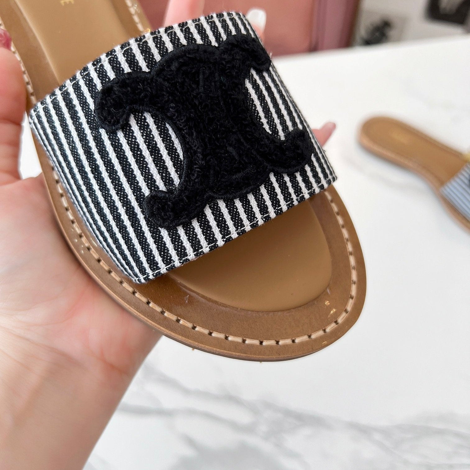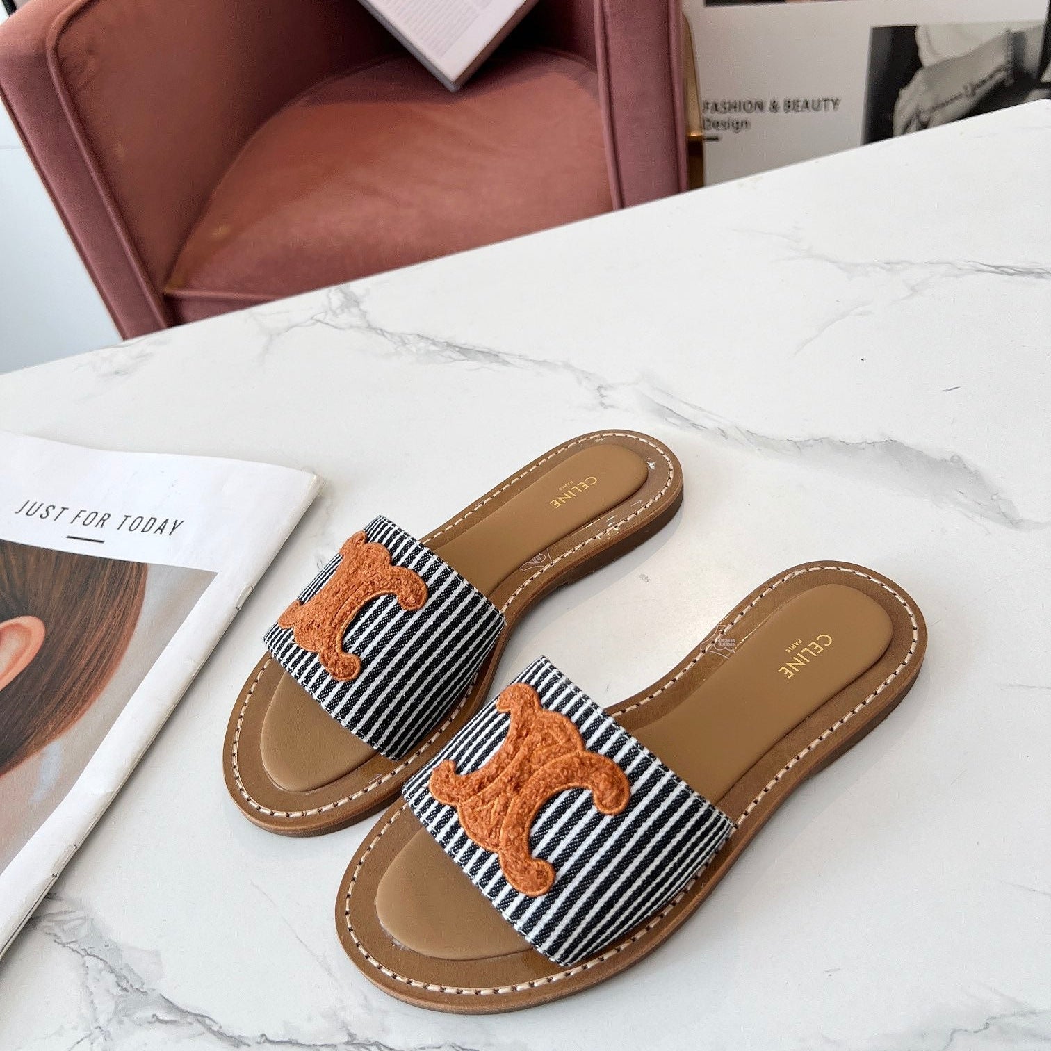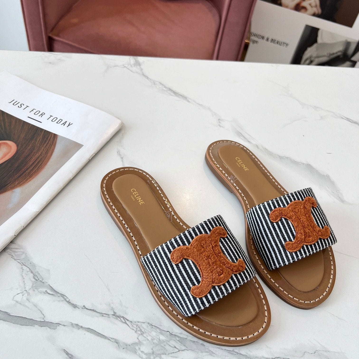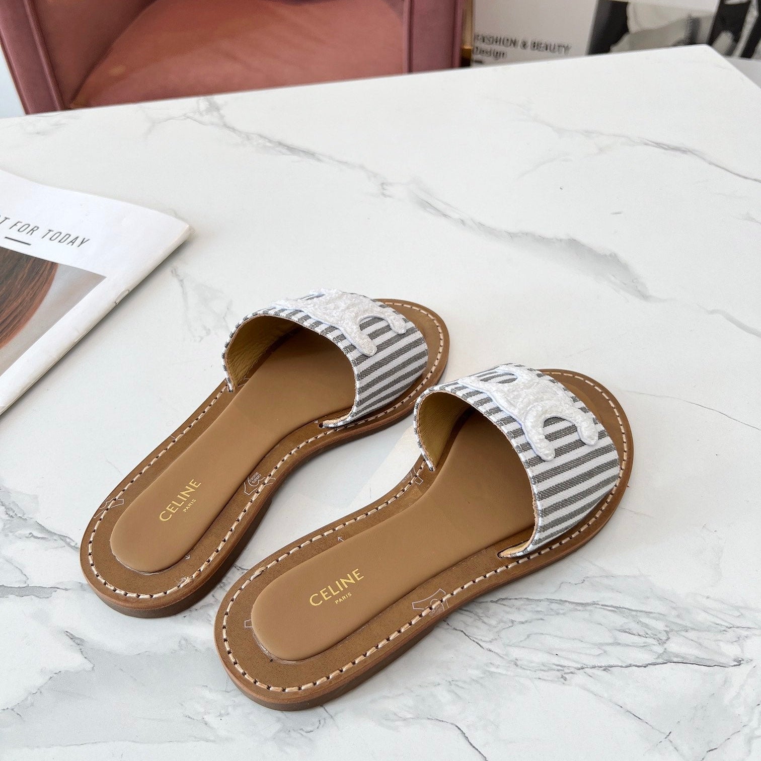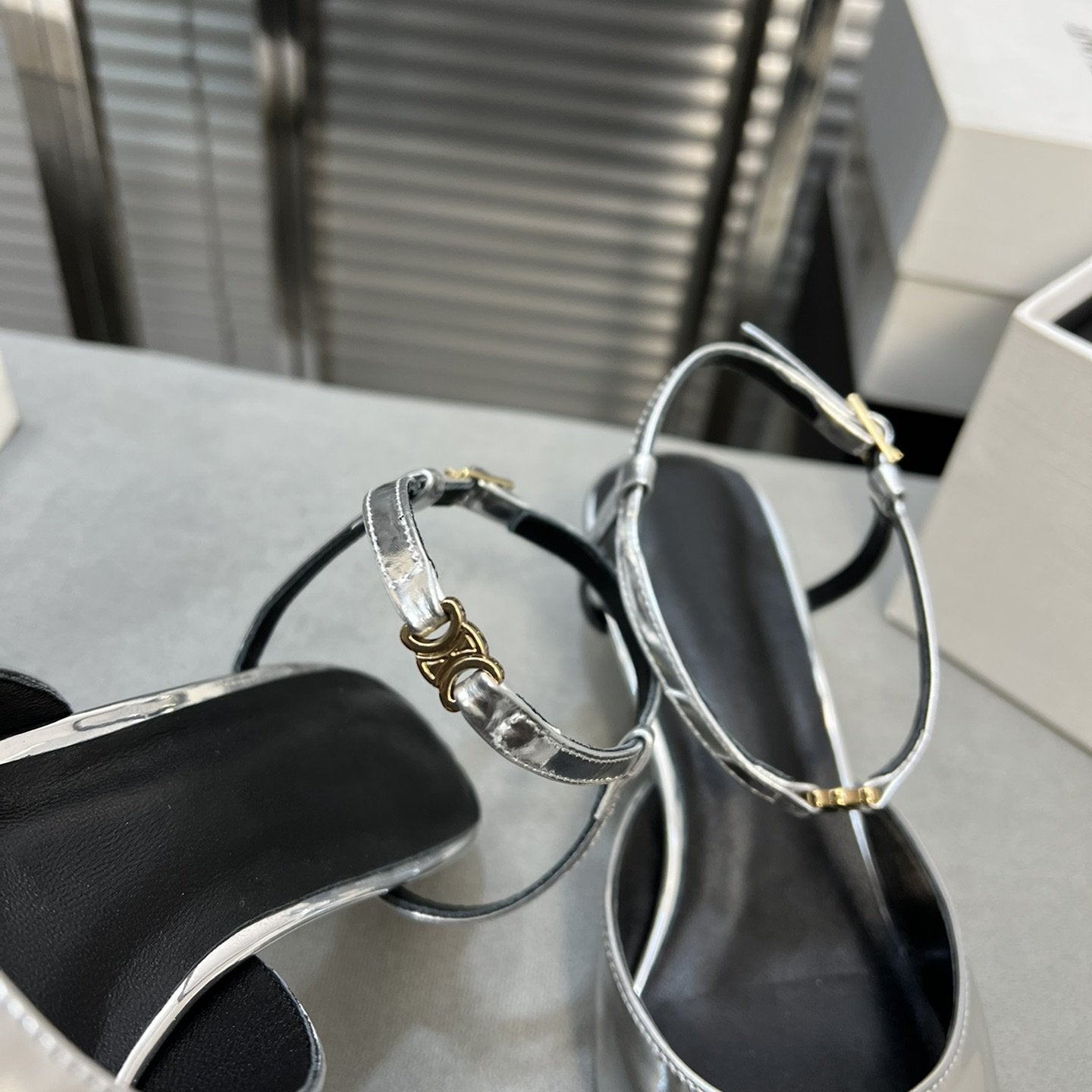 TRIOMPHE SLIDE IN BRONZE BROWN CALFSKIN