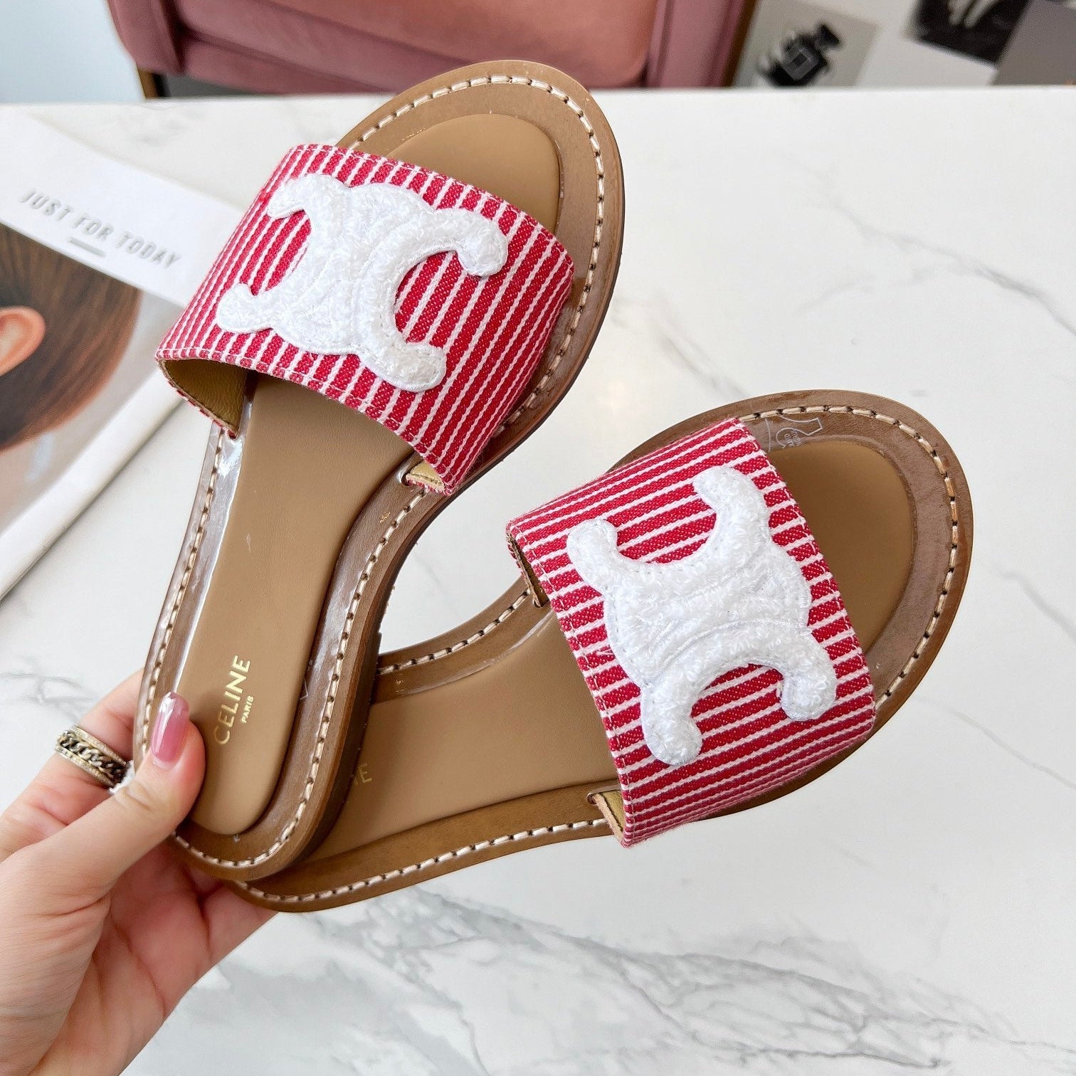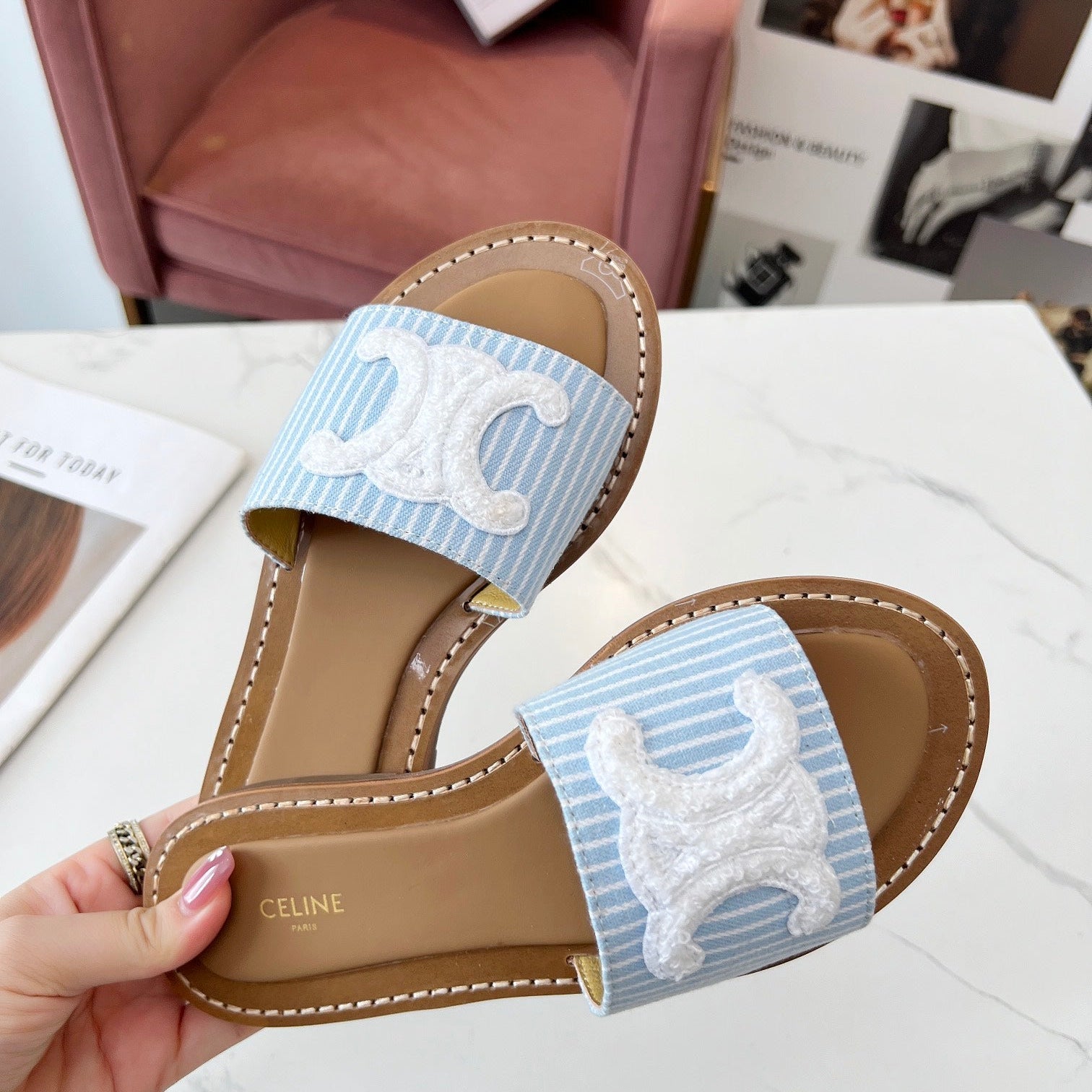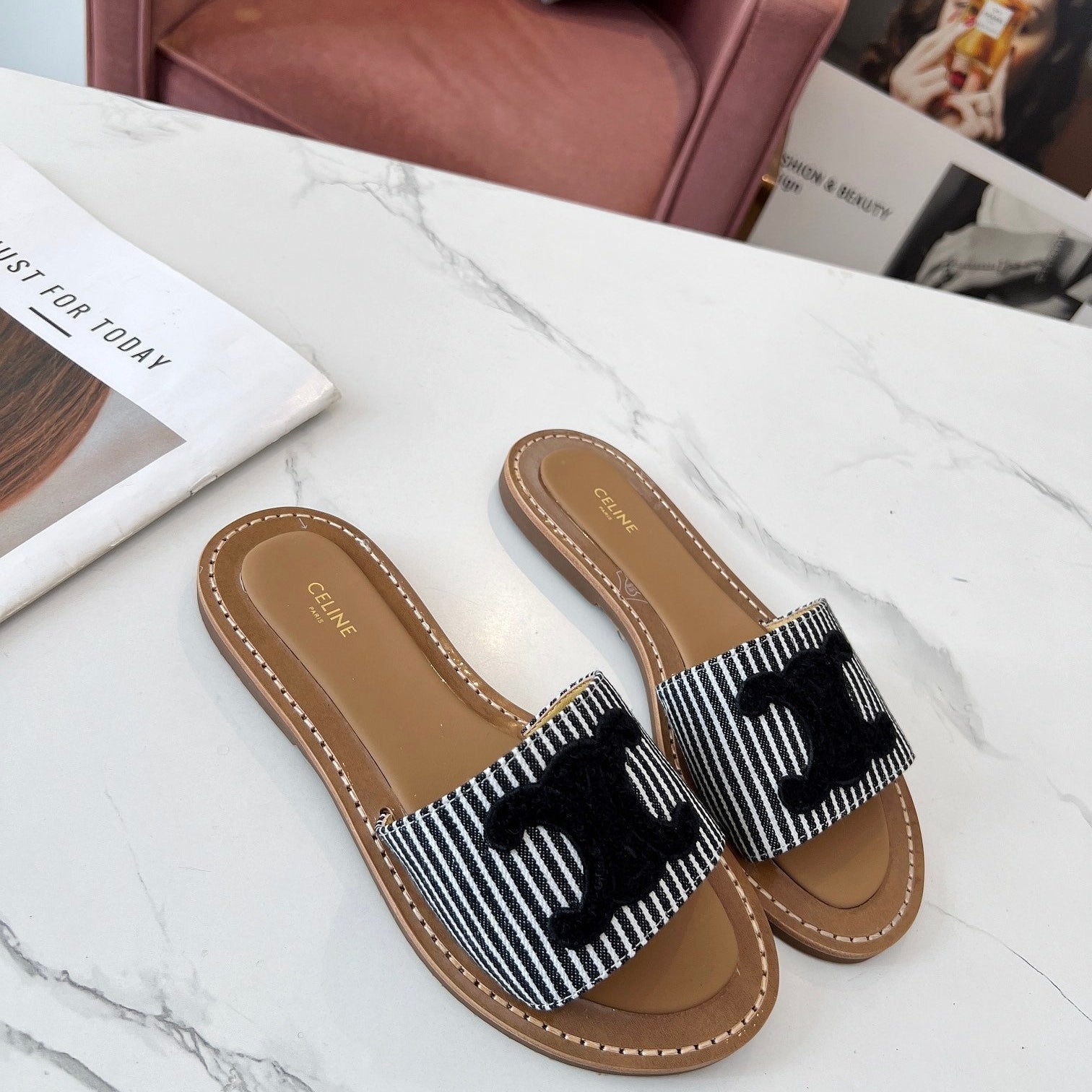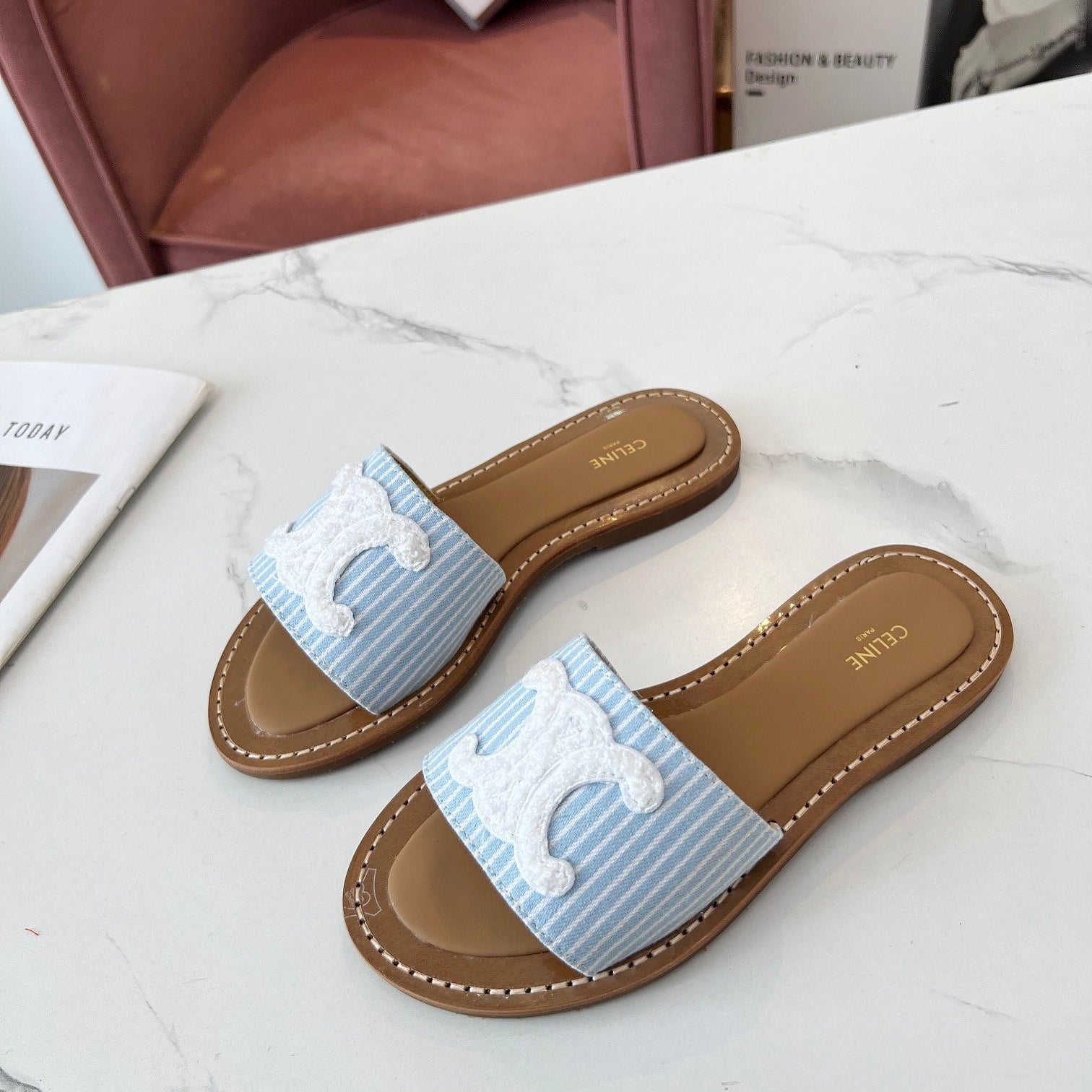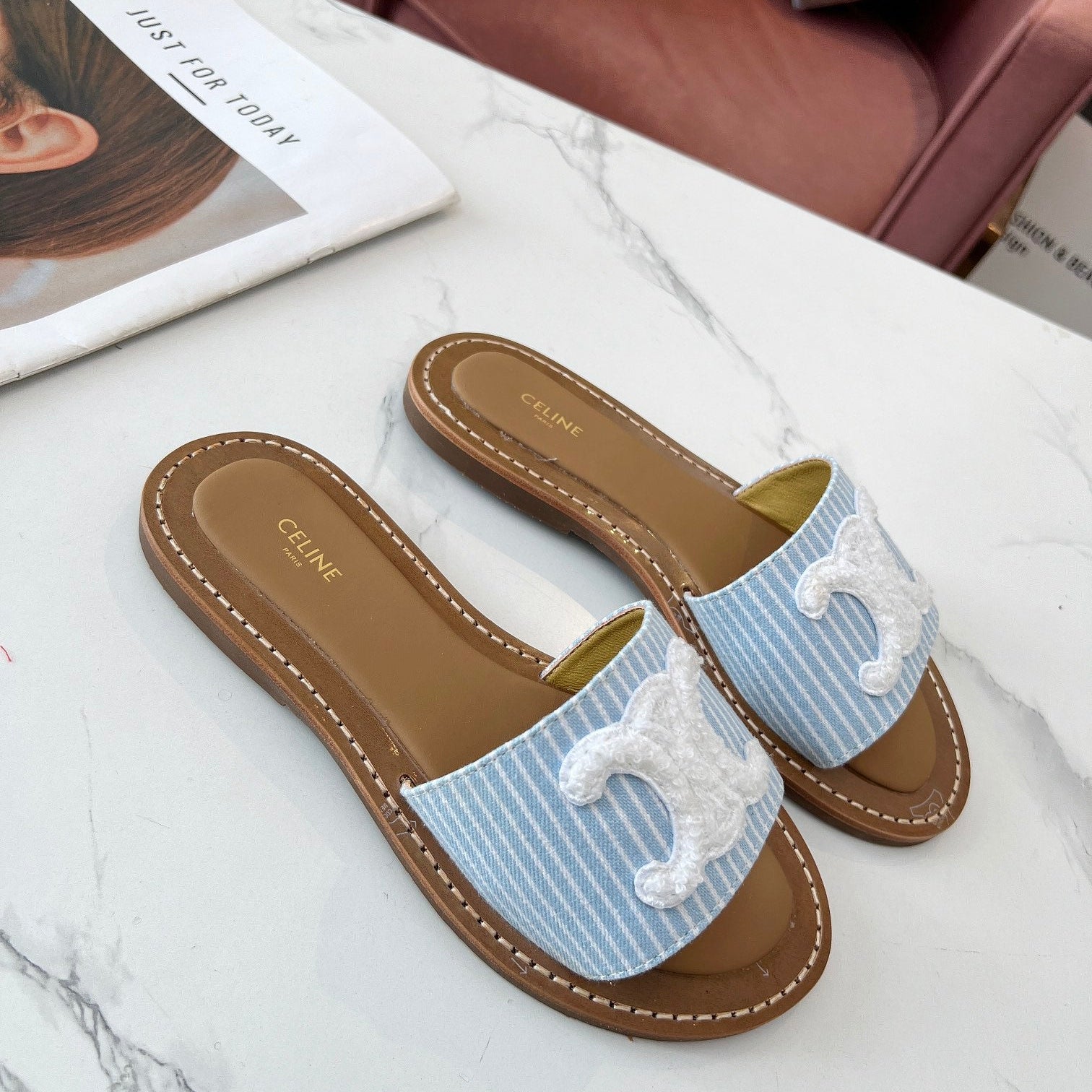 TRIOMPHE SLIDE IN BRONZE BROWN CALFSKIN