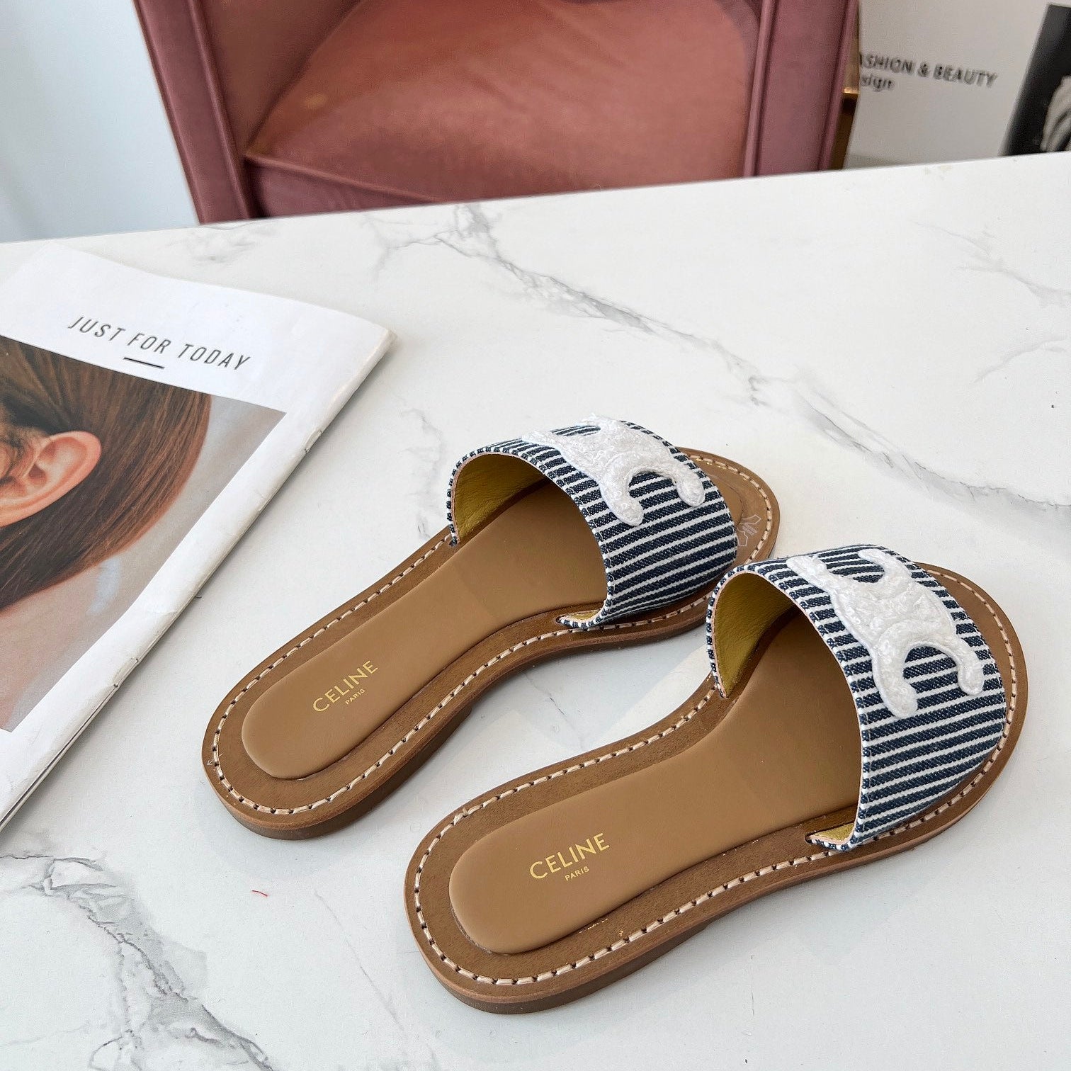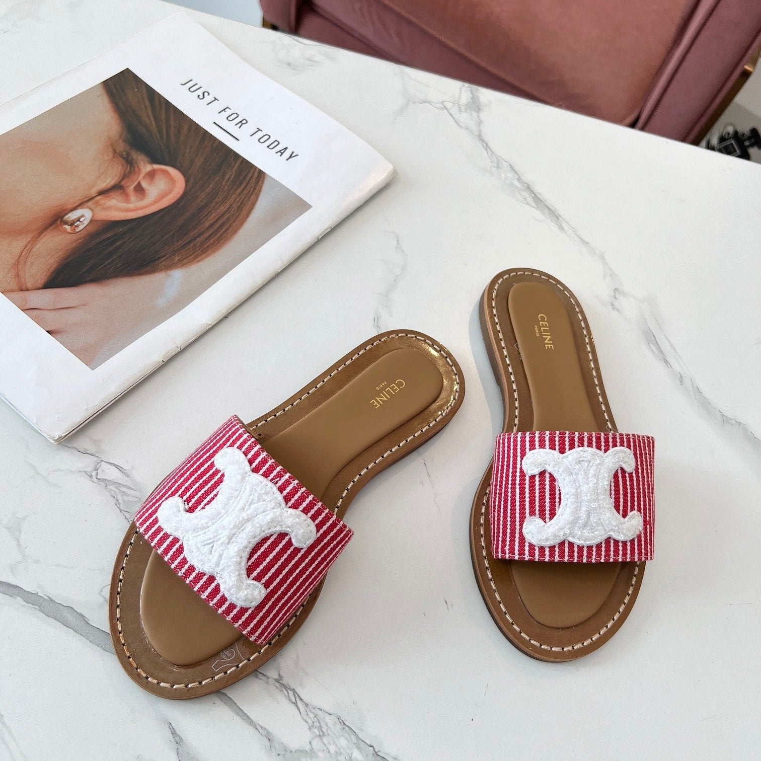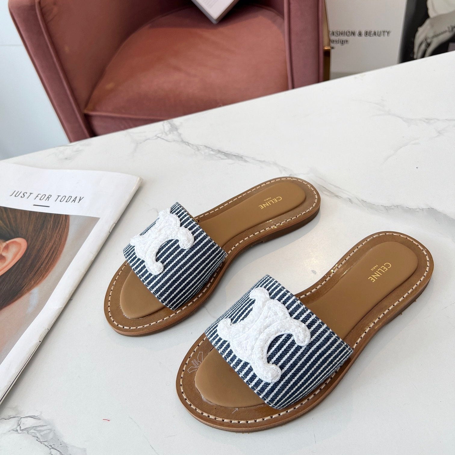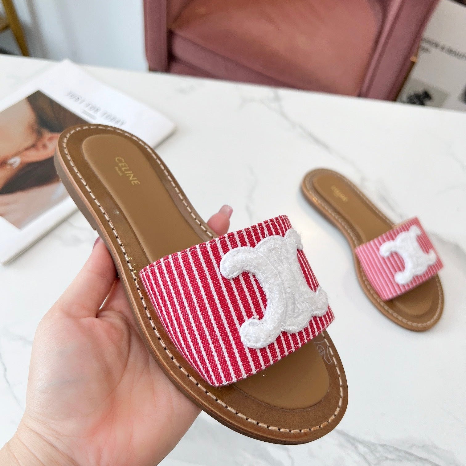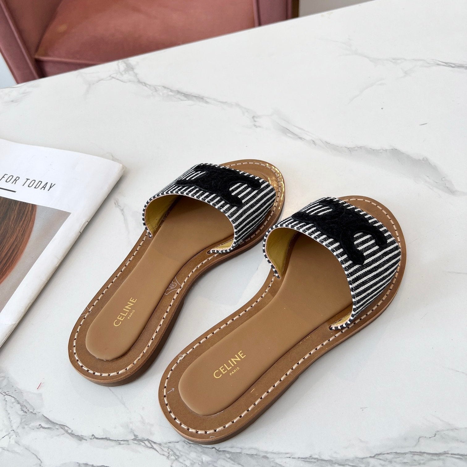 TRIOMPHE SLIDE IN BRONZE BROWN CALFSKIN
