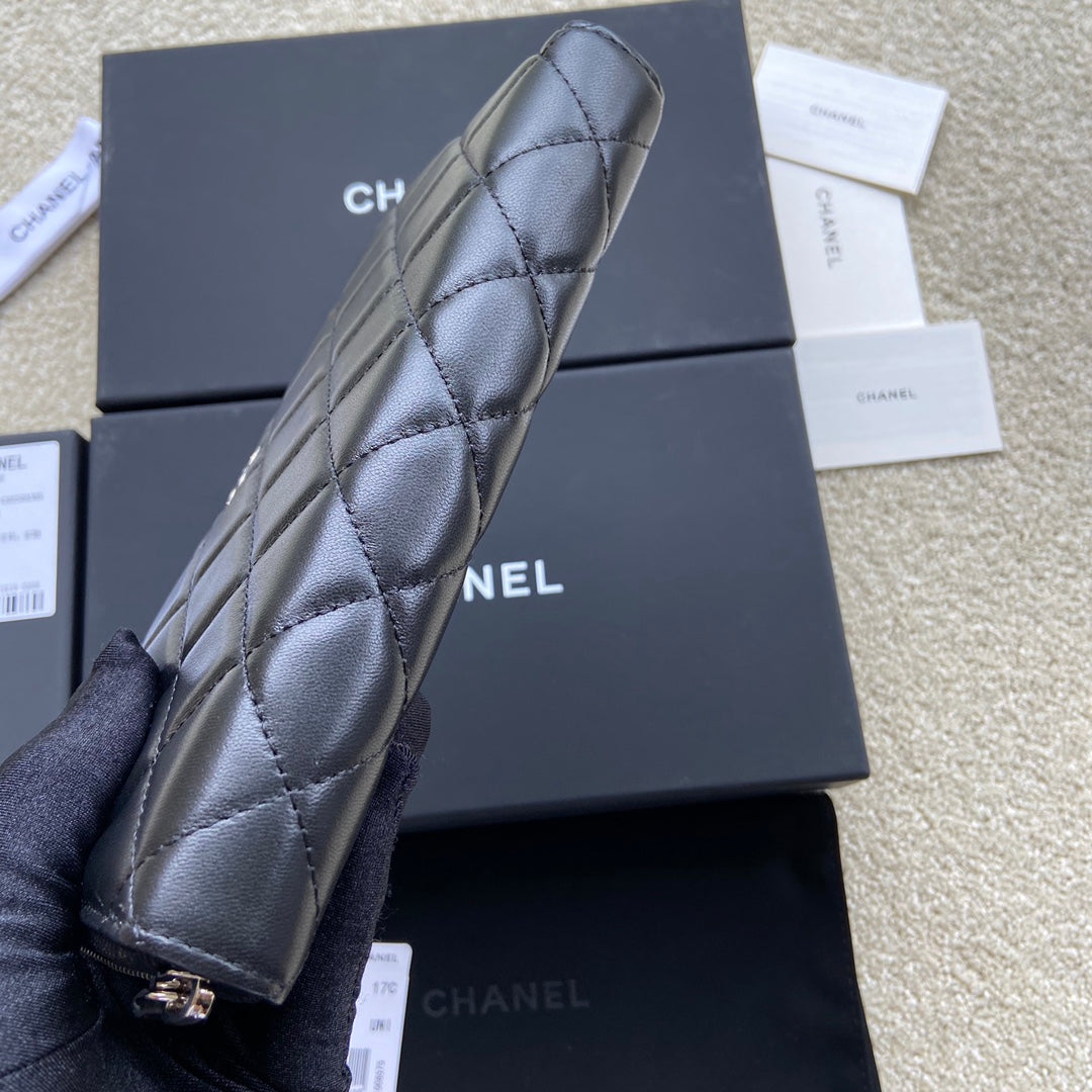 CC A50097 Classic Zipper Wallet Black Caviar Sliver Steel 229658