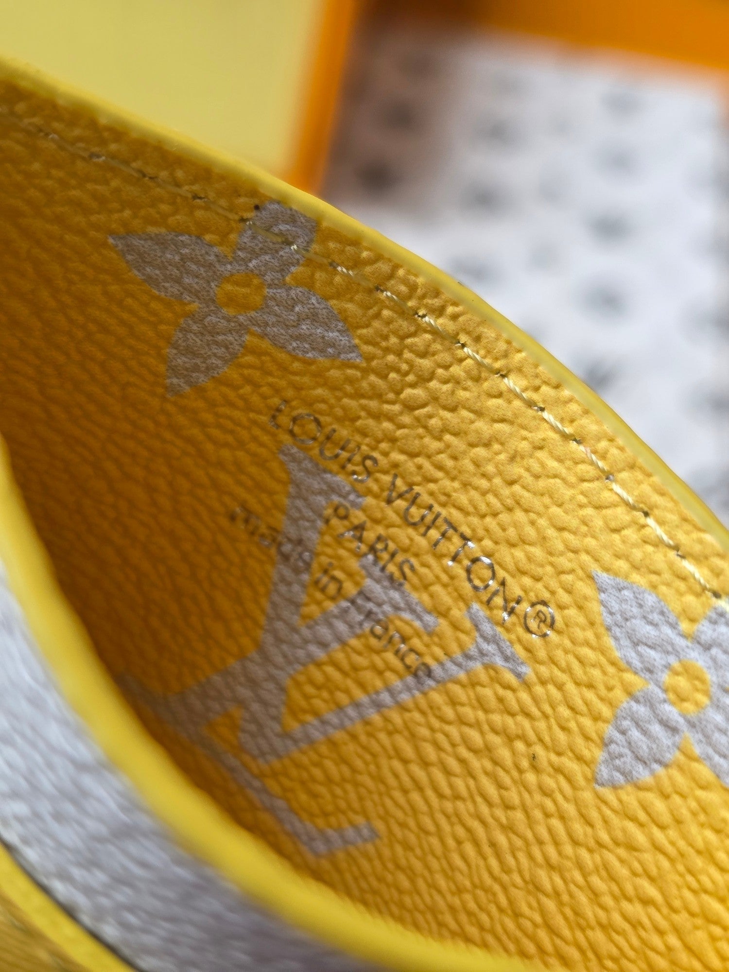 LV M14771 Double Card Holder Gray Yellow Monogram Glow Canvas & Cowhide