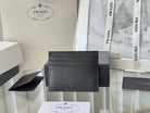 Pra Metal Logo-Plaque Card Holder Black Saffiano Leather