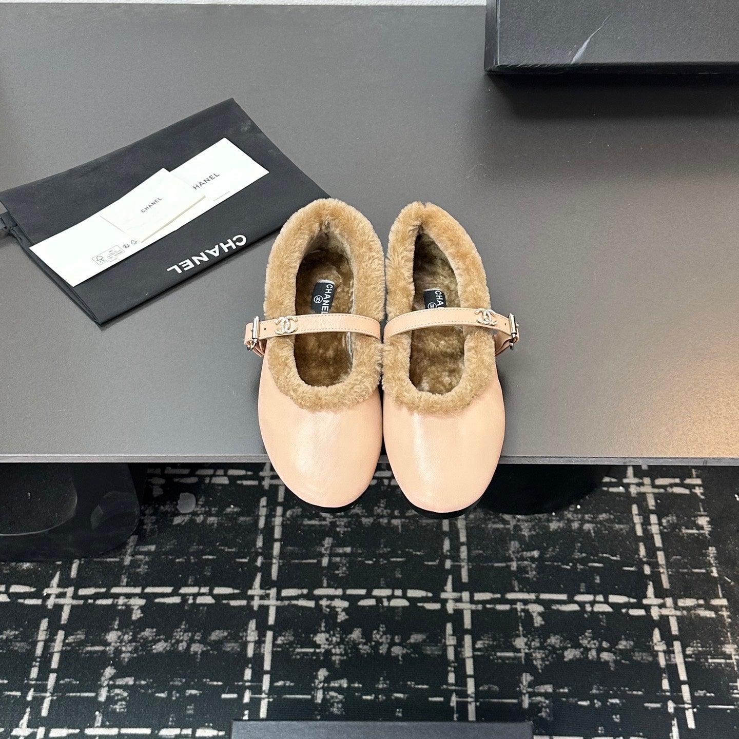 CC 2025 Puffer Ballet Flat With Strap Beige Sheepskin Fur 529344