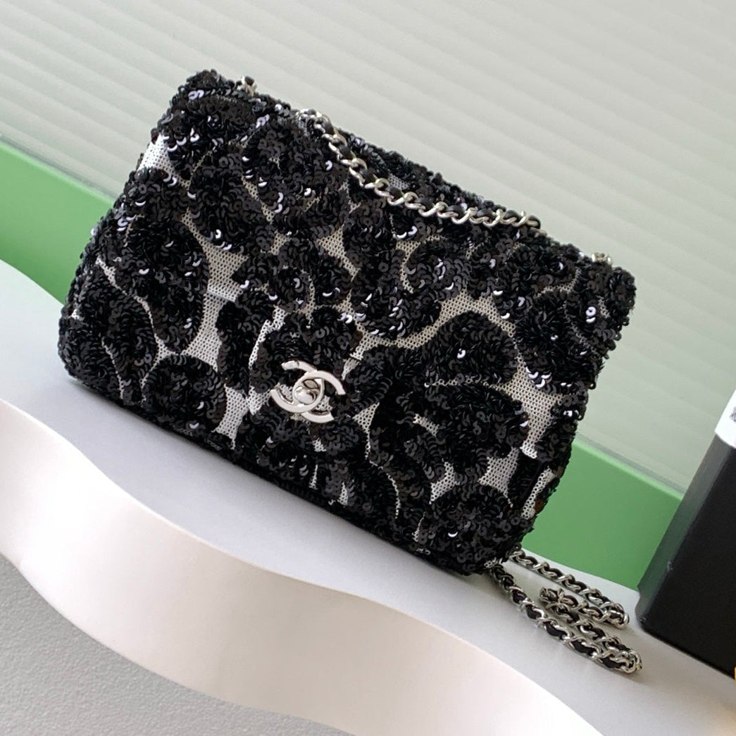 CC 2025 Flap Bag Black Silver Sequin 298201