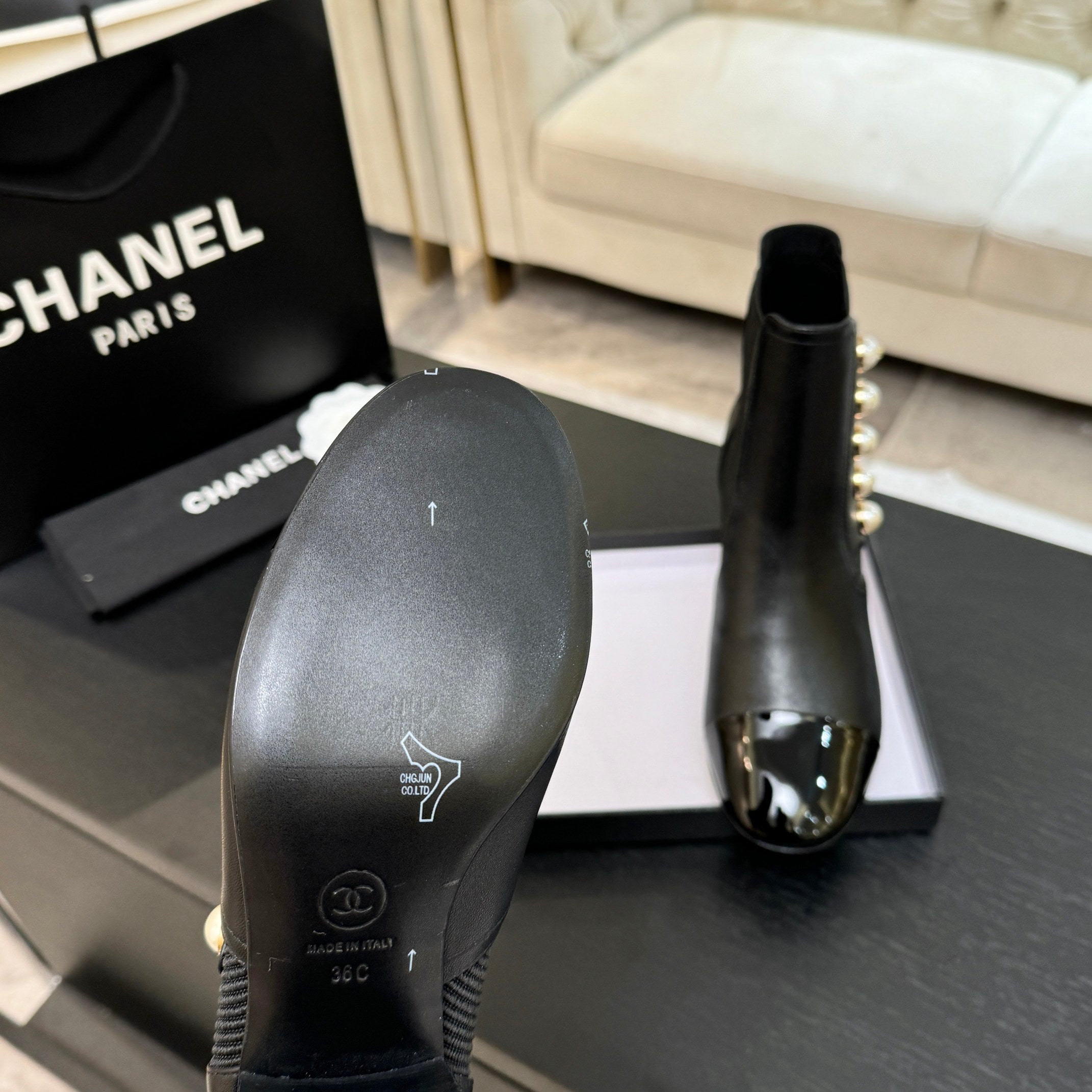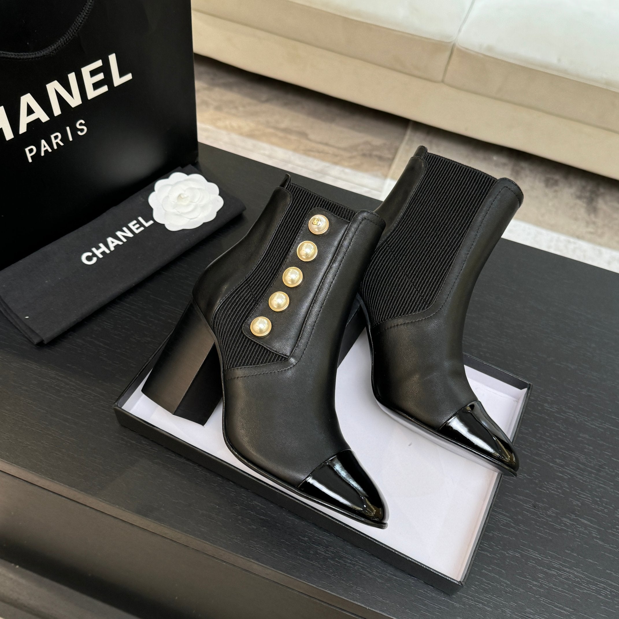CC 25K FW Ankle Boots With Pearl 60mm Black Sheepskin 528388