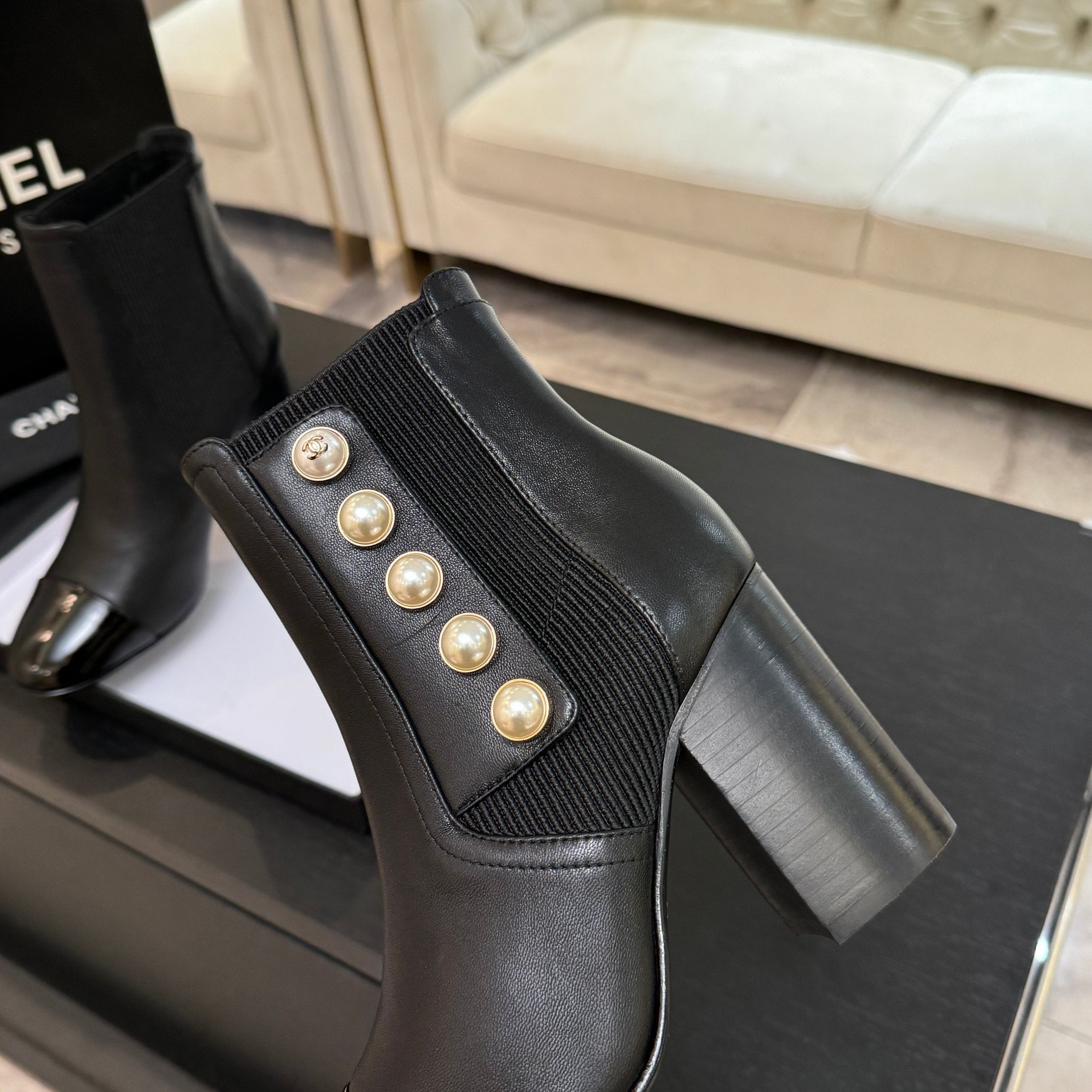 CC 25K FW Ankle Boots With Pearl 90mm Black Sheepskin 528384