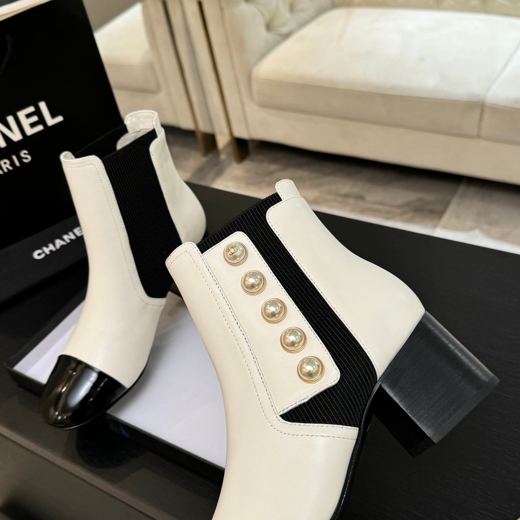 CC 25K FW Ankle Boots With Pearl 90mm White Sheepskin 528383
