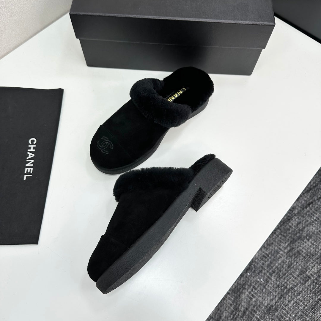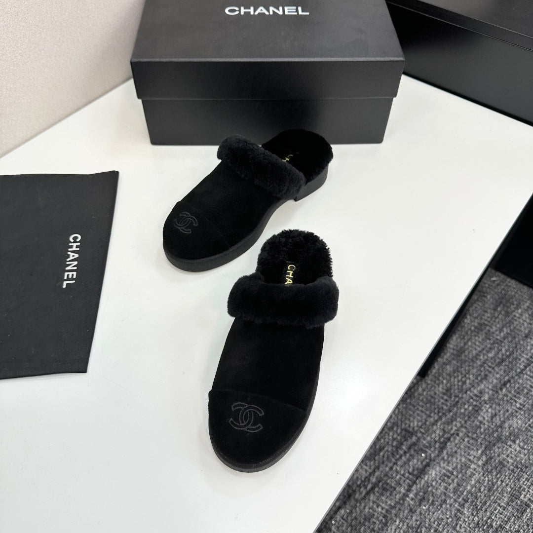CC Floral Slide Flat Black Suede Cowhide 454282